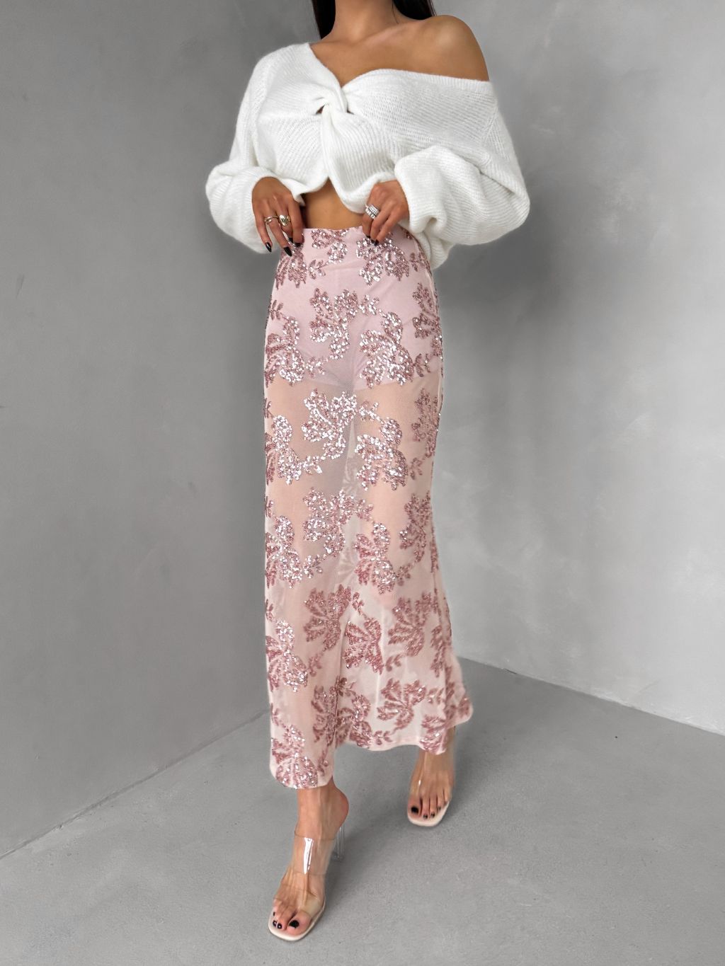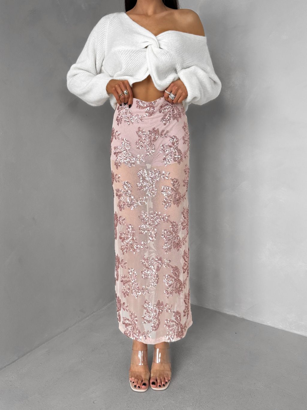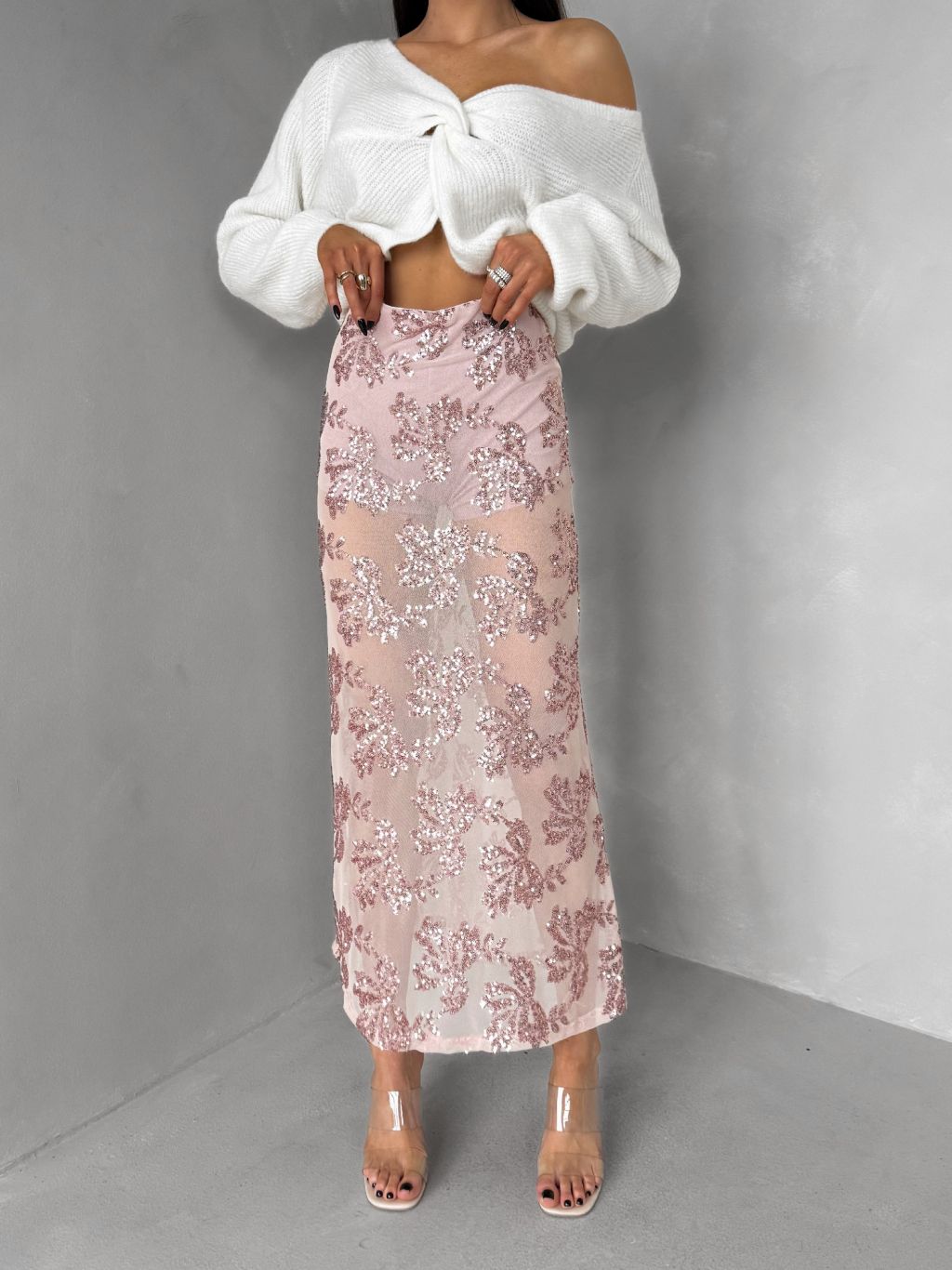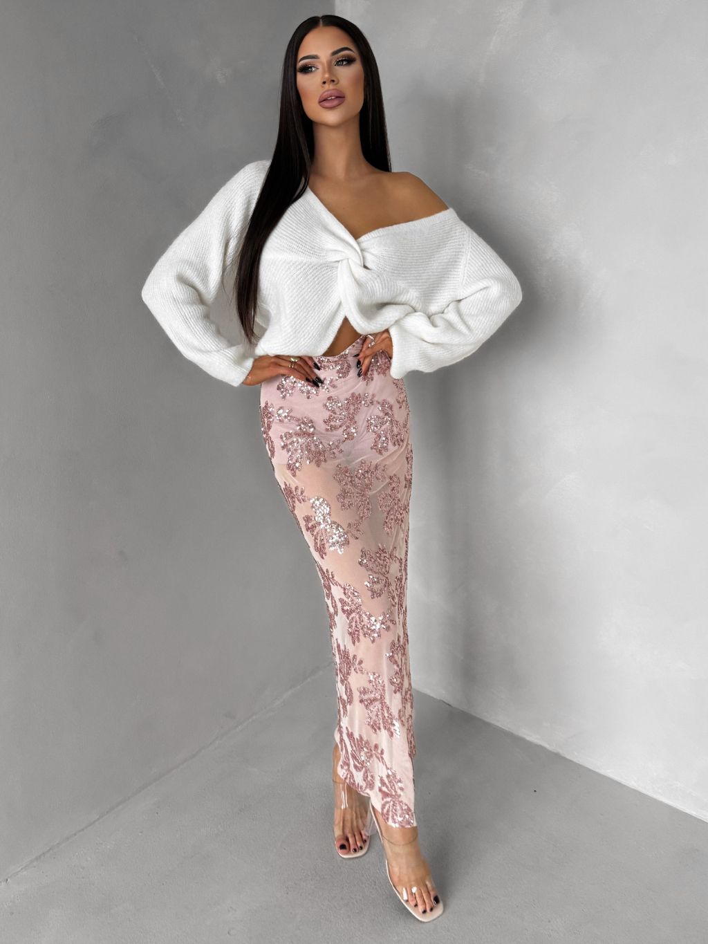 Ružová elegantná midi sukňa FASKORO