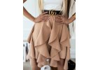 Béžová elegantná saténová midi sukňa SKAYA