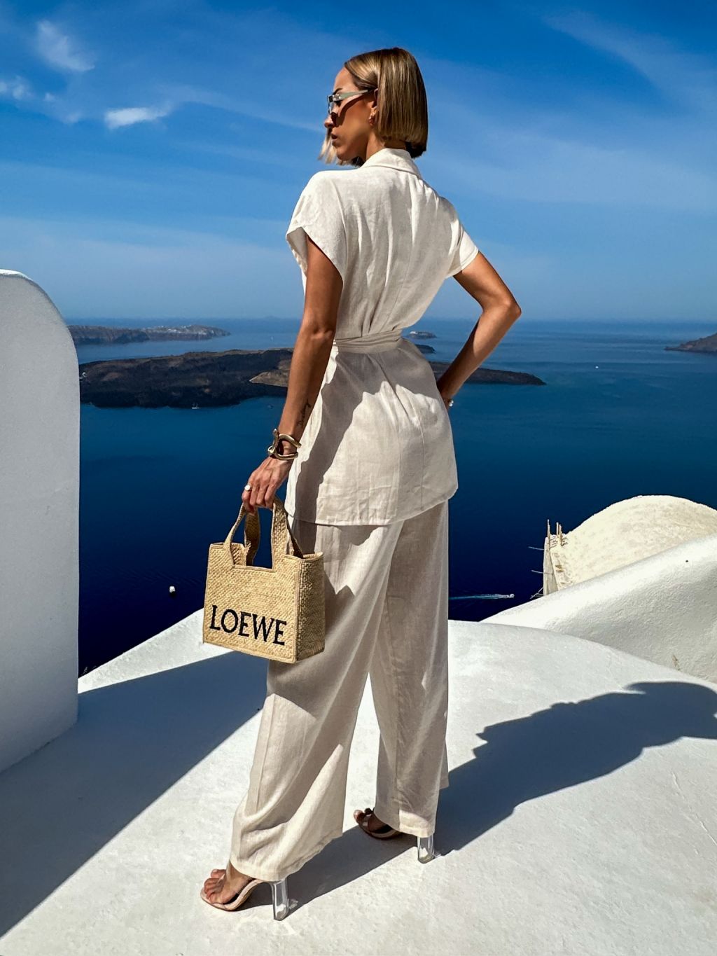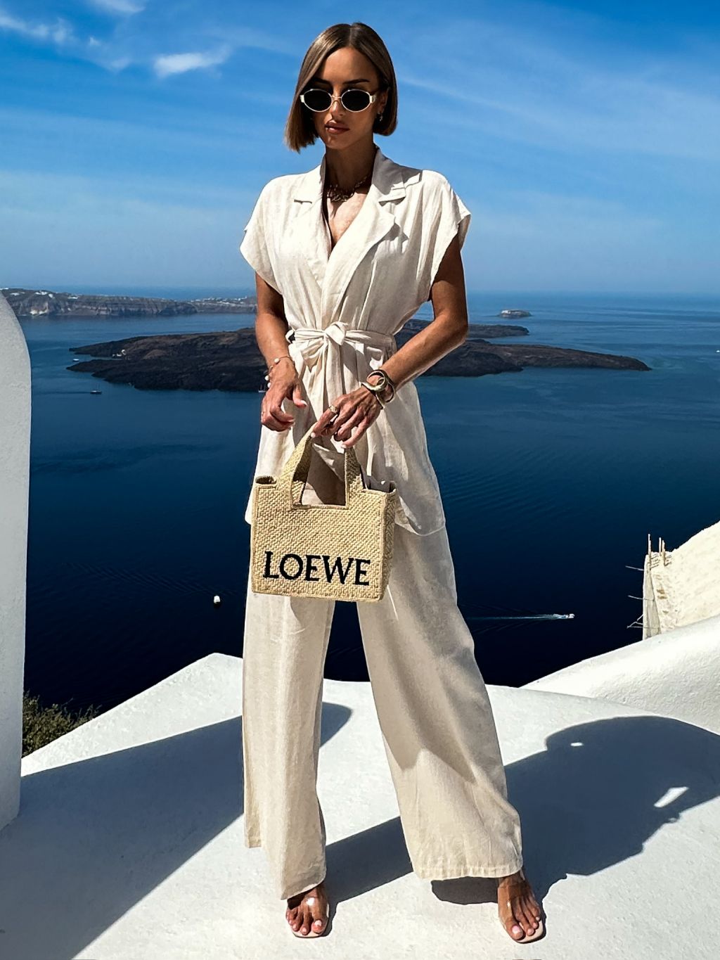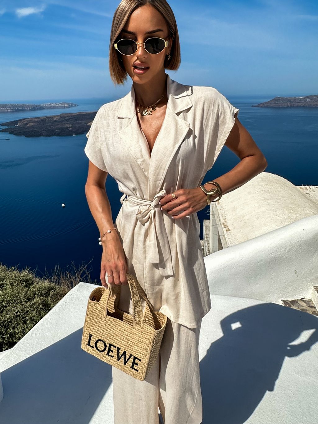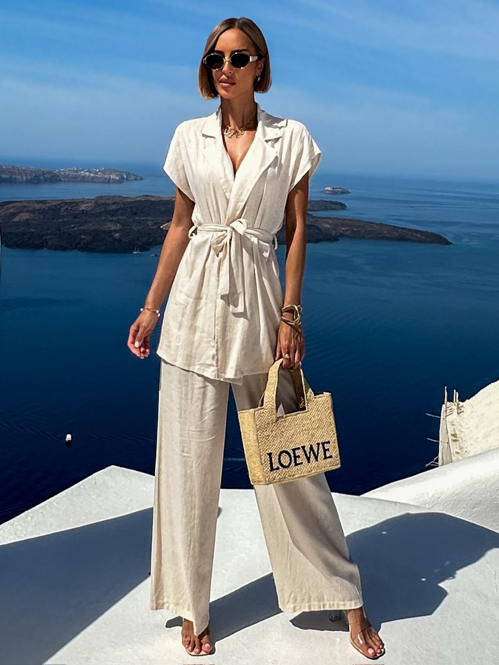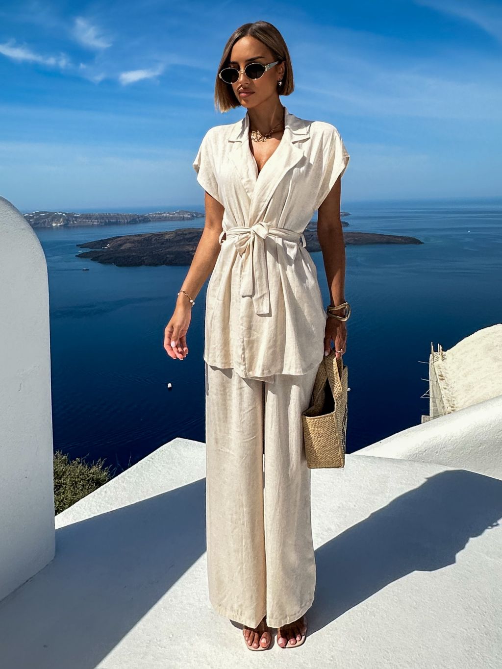 Krémový ľanový nohavicový kostým komplet ITGELIN