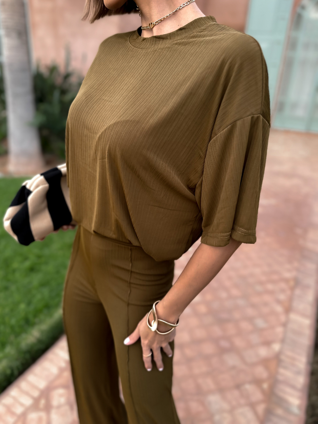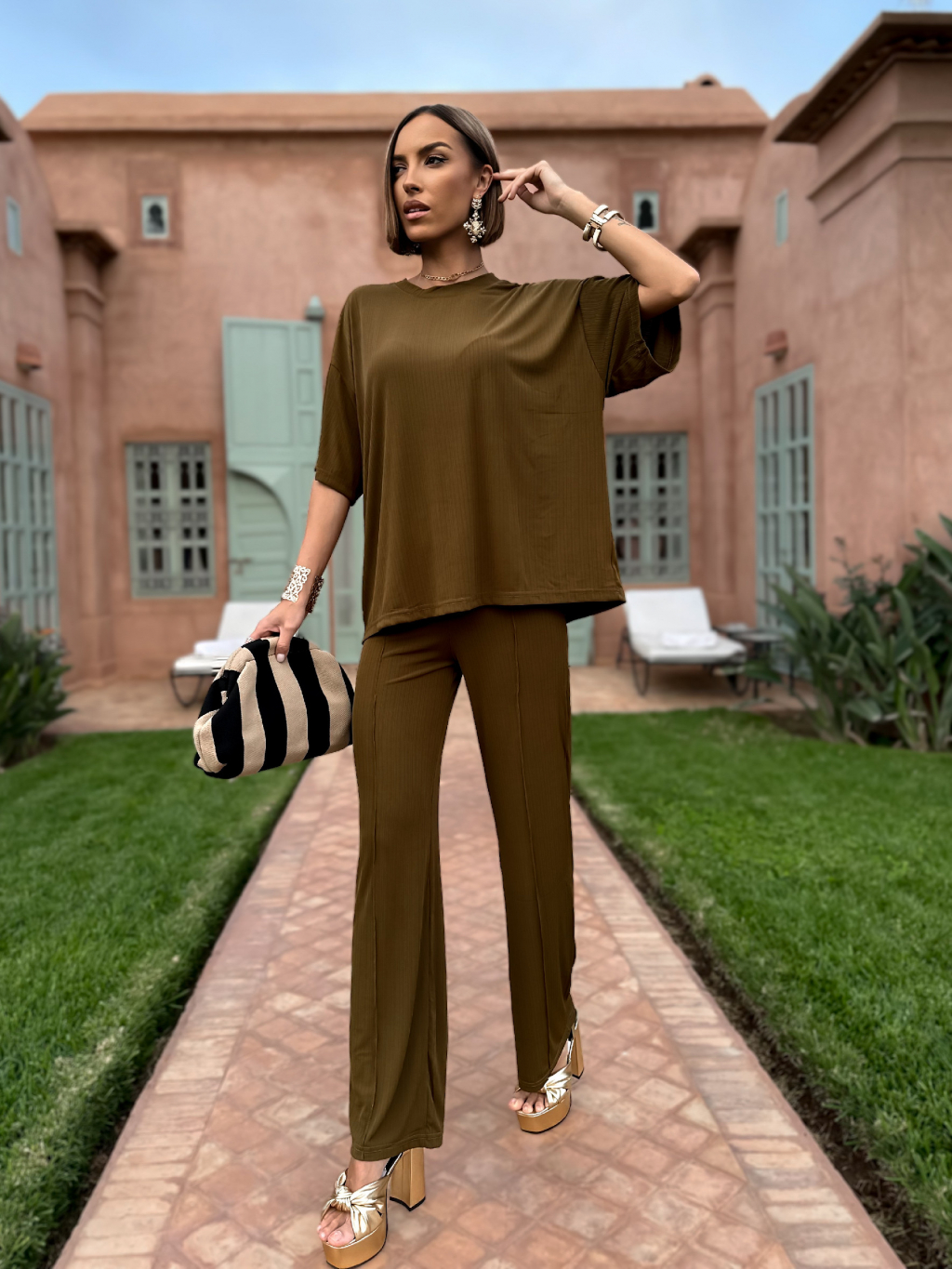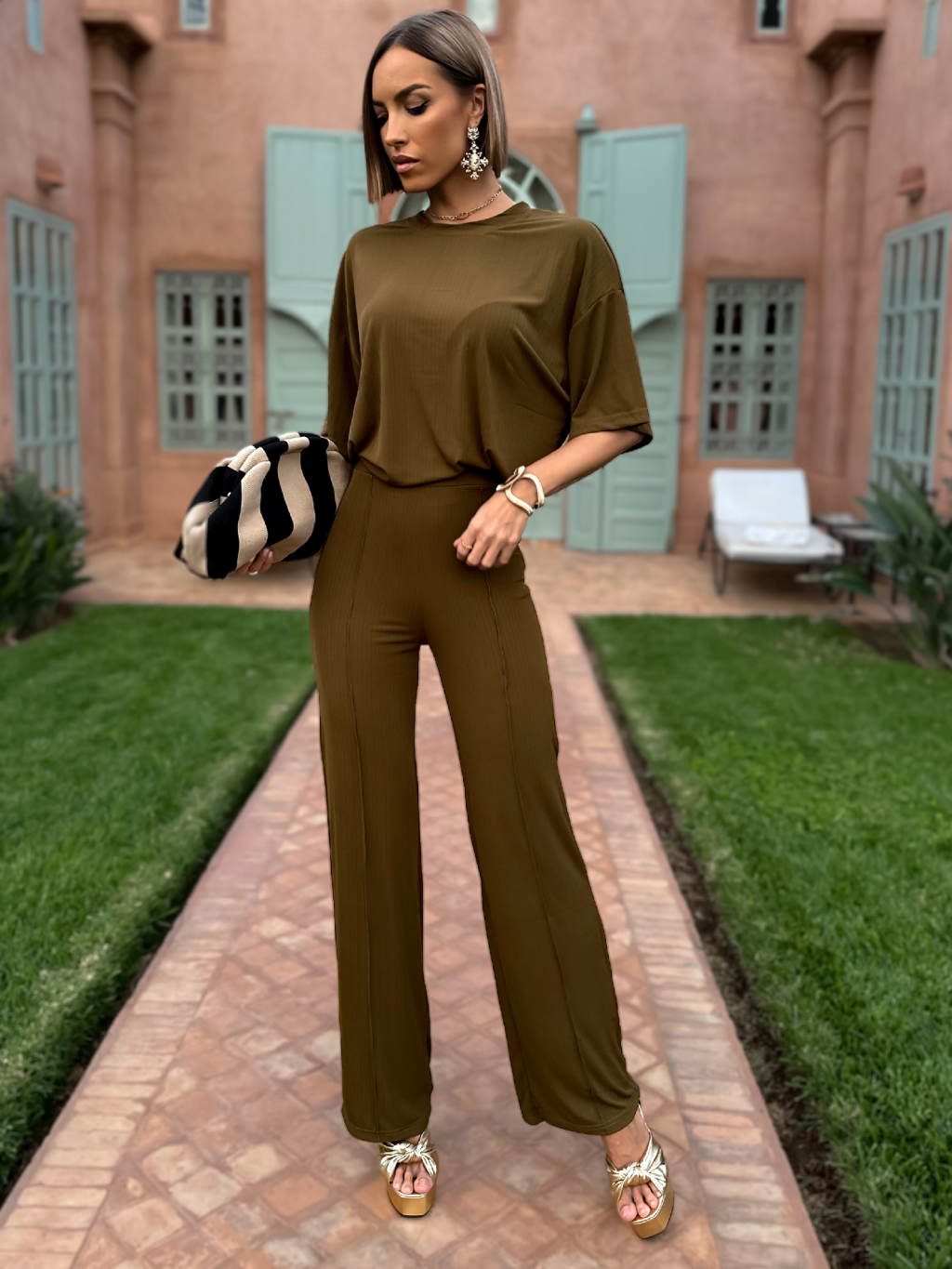 Hnedý pohodlný nohavicový komplet NICHOLE