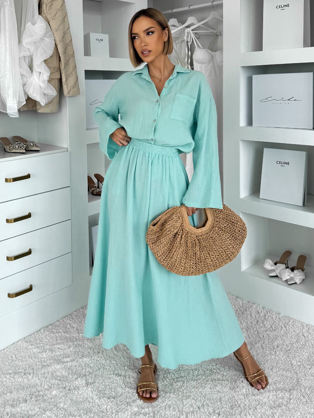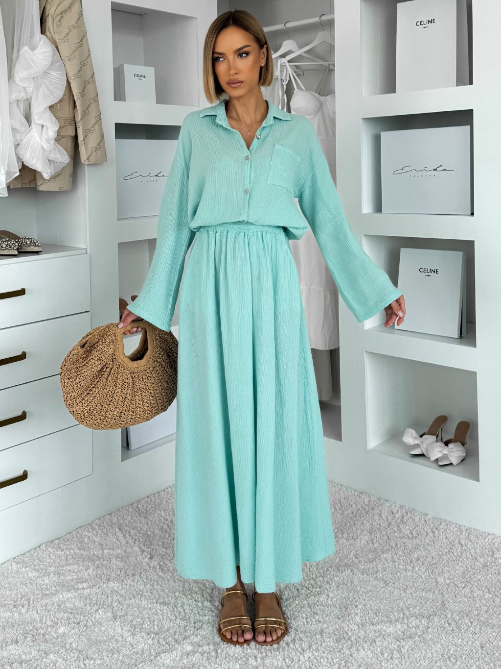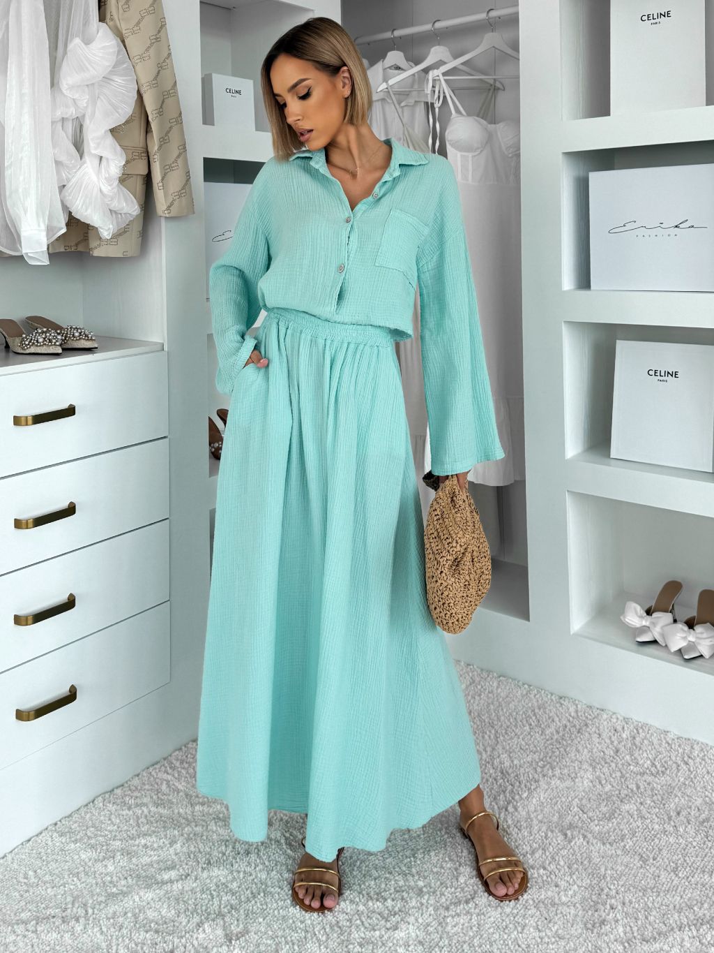 Svetlozelený mušelínový košeľový komplet BELIANE so sukňou
