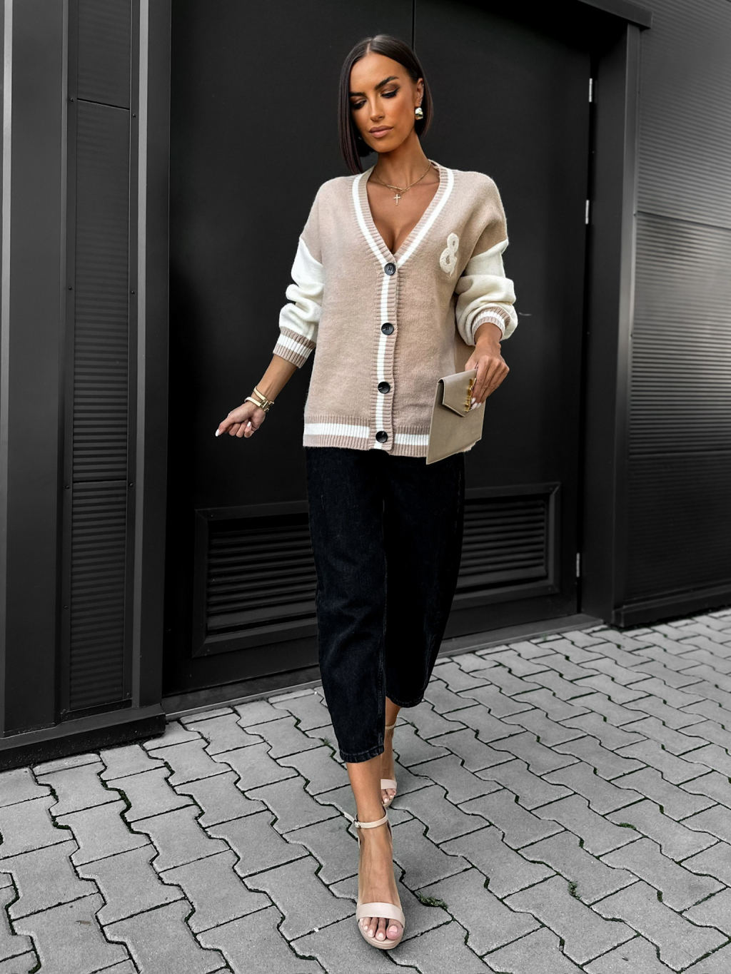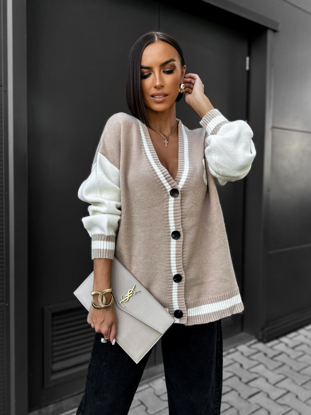 Béžový svetrík OAKEN s gombíkmi