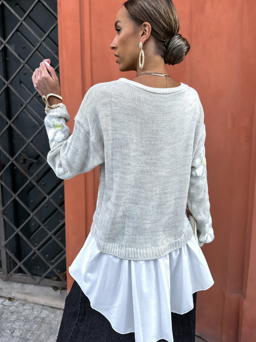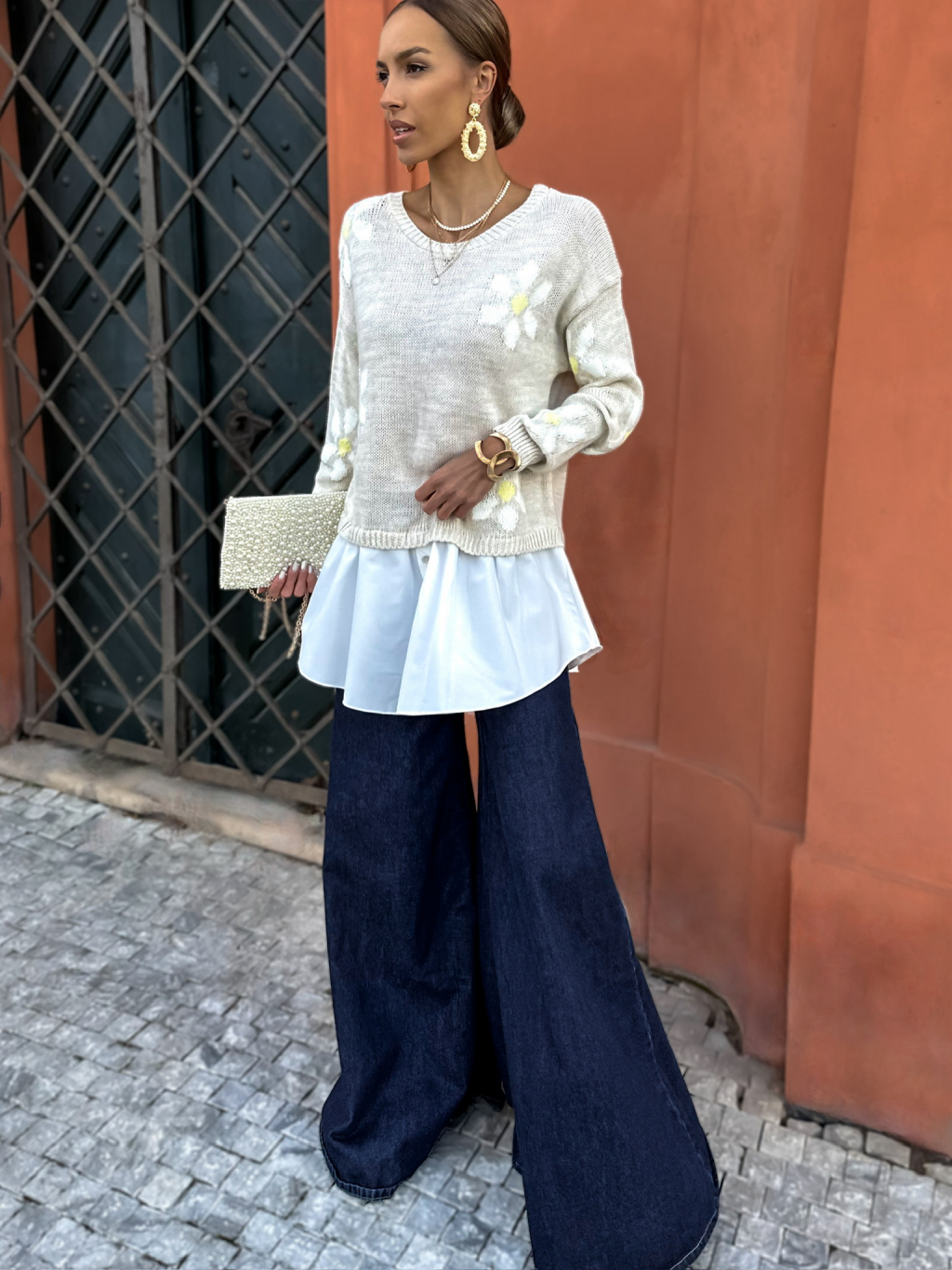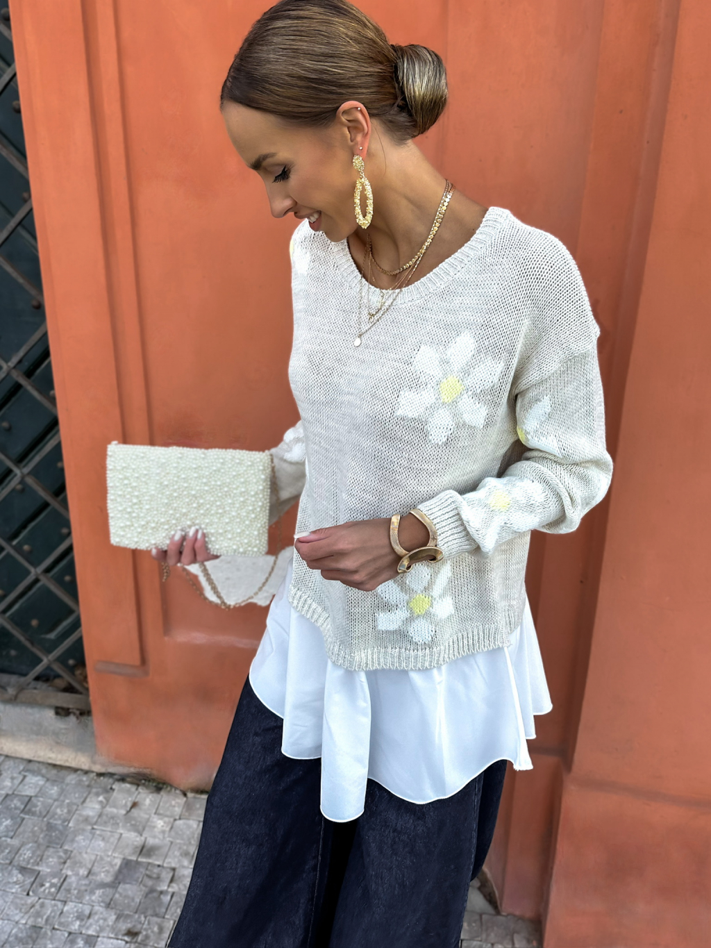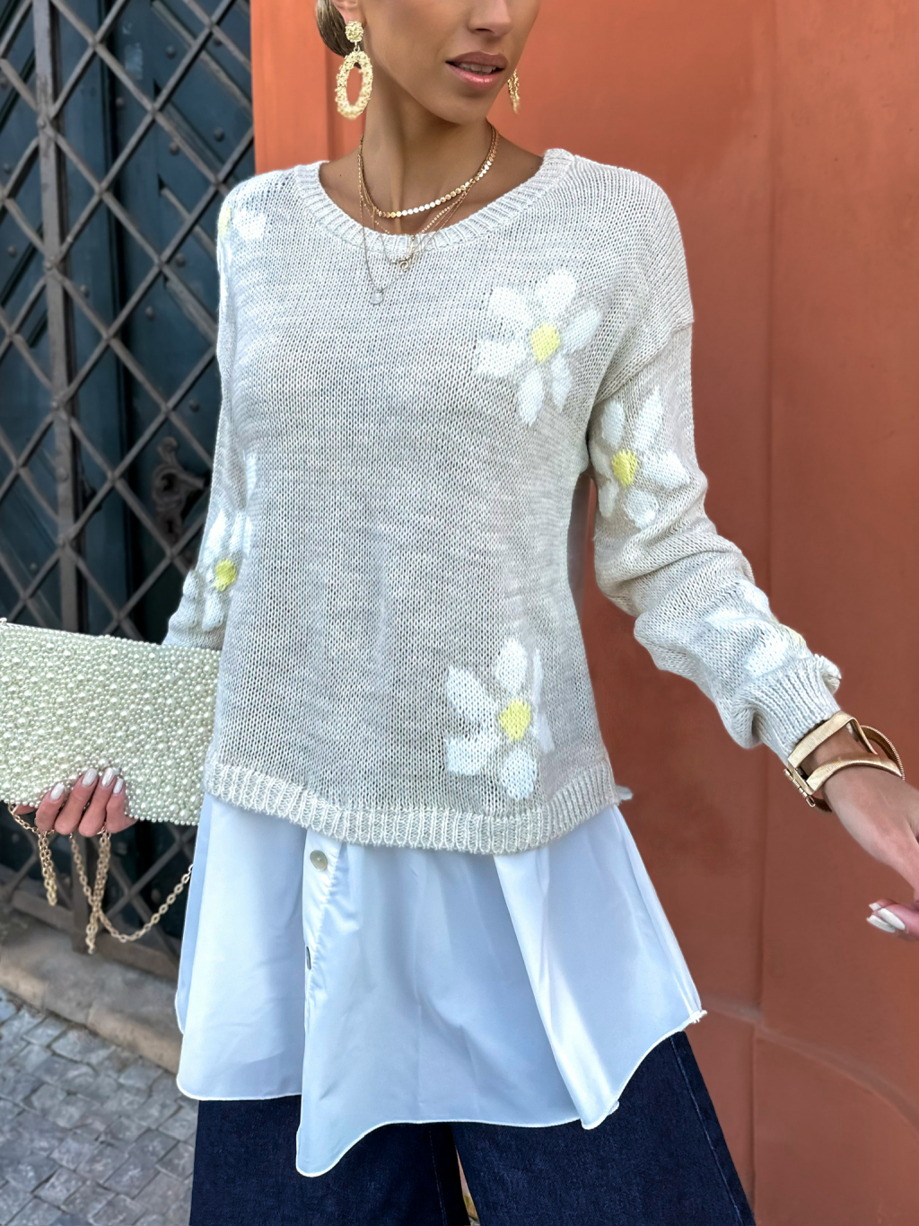 Béžový svetrík s kvetinami PAULINA