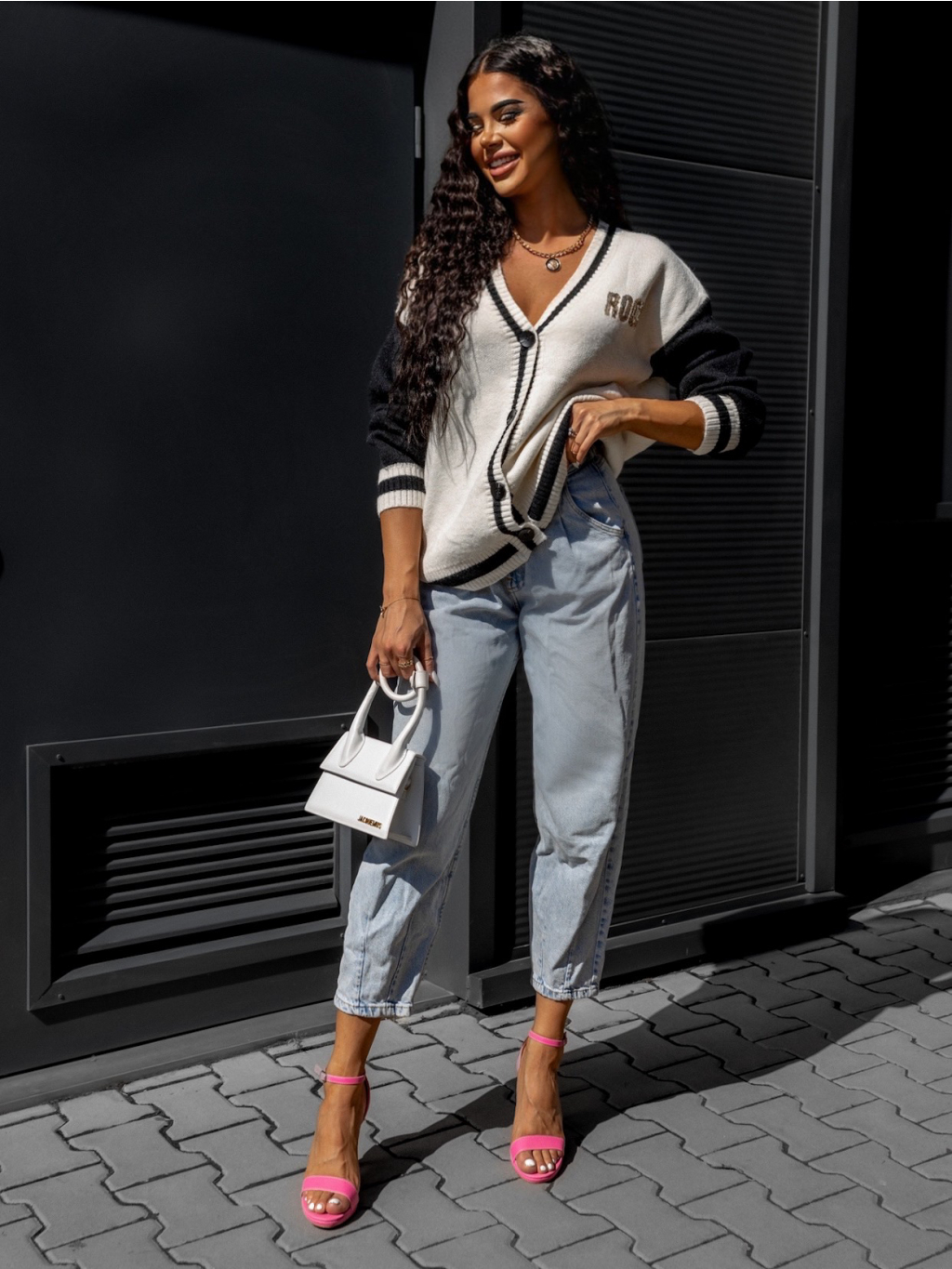Biely sveter LINEAR s gombíkmi