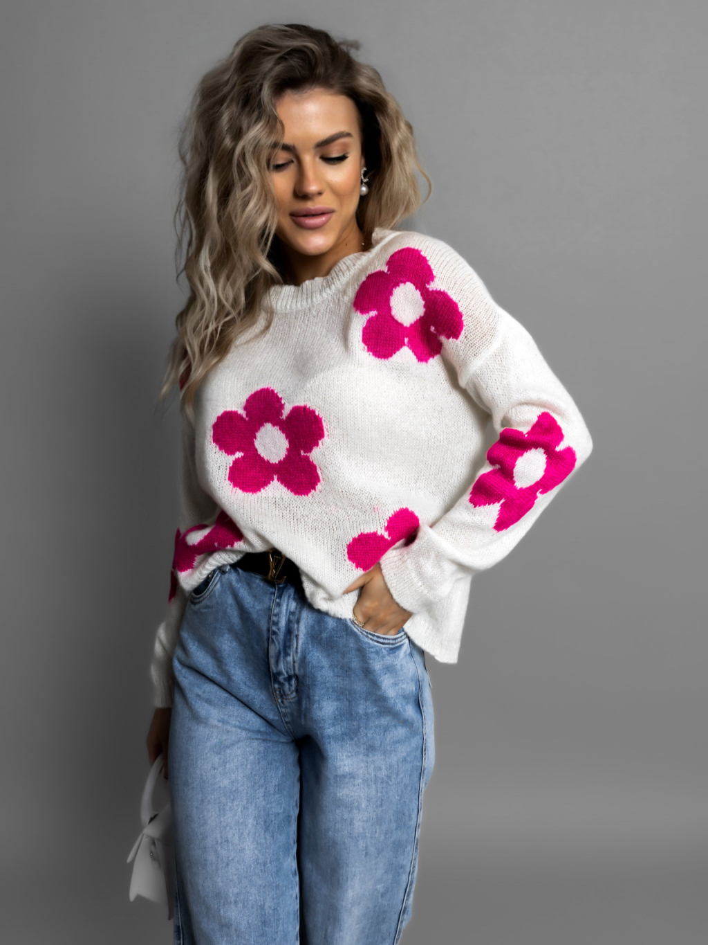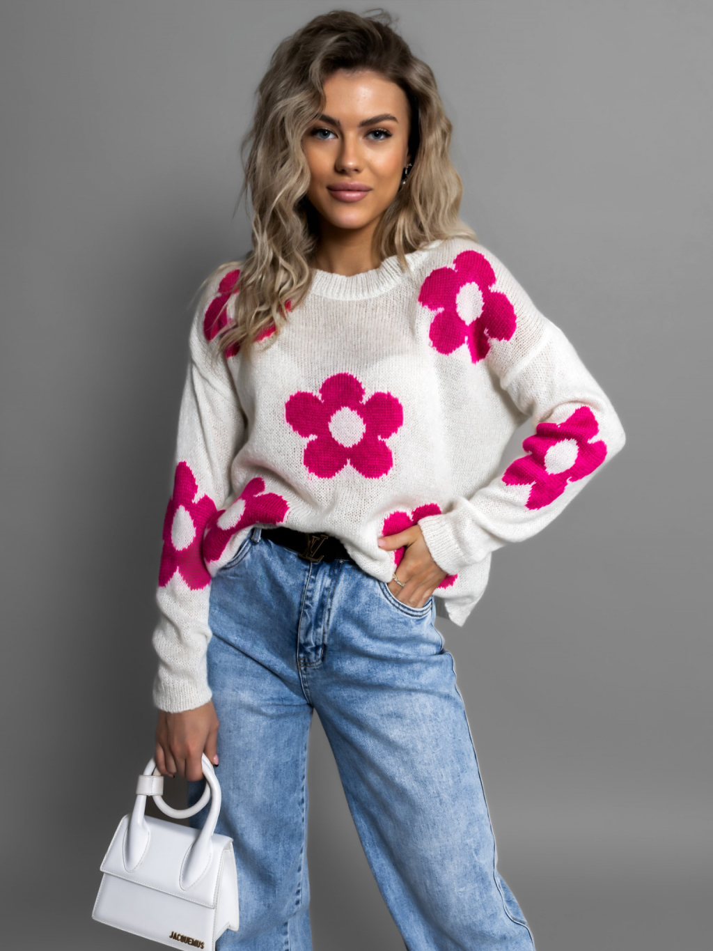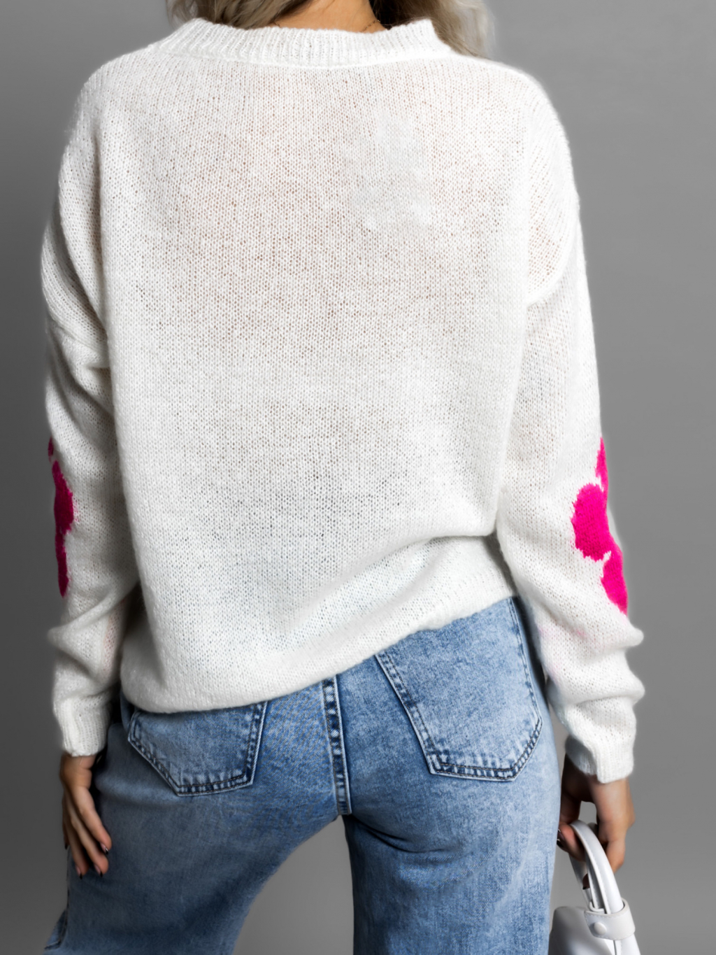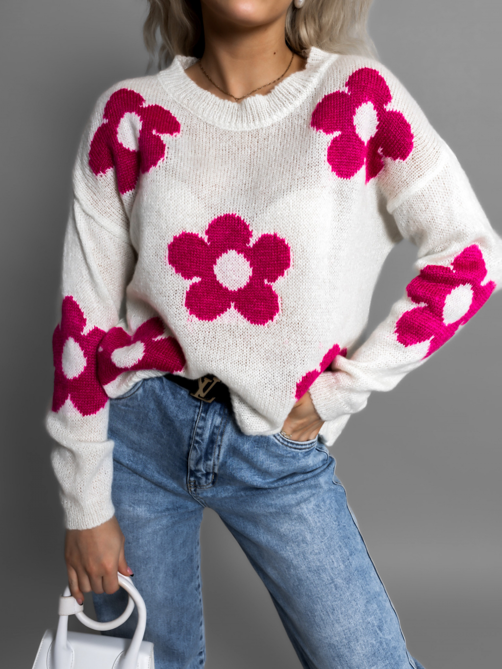 Biely svetrík NAPLESI s kvetinovým vzorom