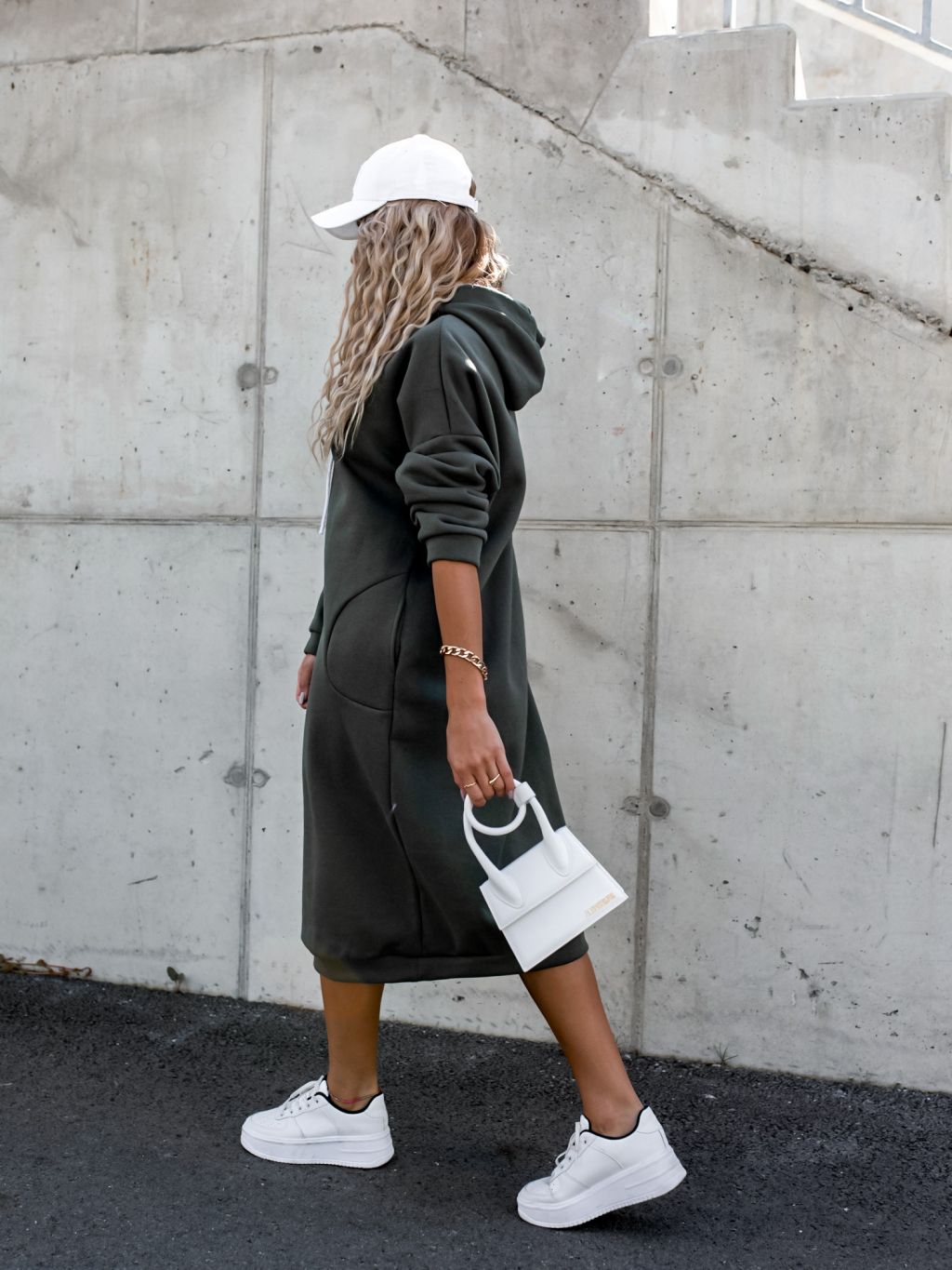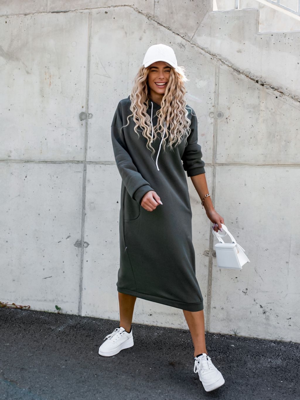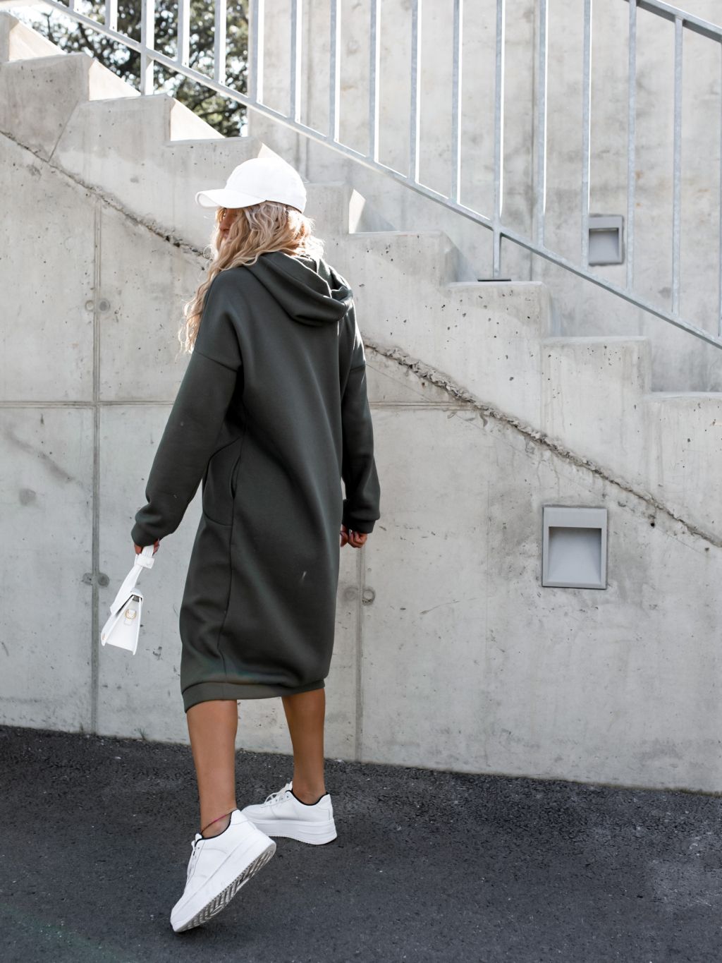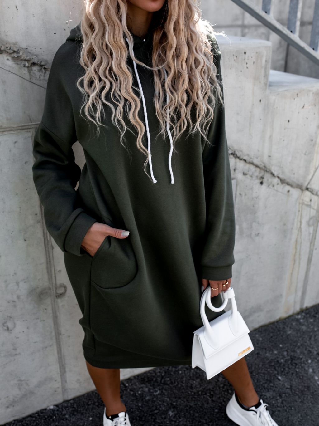 Khaki dlhé mikinové šaty DARINNE s kapucňou