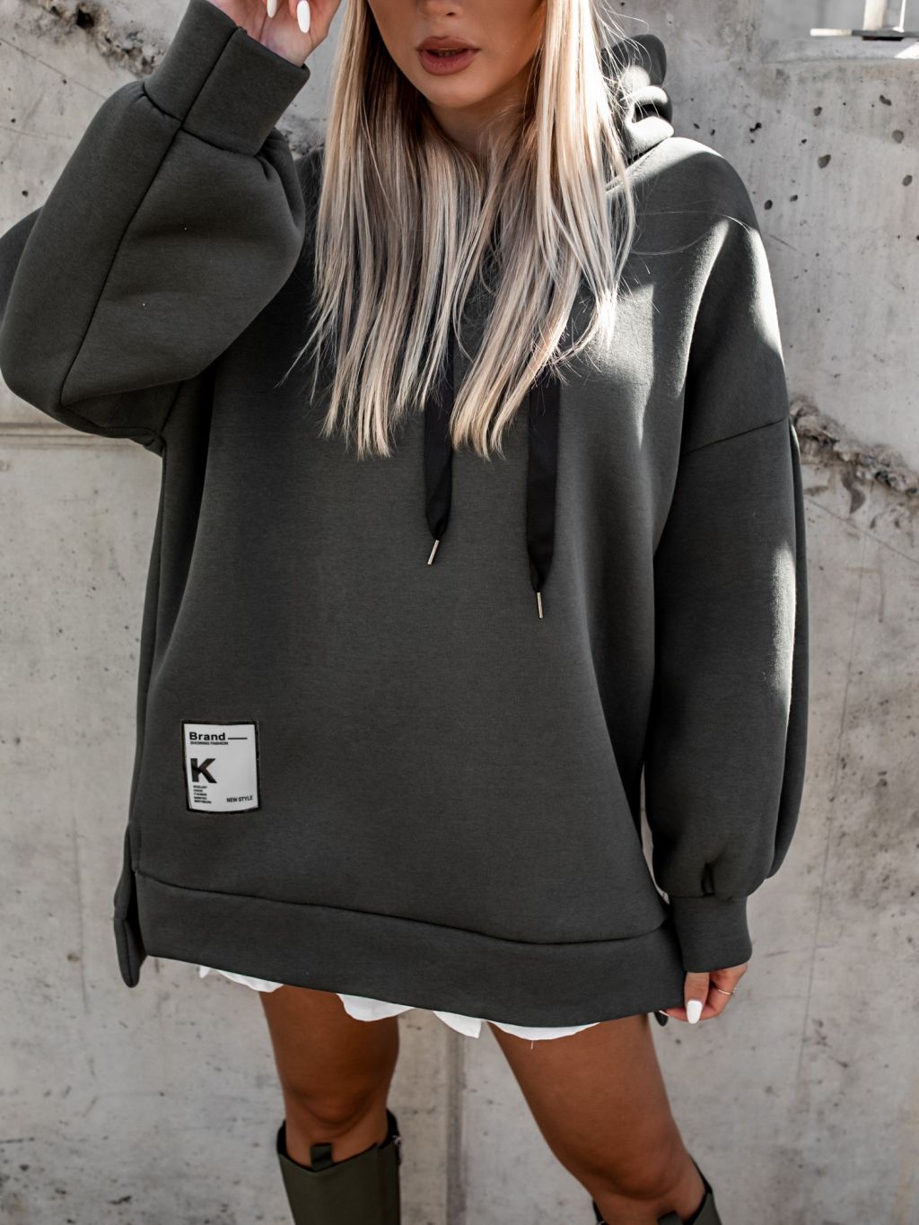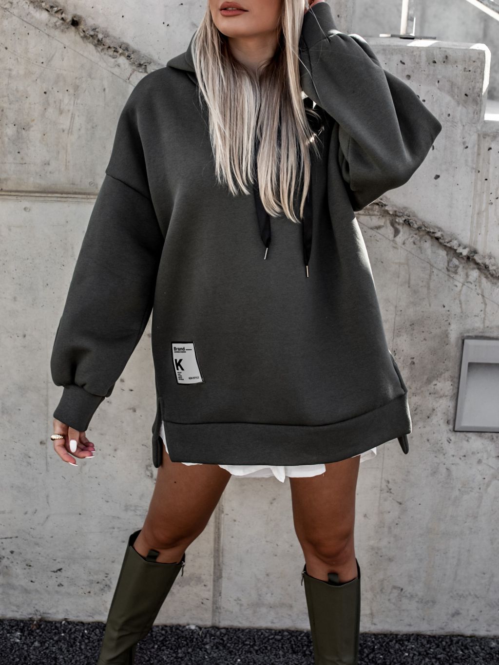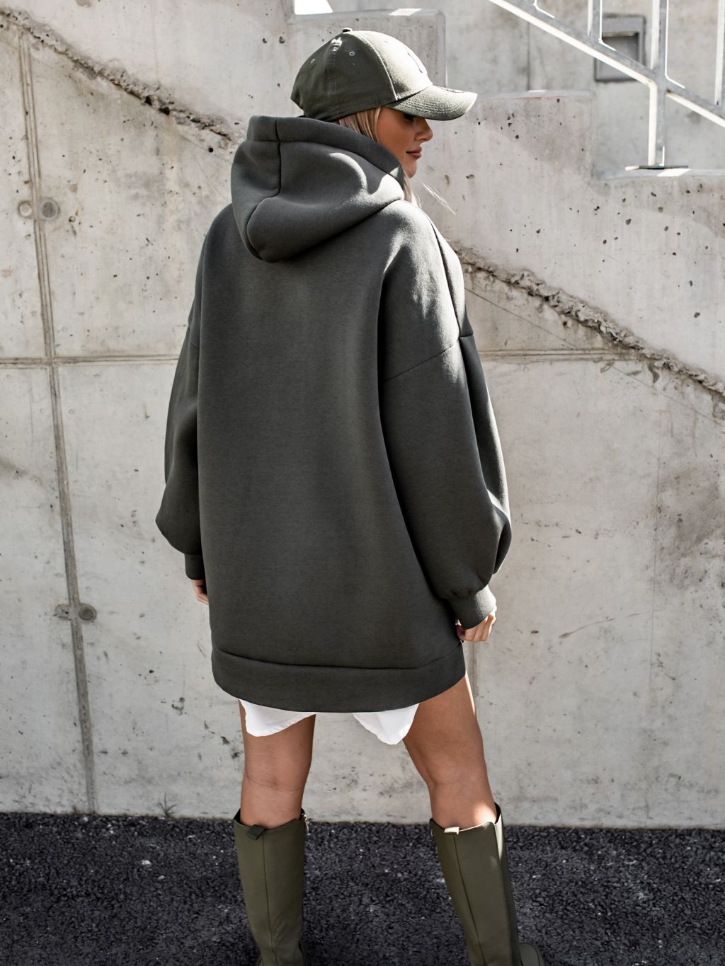 Khaki oversize mikina MOON s kapucňou