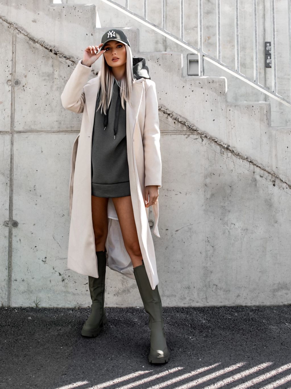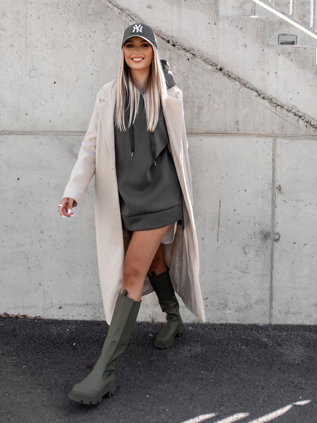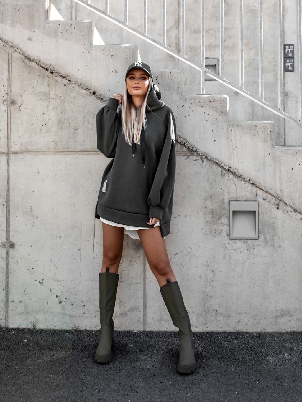 Khaki oversize mikina MOON s kapucňou