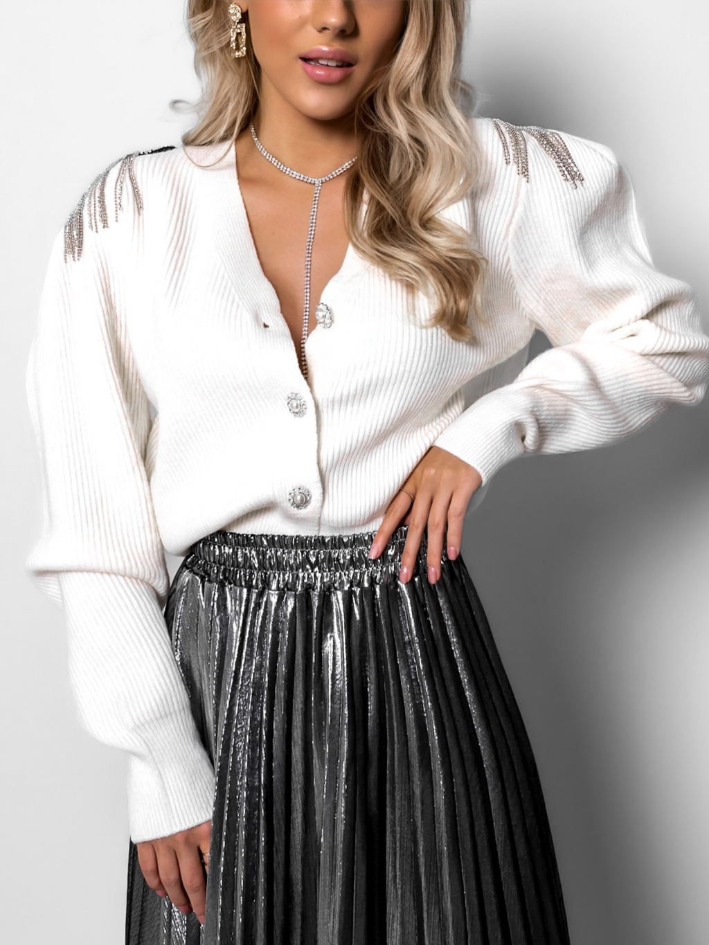 Krémový svetrík SATYROV s aplikáciou na ramenách