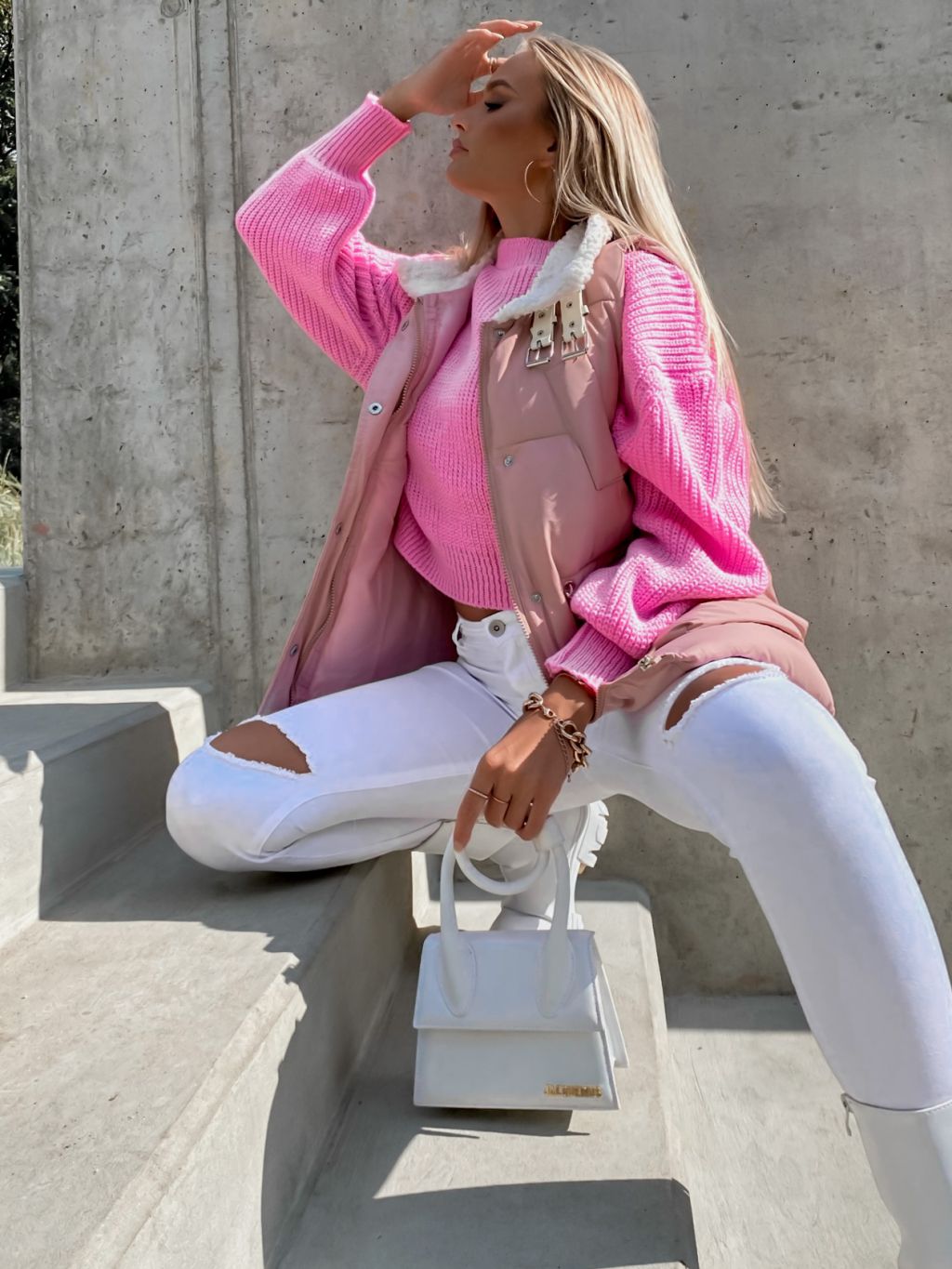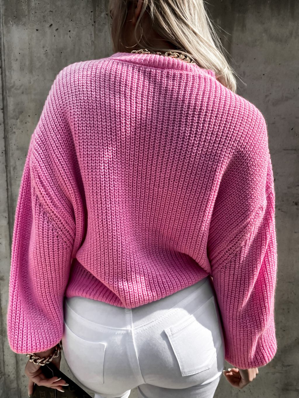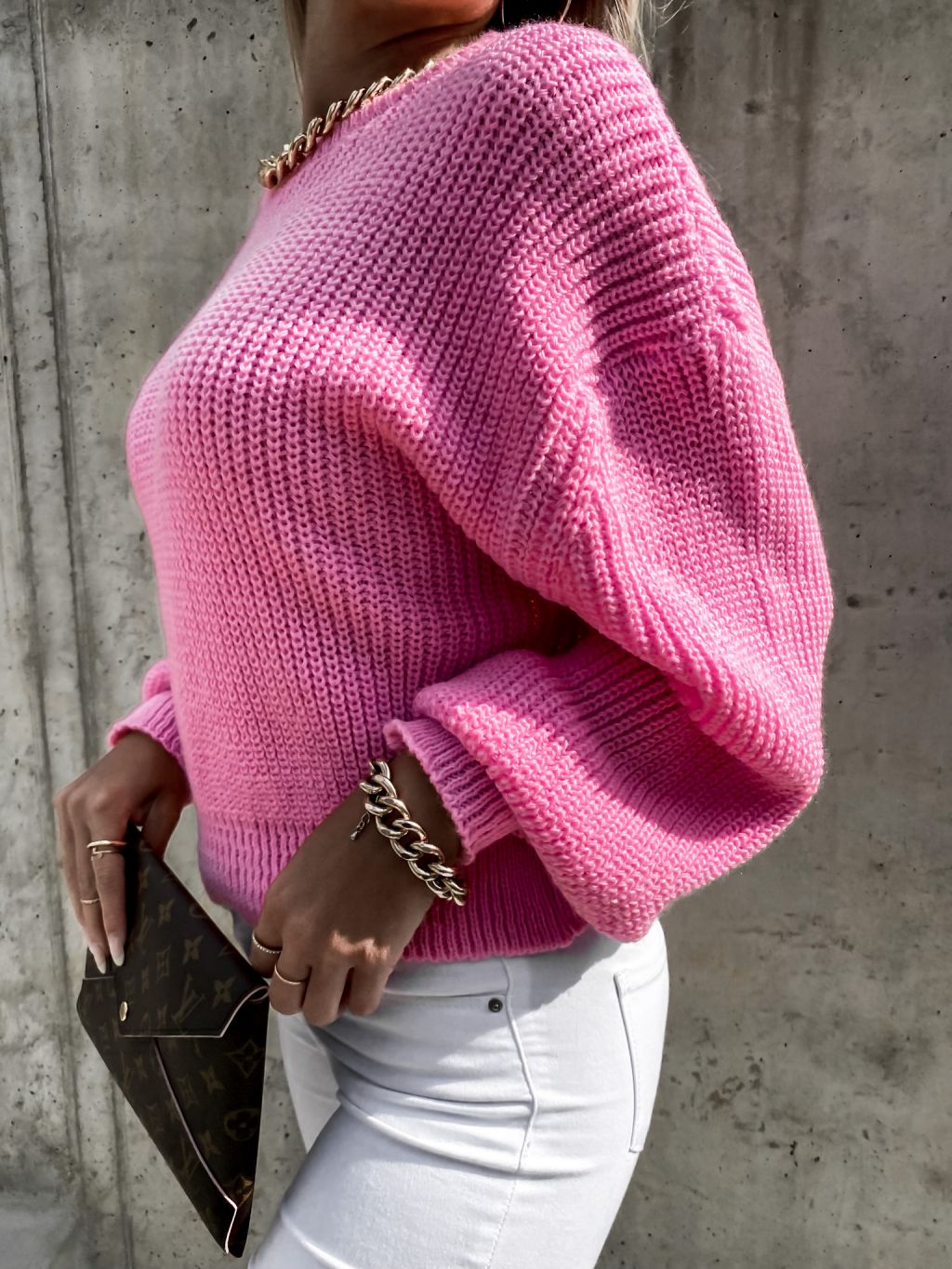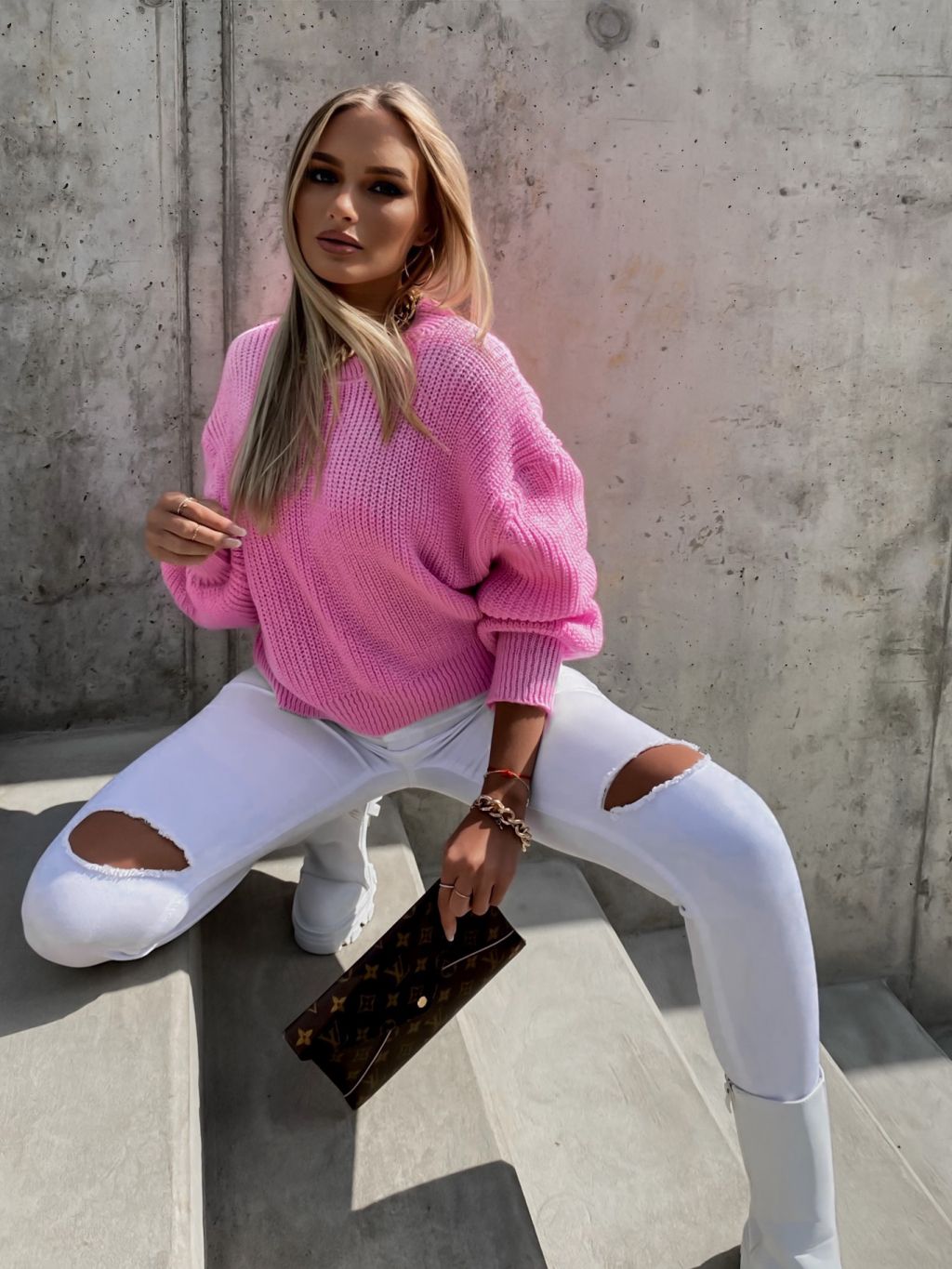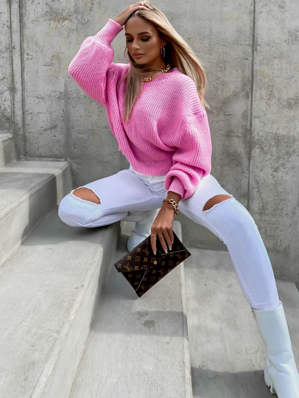Ružový pletený sveter DEITY s voľnými rukávmi