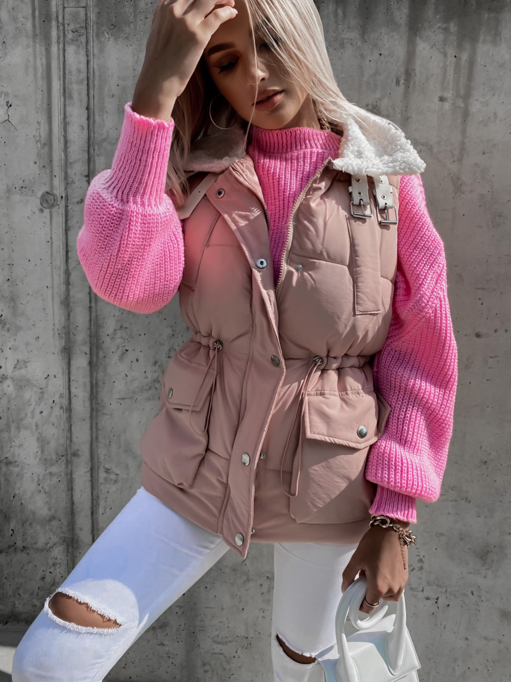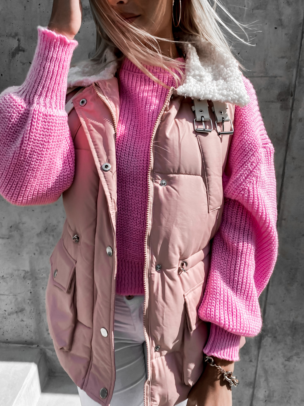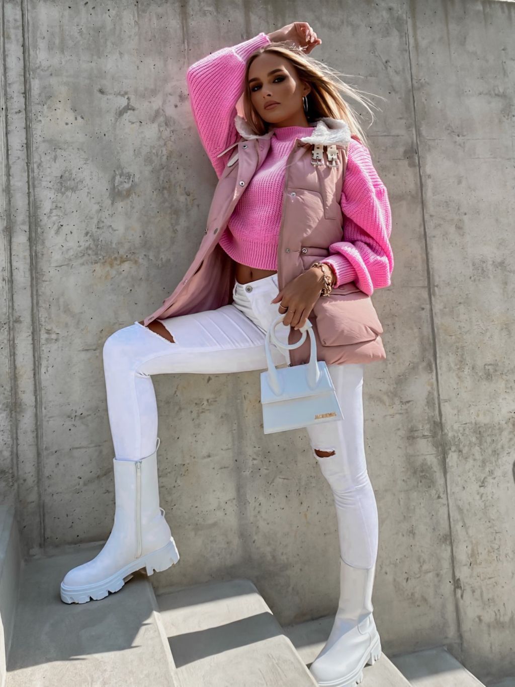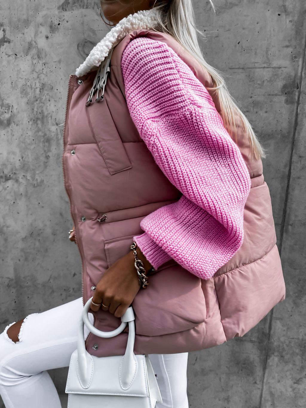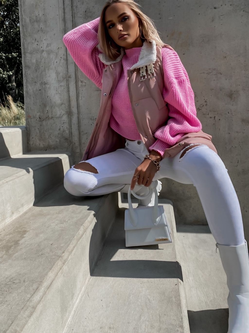 Ružový pletený sveter DEITY s voľnými rukávmi