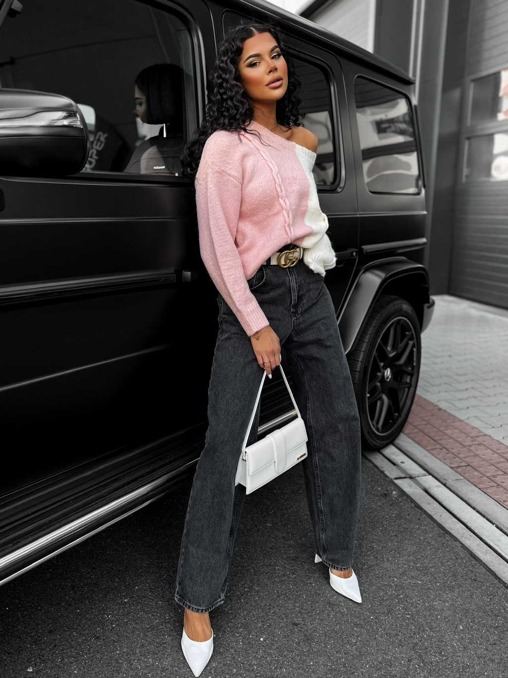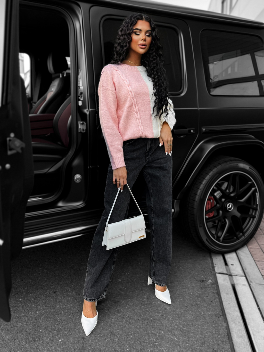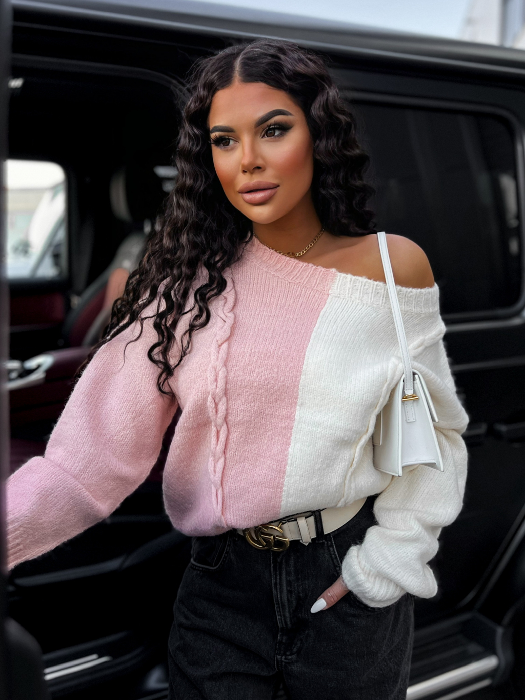 Ružový pletený sveter HELIX