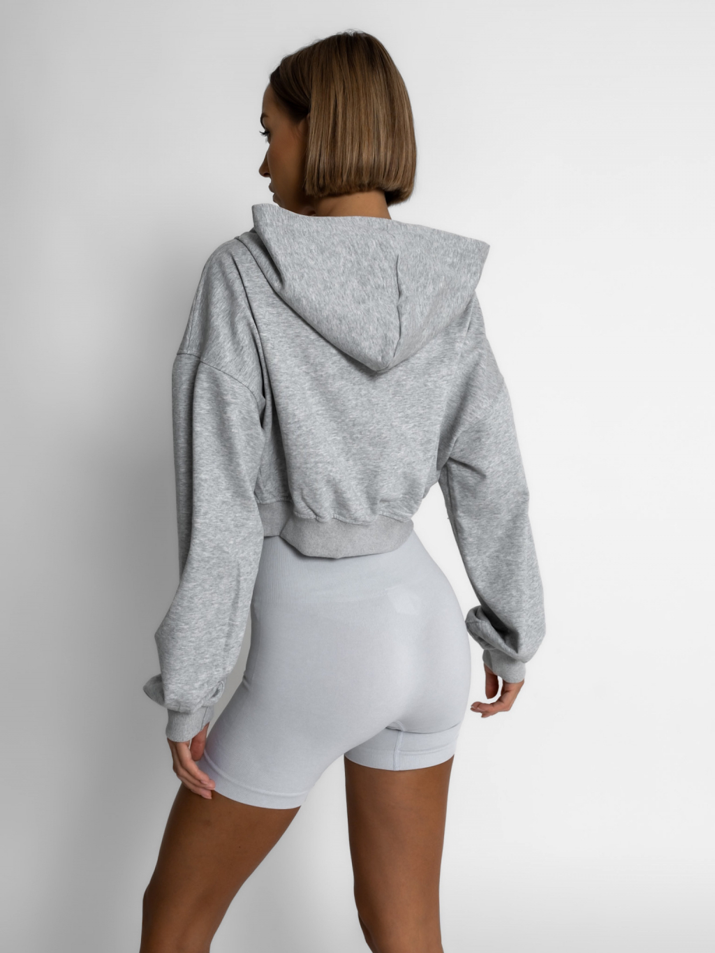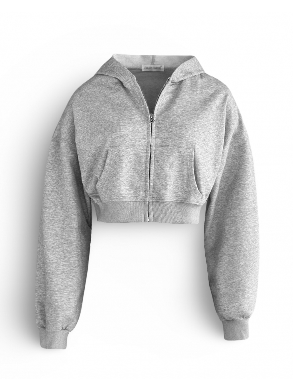 Sivá bavlnená crop krátka mikina JANEIRO na zips