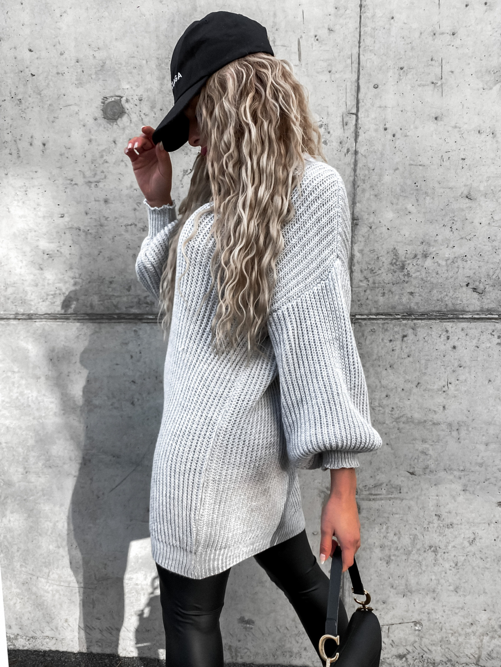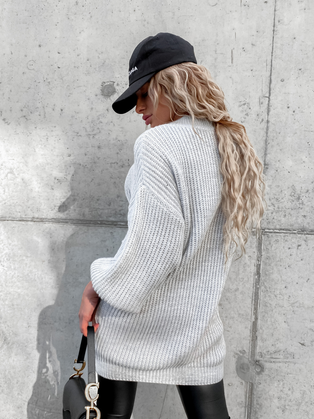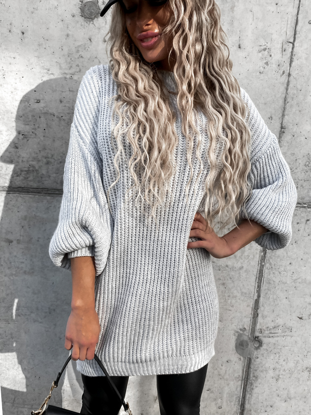 Svetlosivý pletený oversize sveter DEARLY