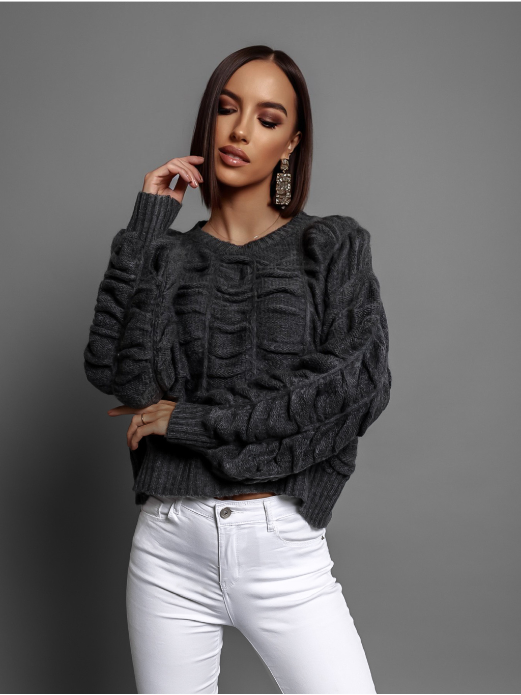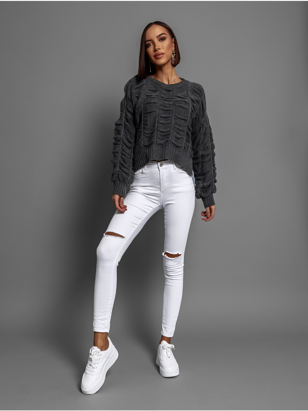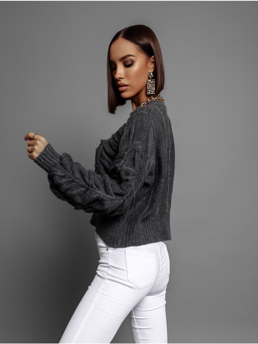 Tmavosivý nariasený sveter DROPPY s voľnými rukávmi