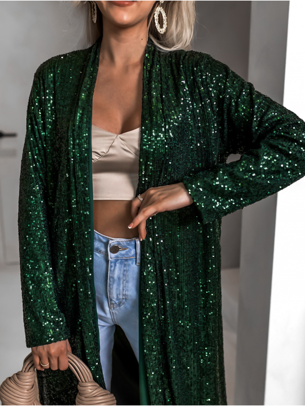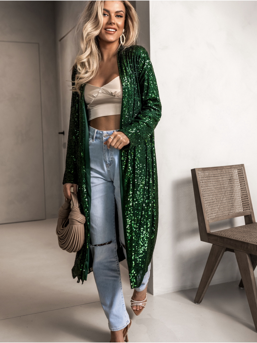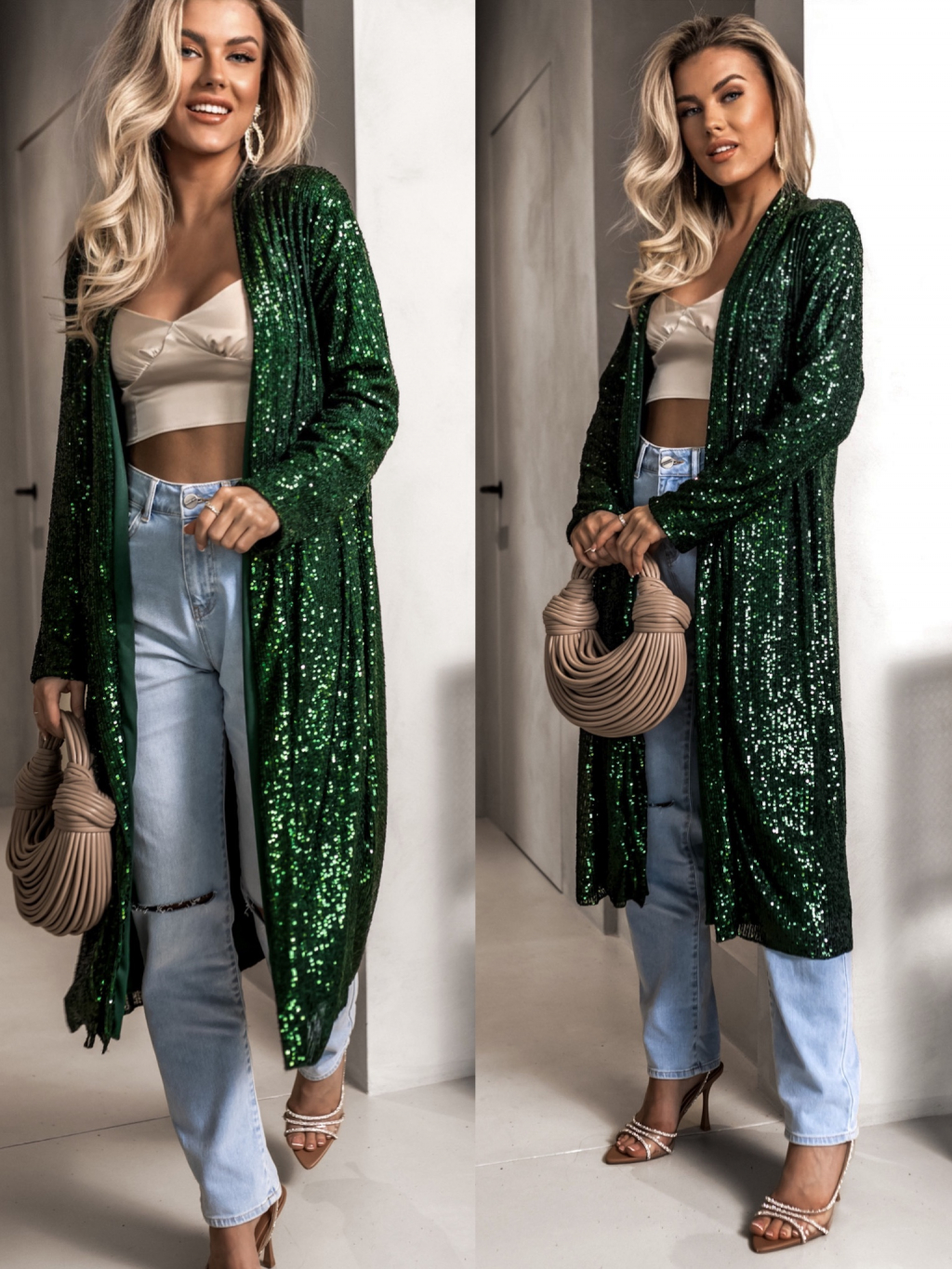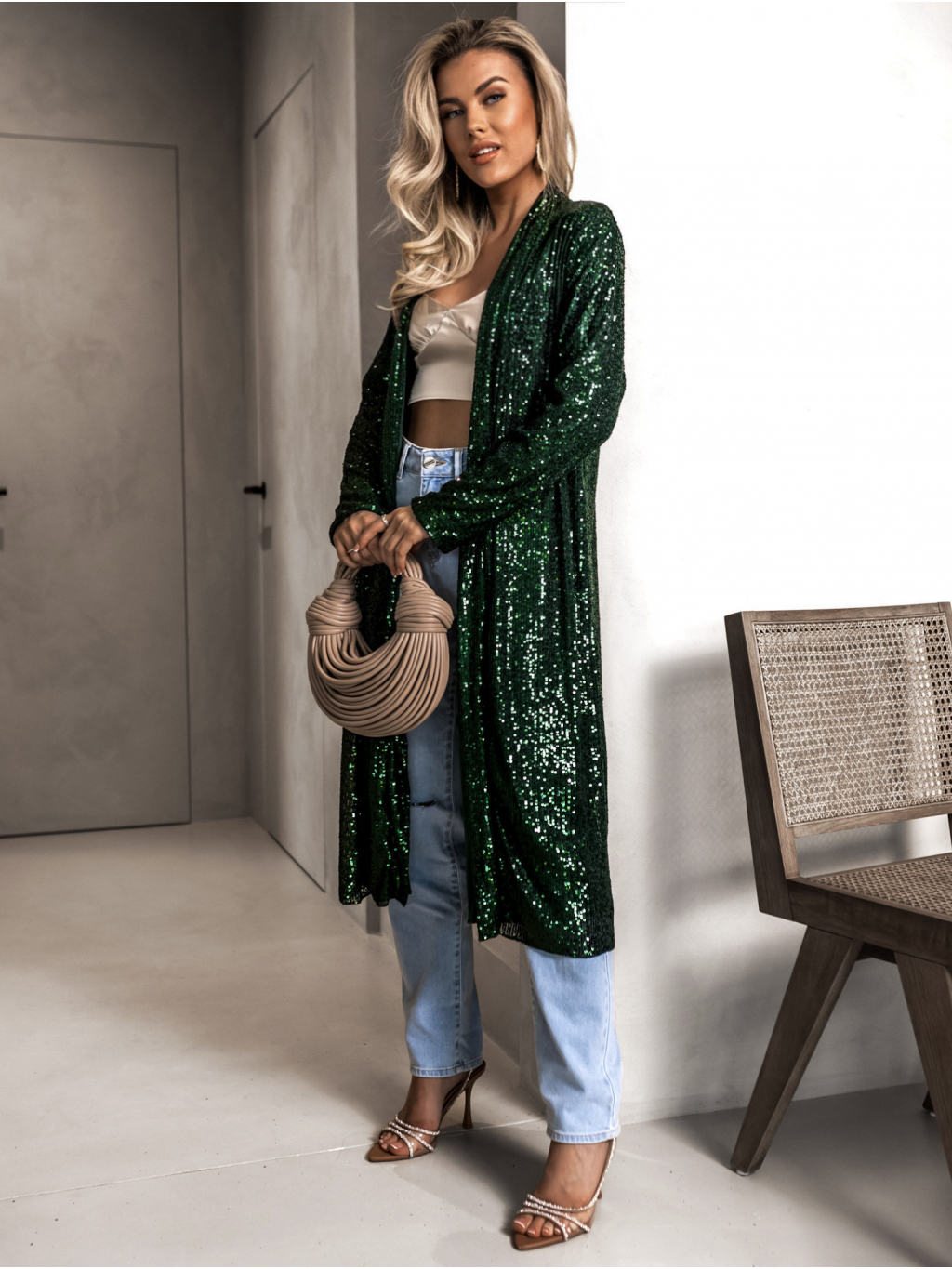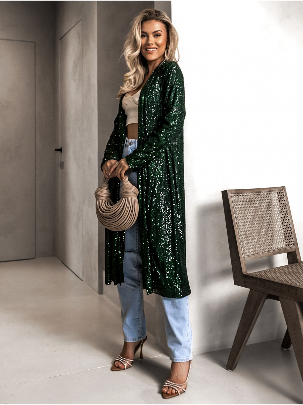 Zelený trblietavý kardigán YURIDIA s flitrami
