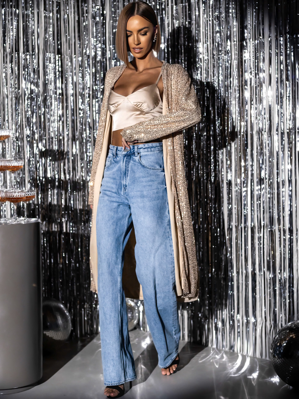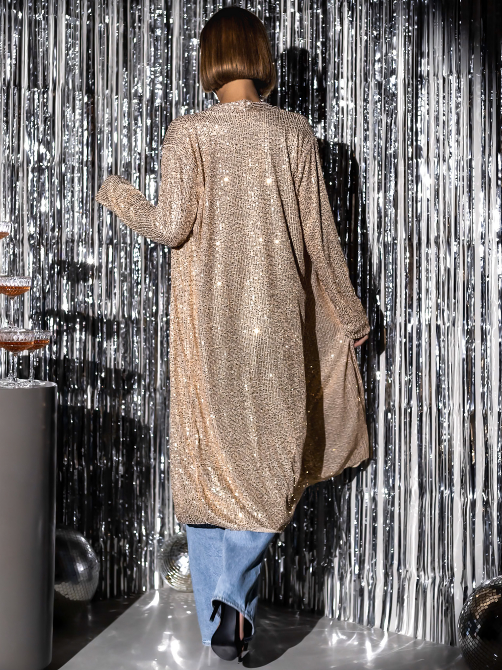 Zlatý trblietavý kardigán YURIDIA s flitrami