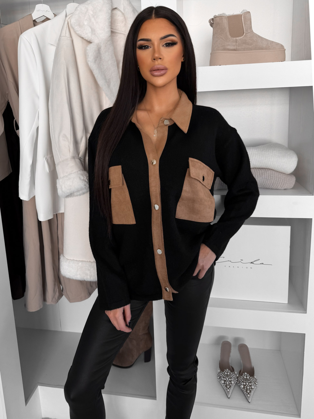Čierny oversize košeľový sveter ECLANT s gombíkmi