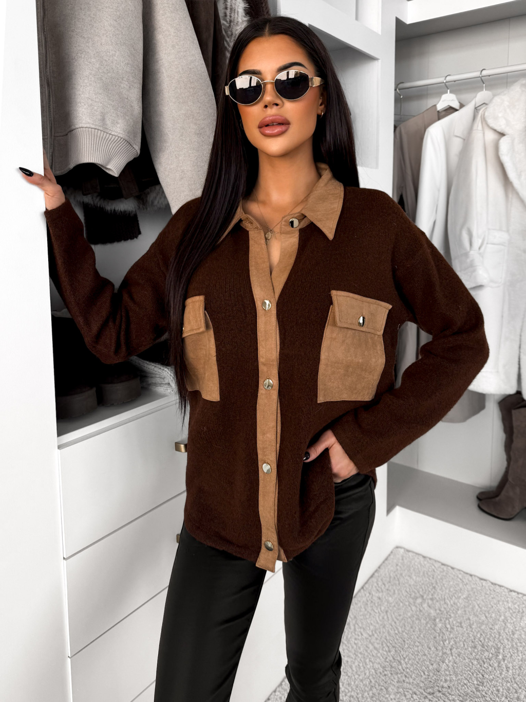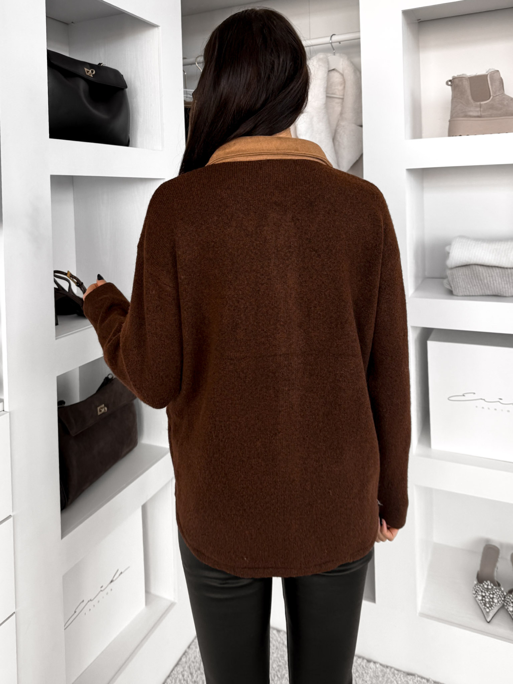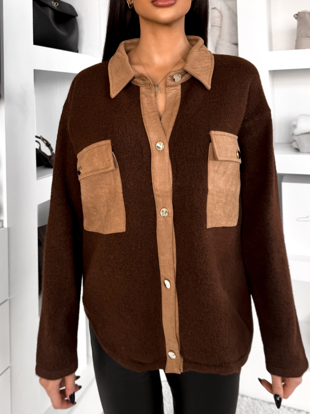 Hnedý oversize košeľový sveter ECLANT s gombíkmi