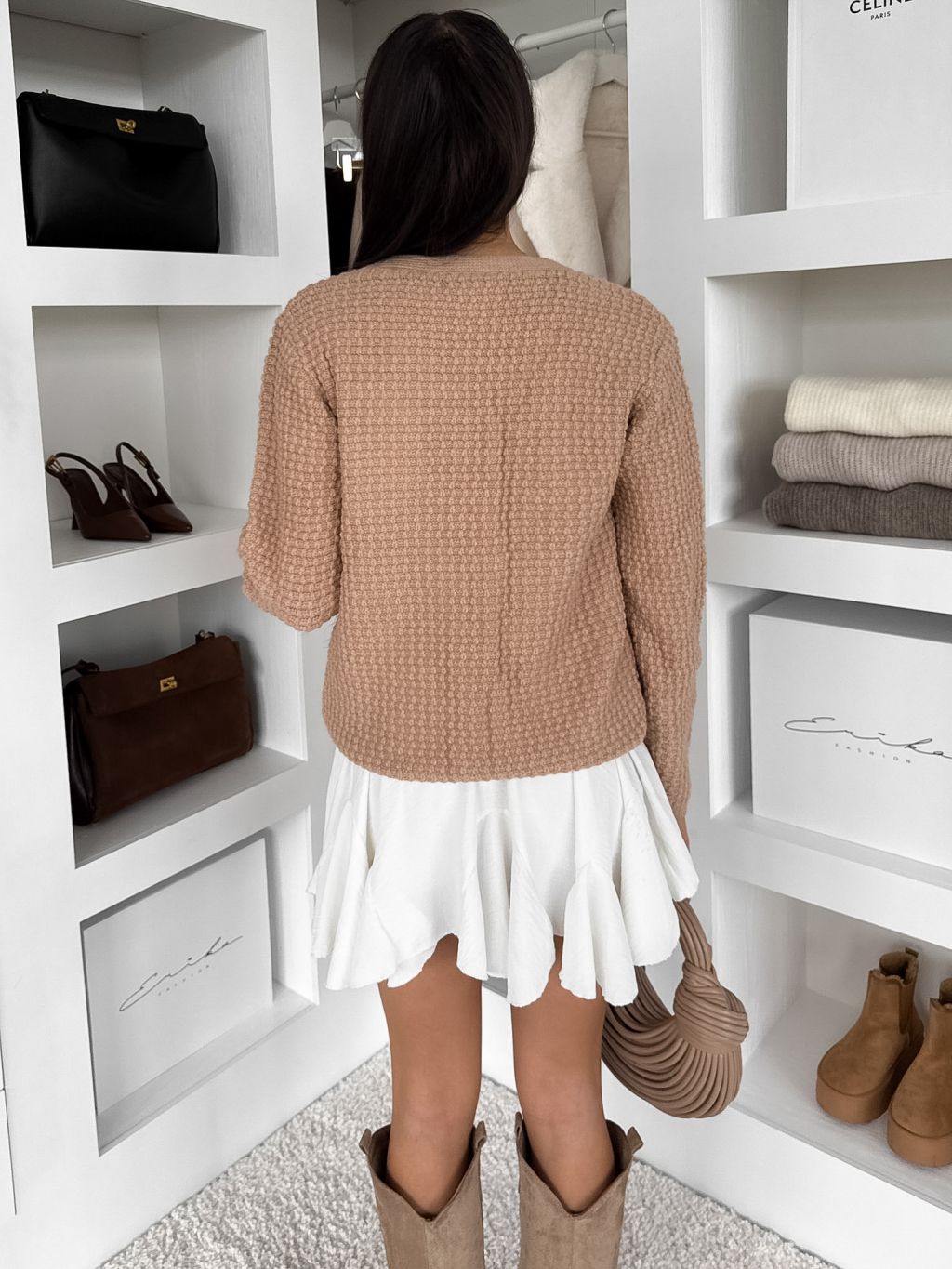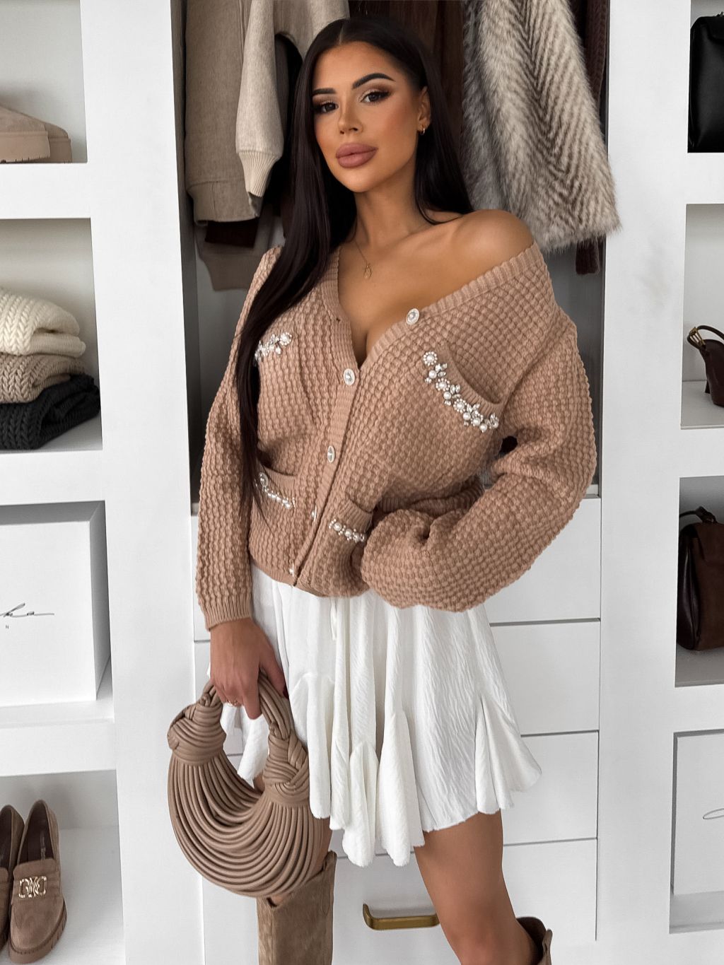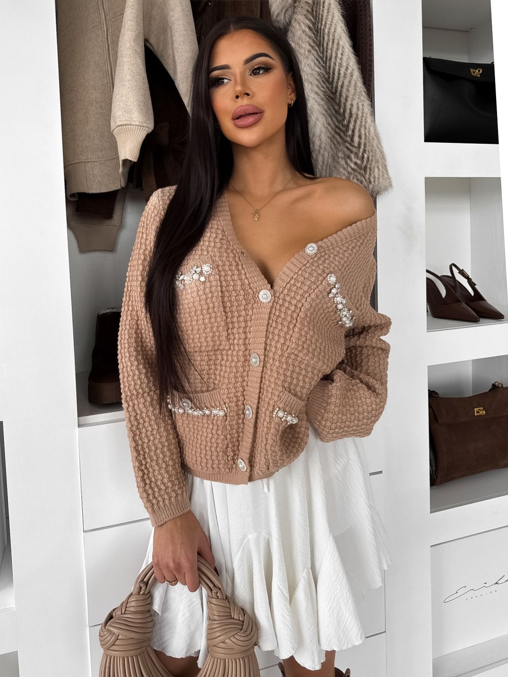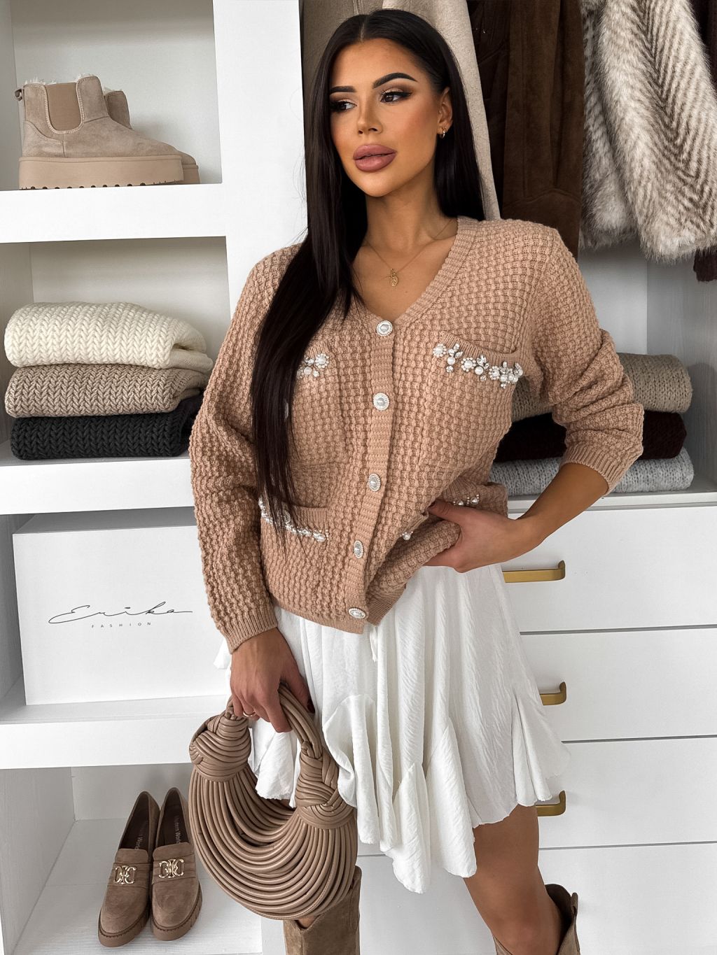 Hnedý pletený moderný sveter KIRELLO na gombíky