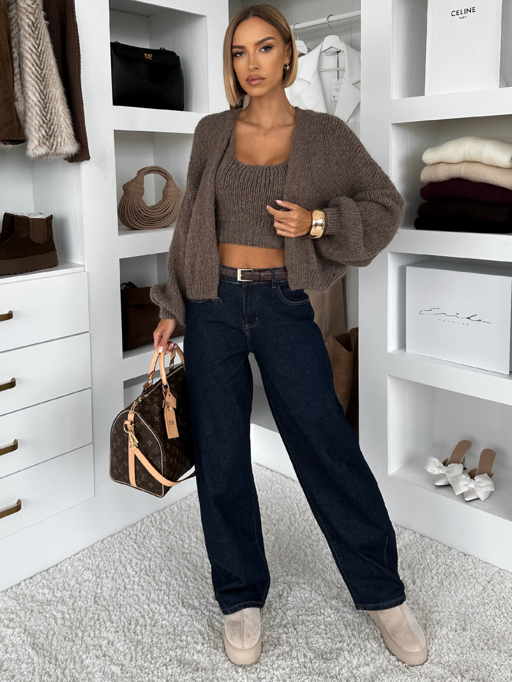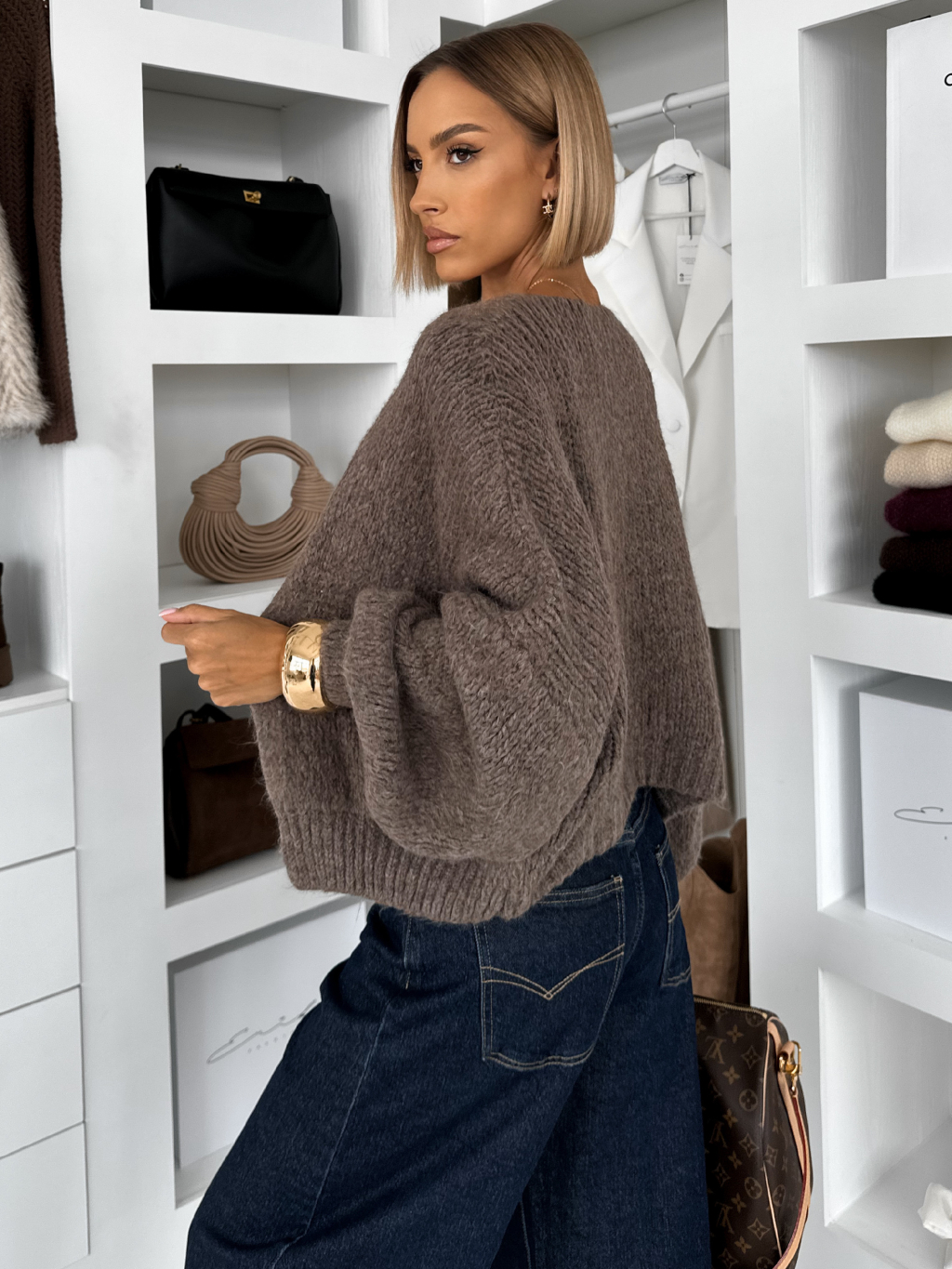 Hnedý sveter CRELYSA s topom