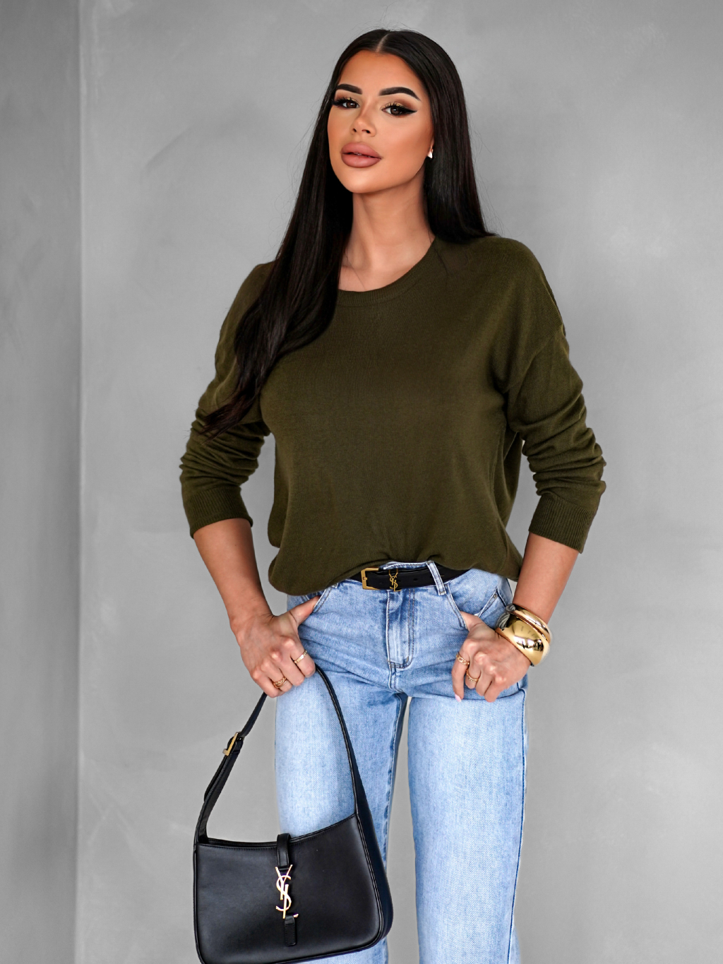 Kaki ľahký svetrík DROBEN