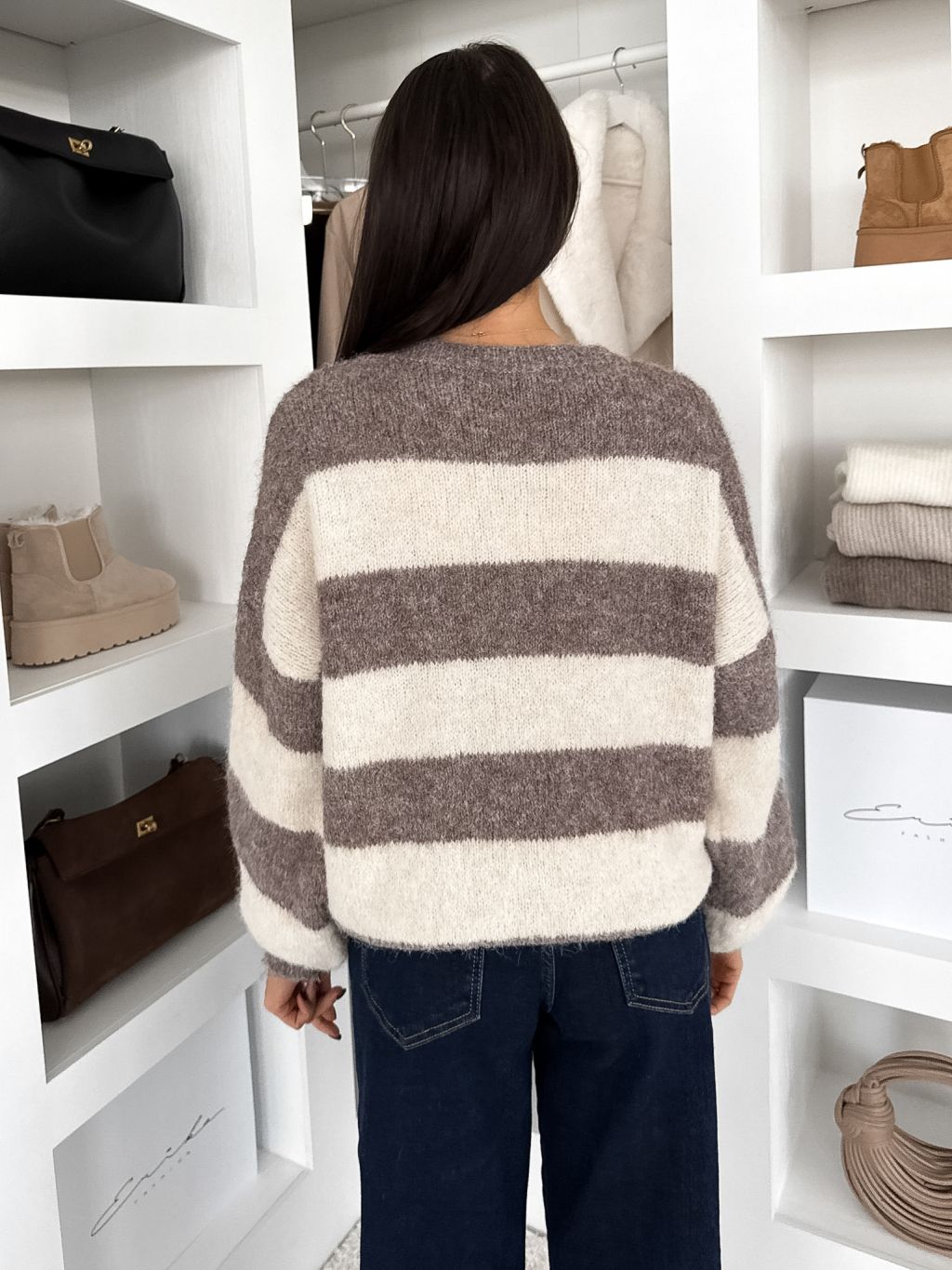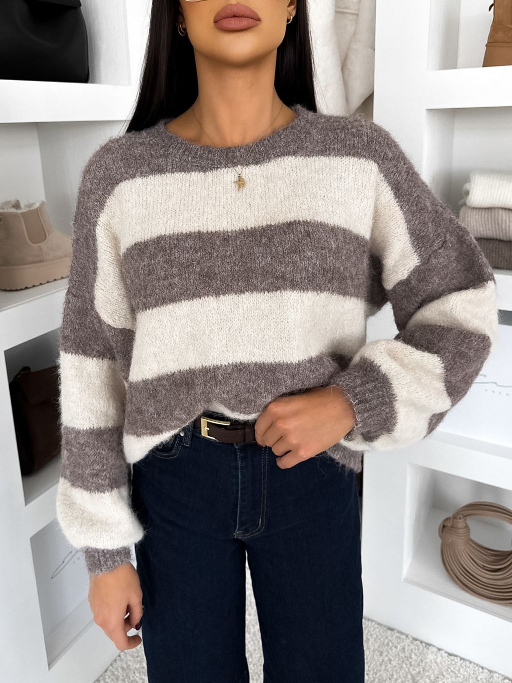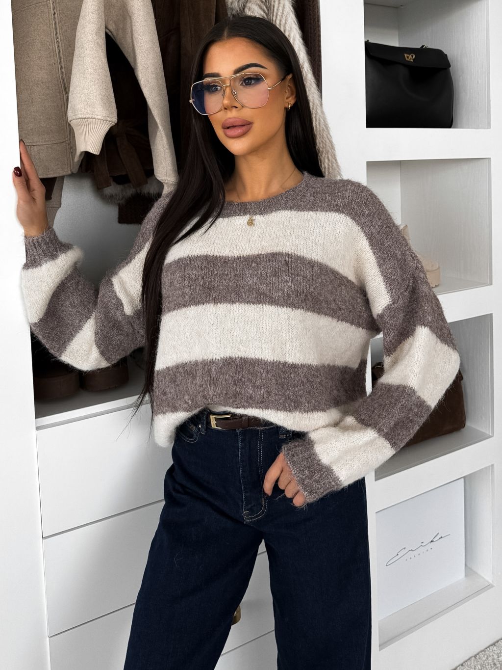 Pruhovaný hnedý sveter VIONERA