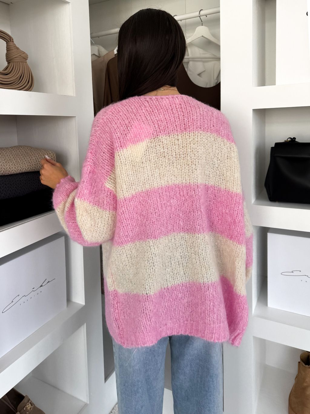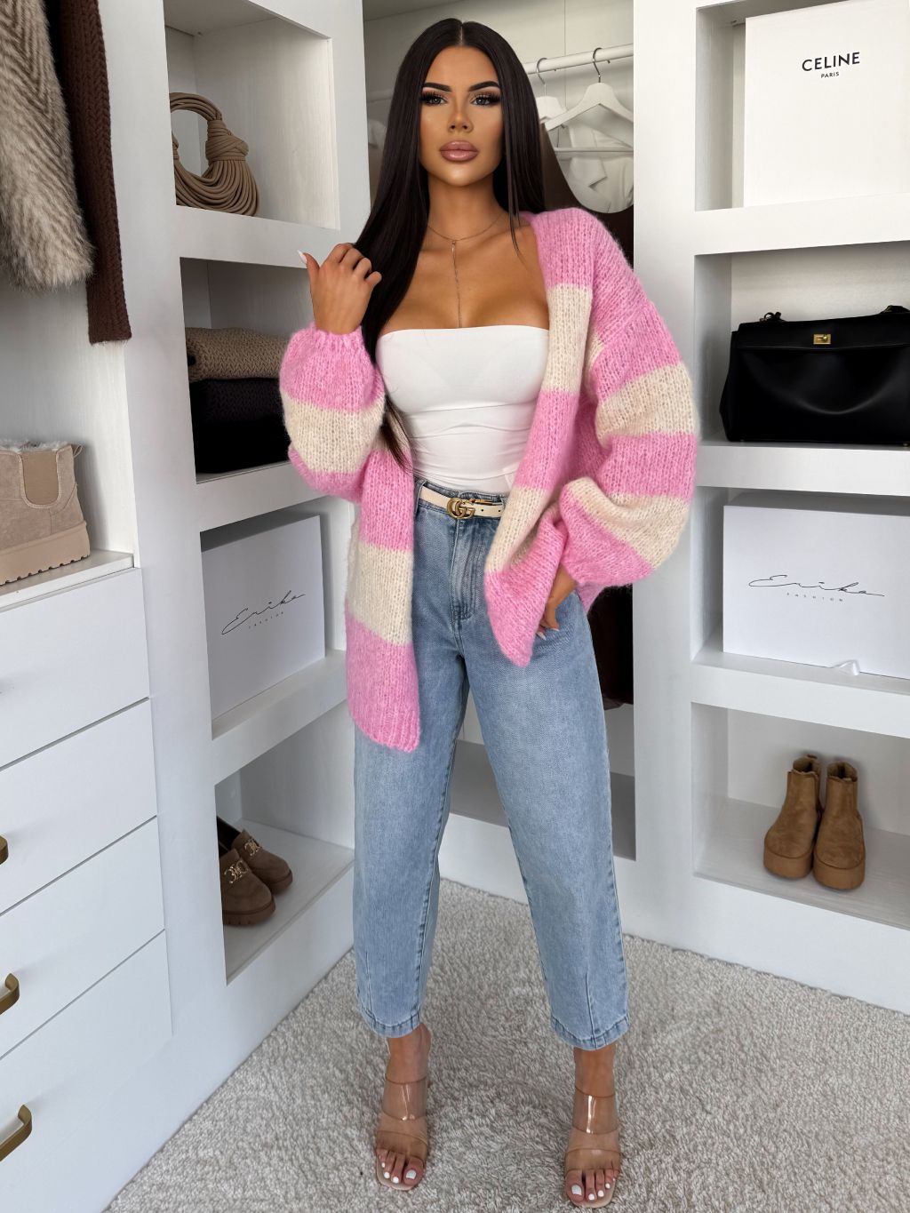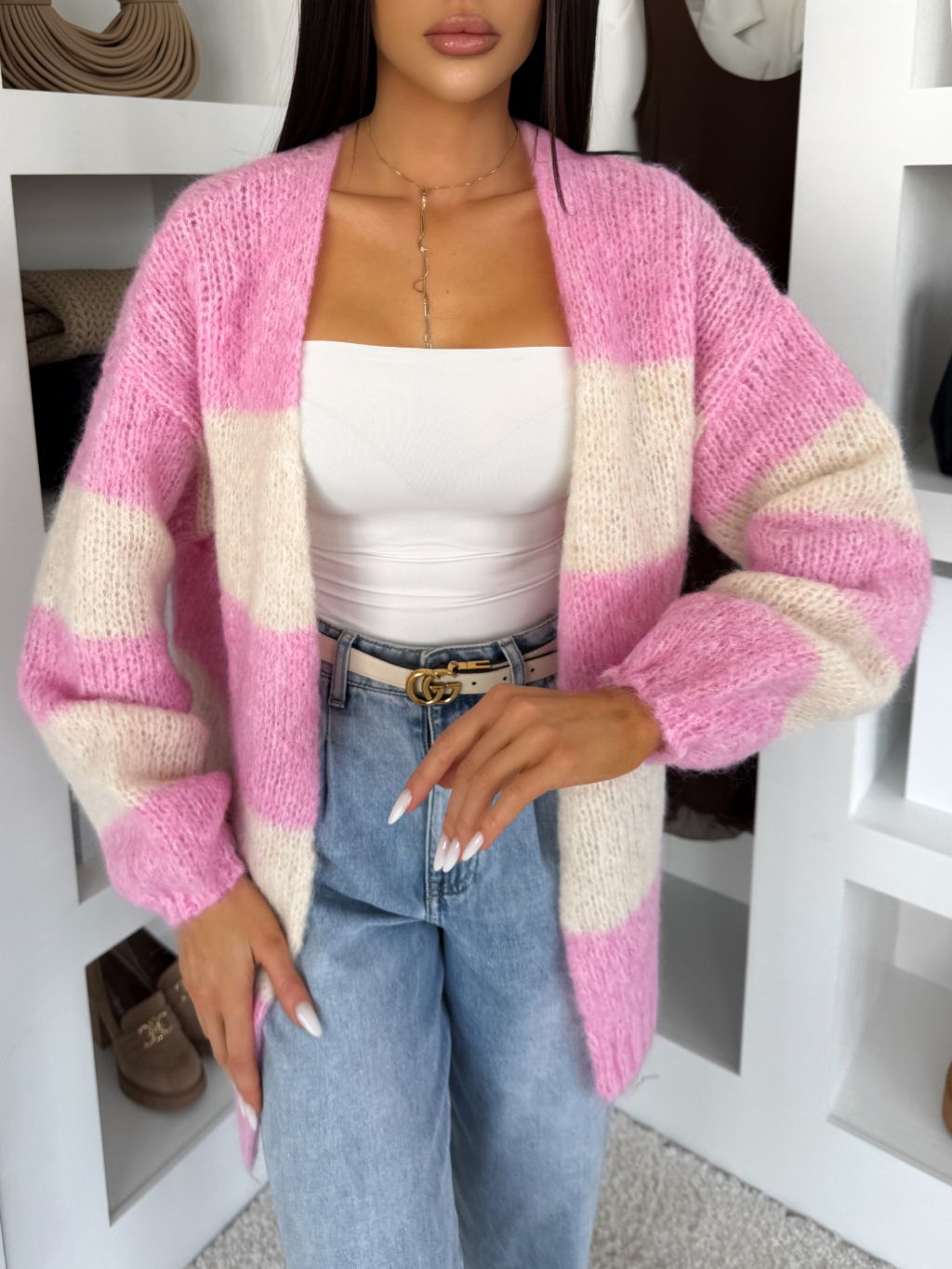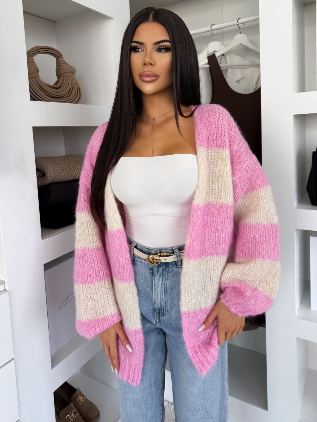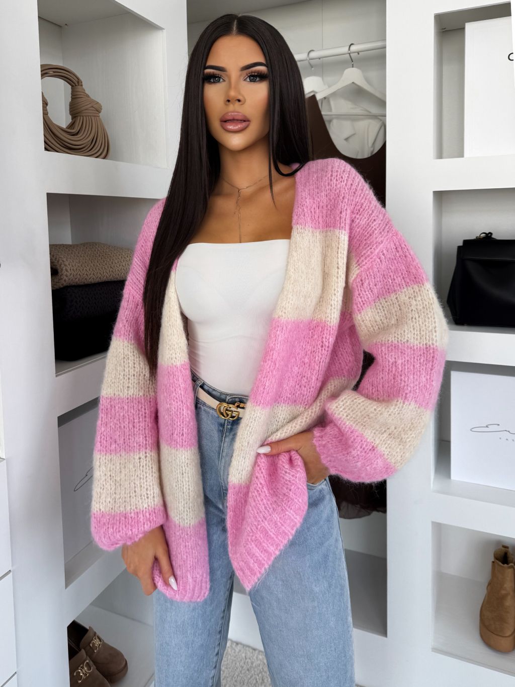 Ružový pletený pruhovaný oversize cardigan GRENTO