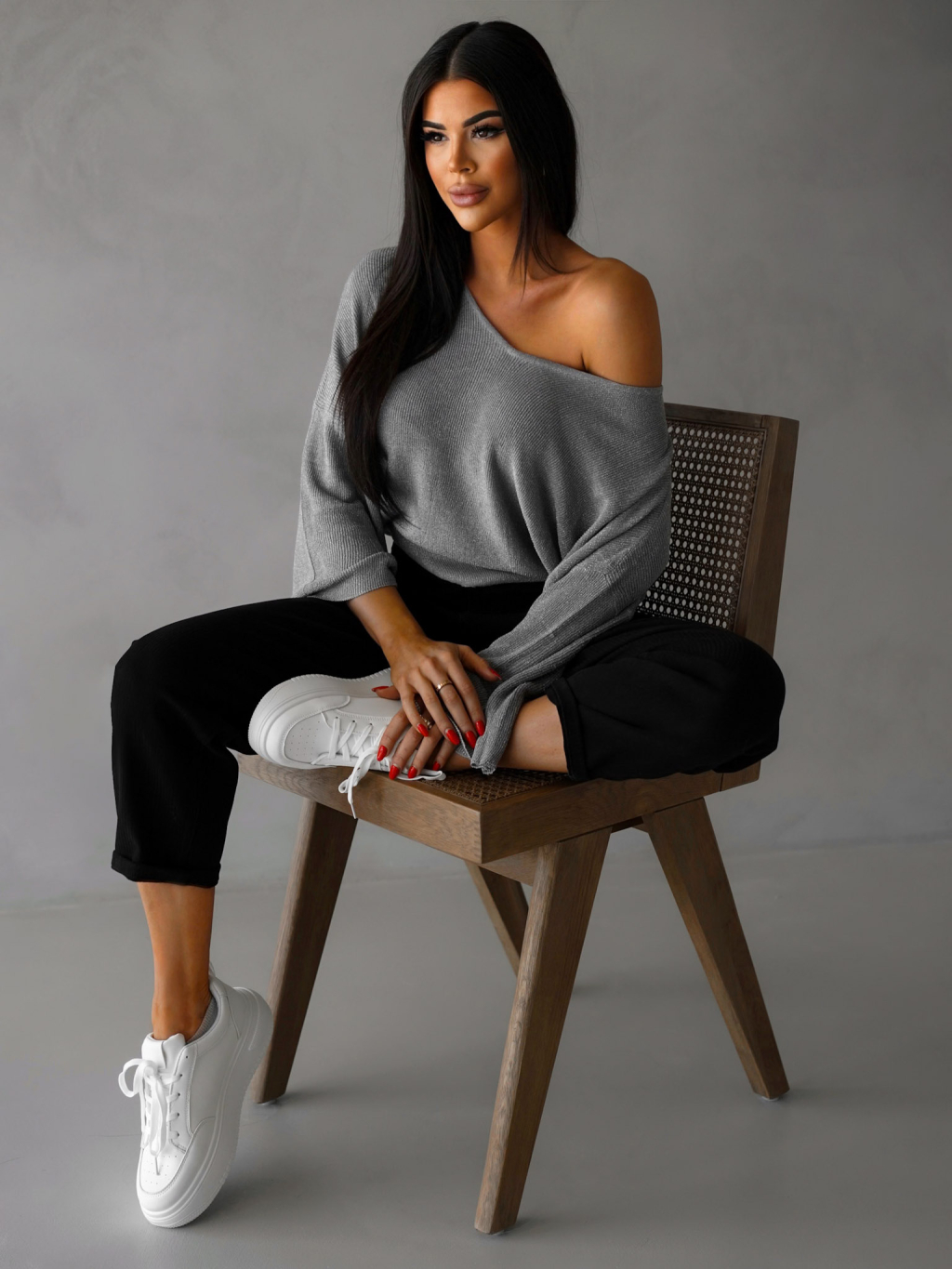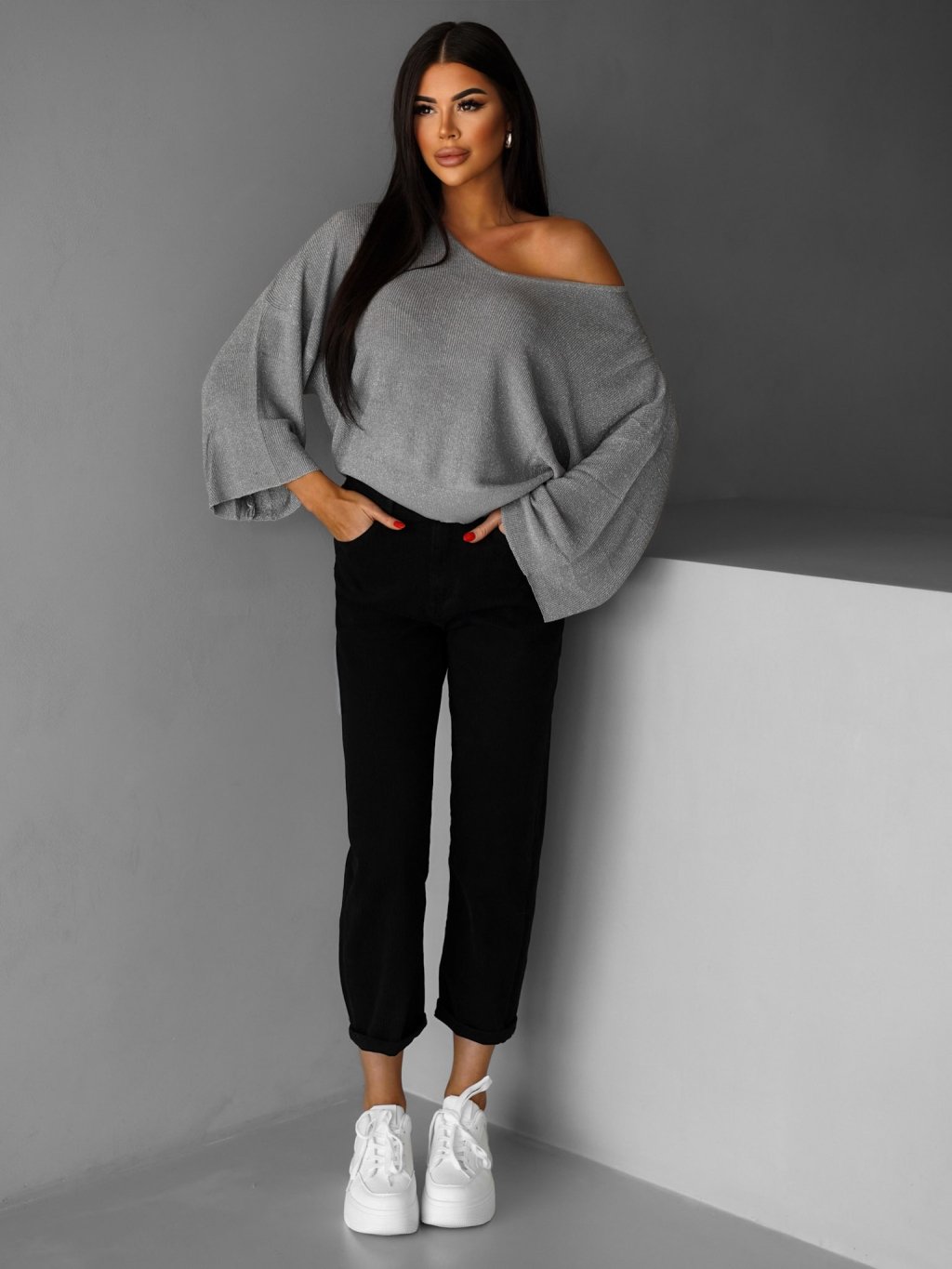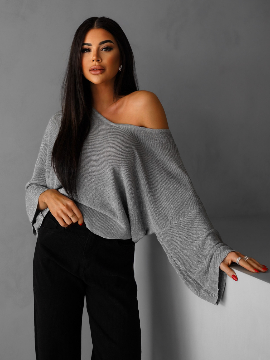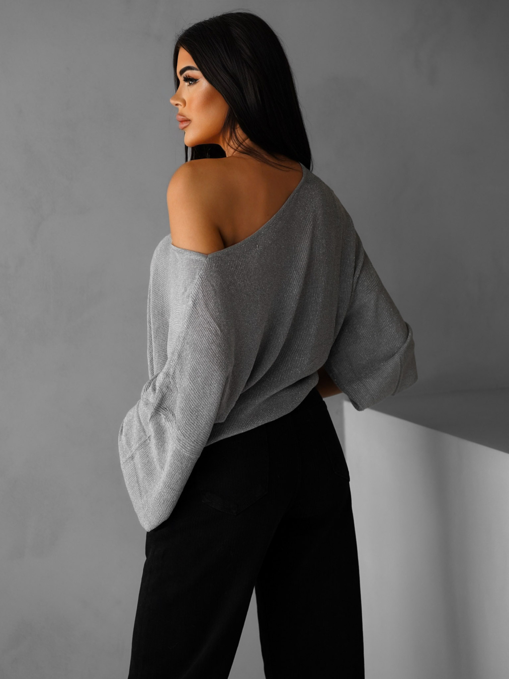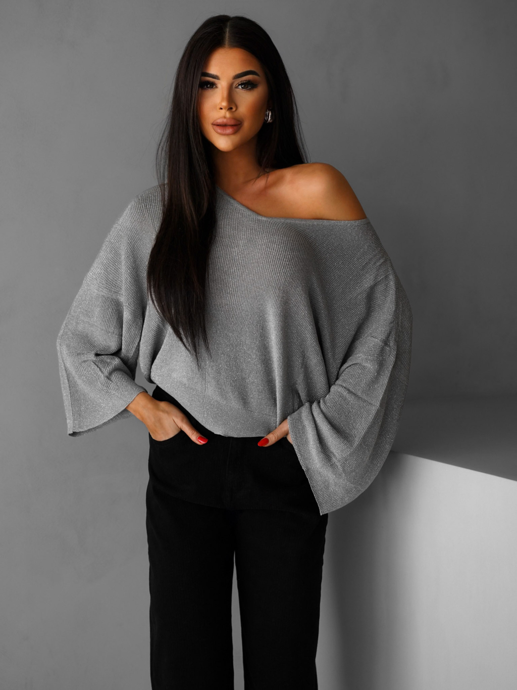 Šedý elegantný voľný svetrík AIRINI