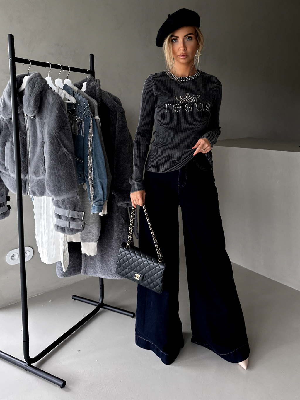 Šedý svetrík GUZEL s kamienkami