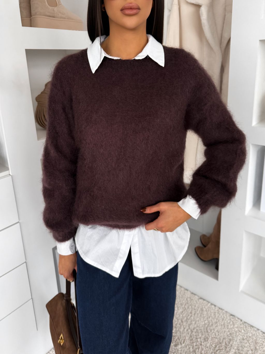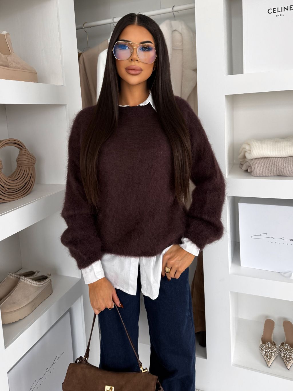 Tmavo hnedý vlnený krátky sveter JERSEY