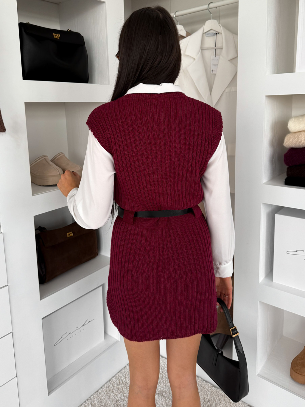 Vínové svetrové krátke šaty JORELEA s košeľou