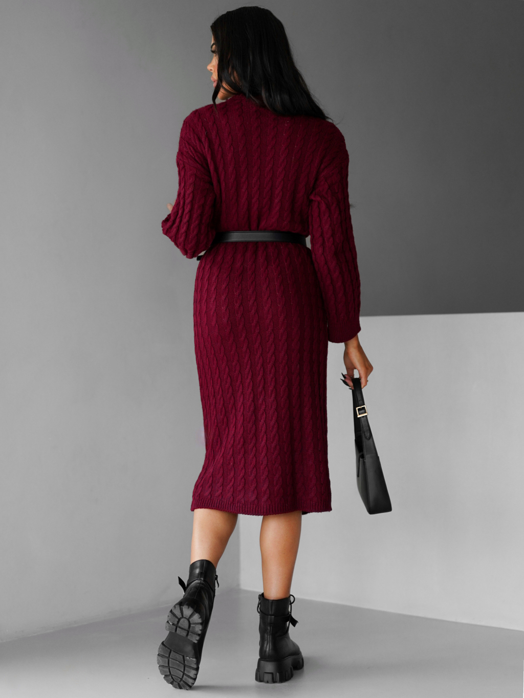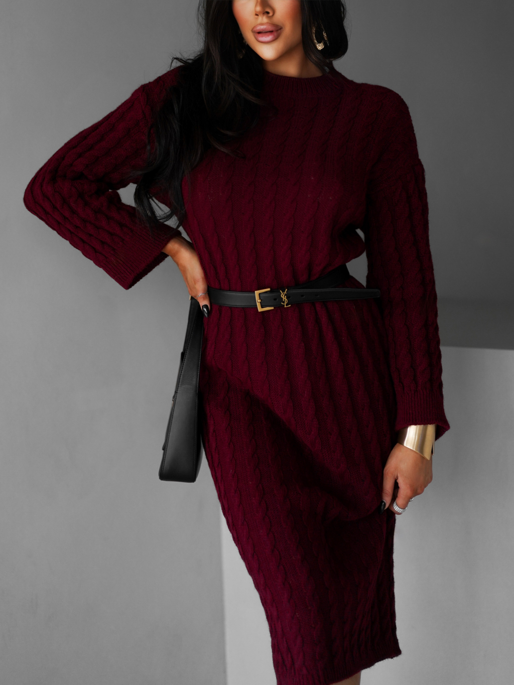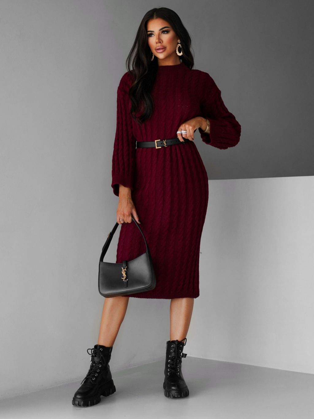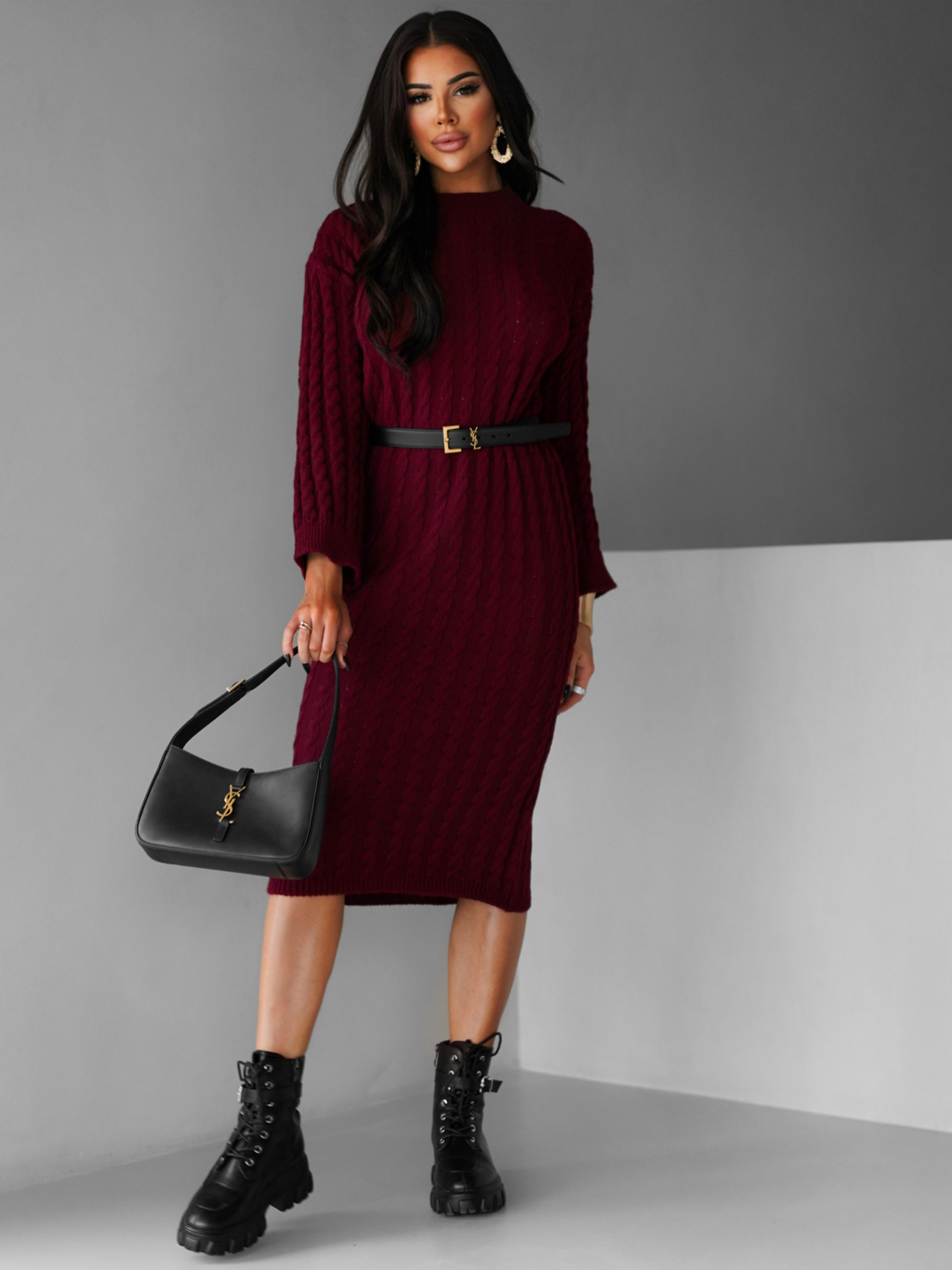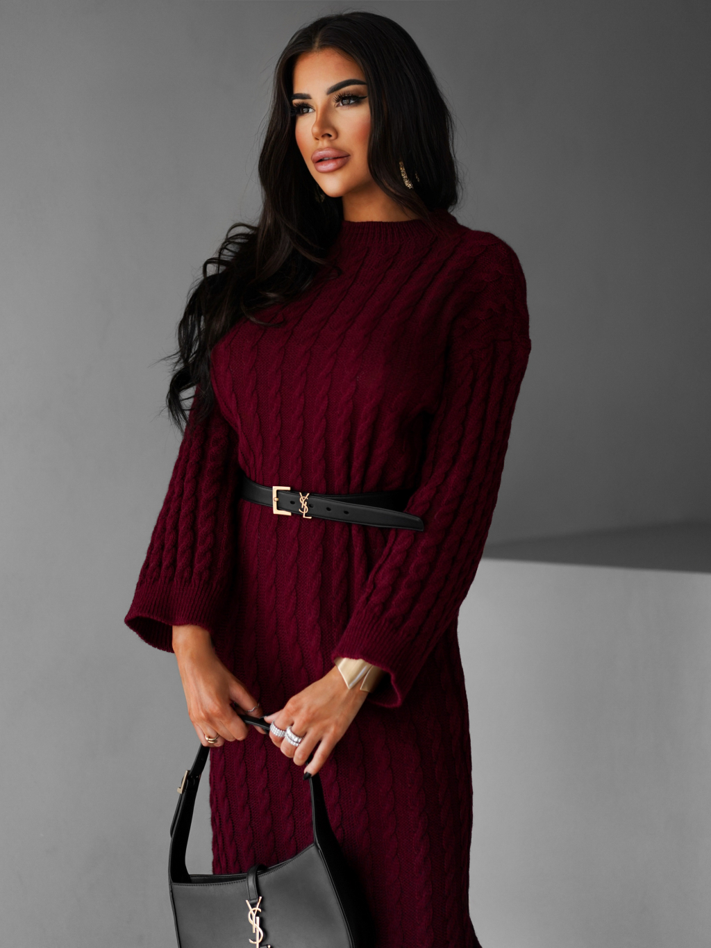 Vínové maxi svetrové šaty FRIDOLINA