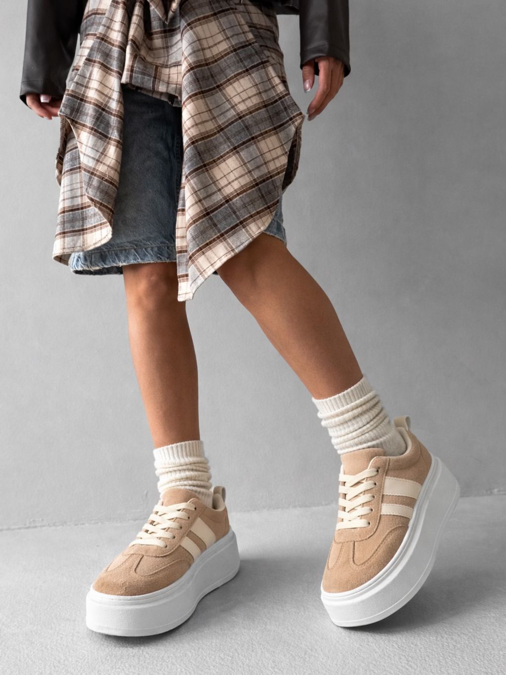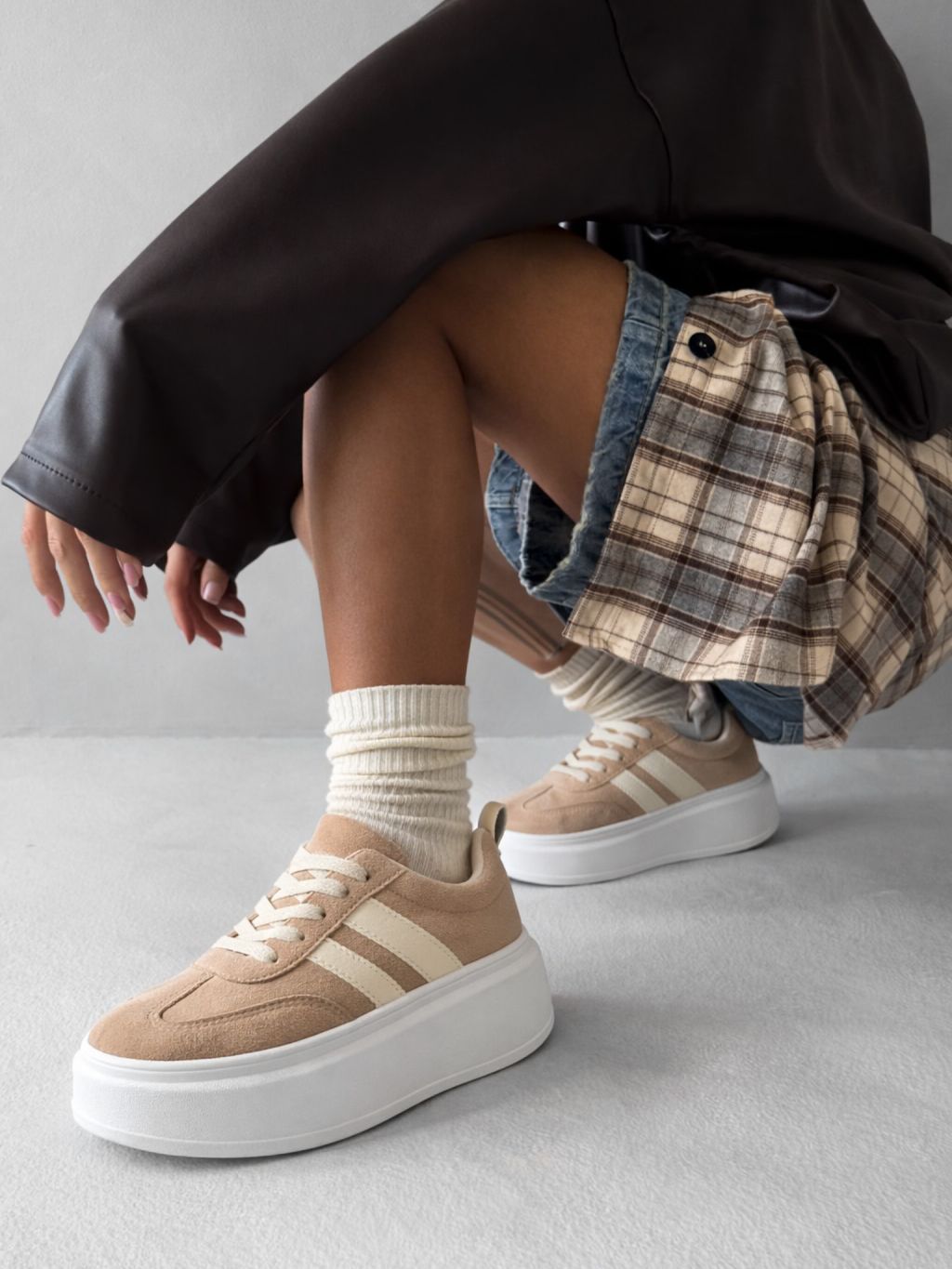 Svetlo hnedé semišové štýlové tenisky CAVELLO na platforme