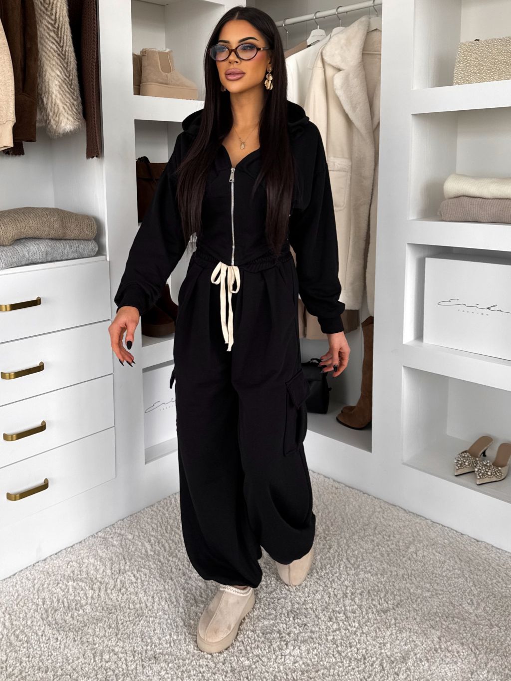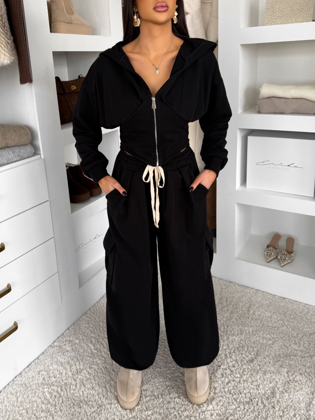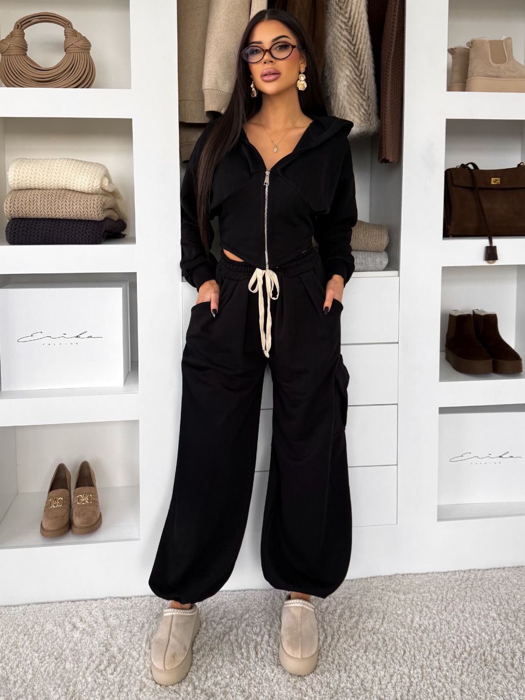 Čierna bavlnená tepláková teplákovka súprava WENARI