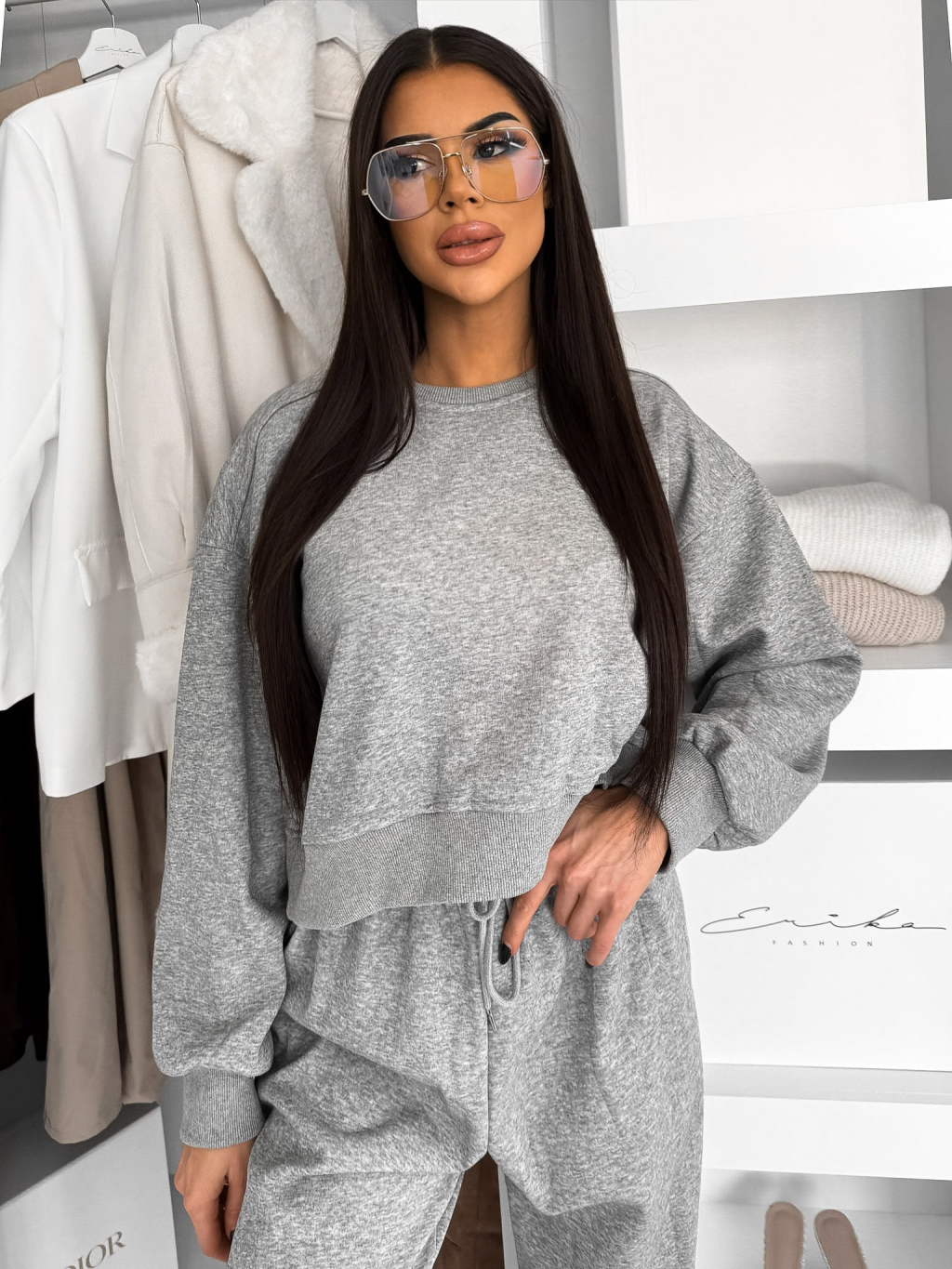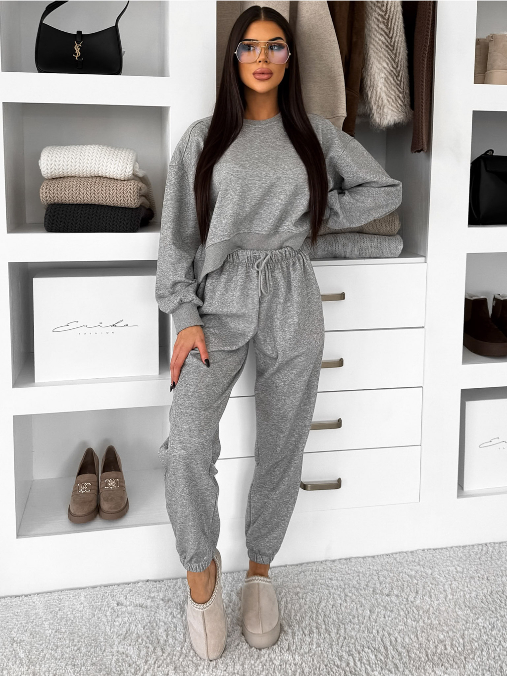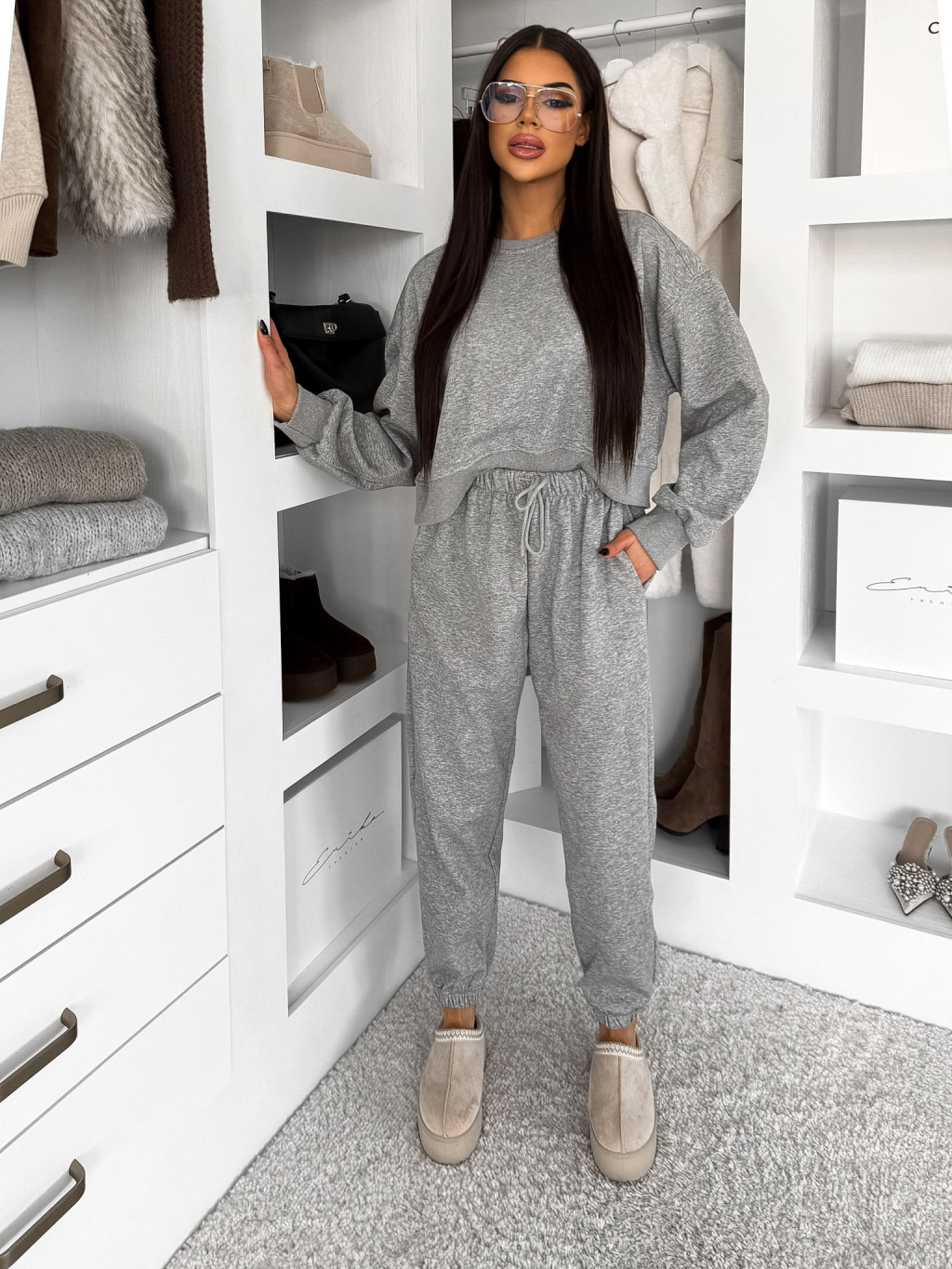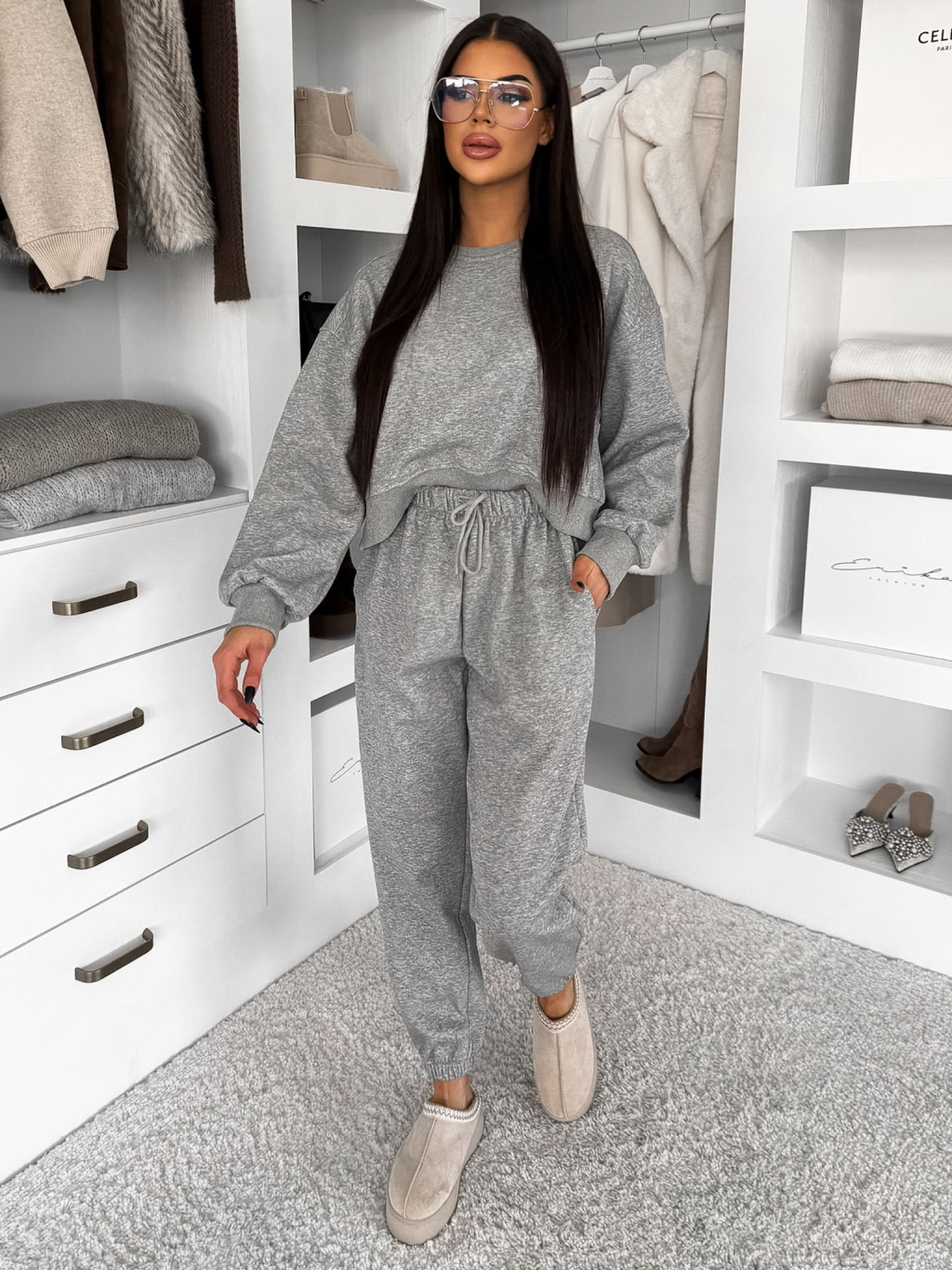 Sivá basic tepláková bavlnená súprava FRALUNE