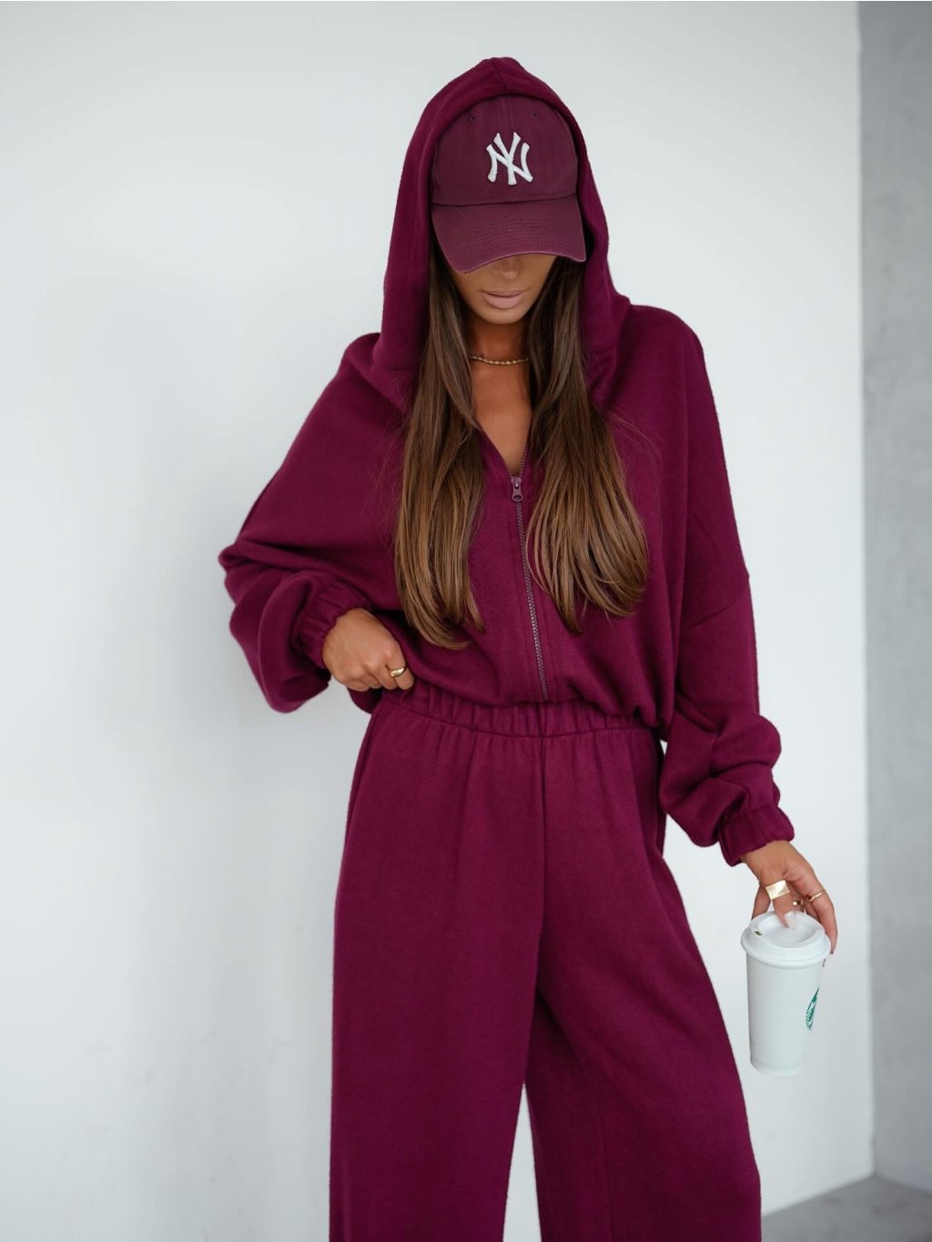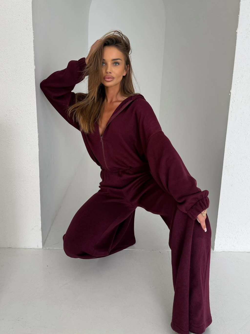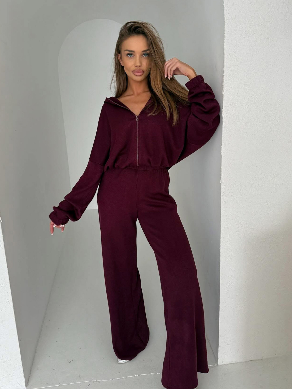 Vínová luxusná široká tepláková súprava MATHUA