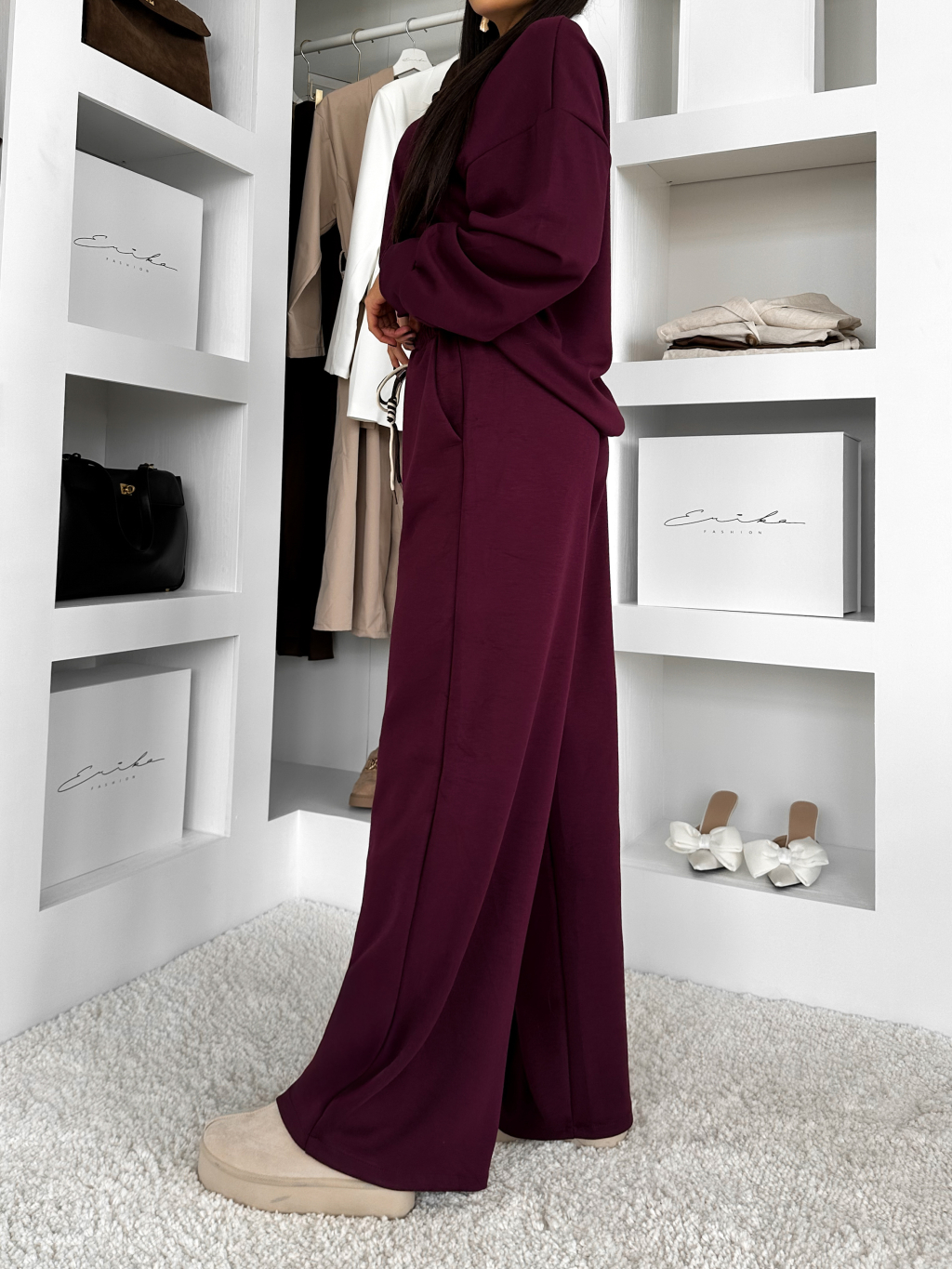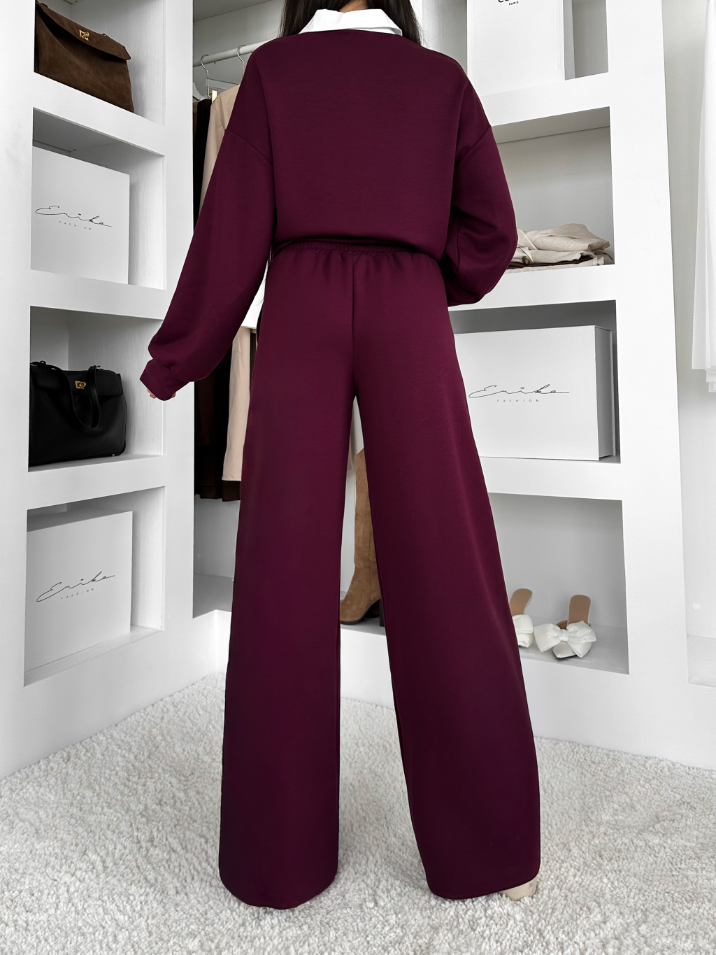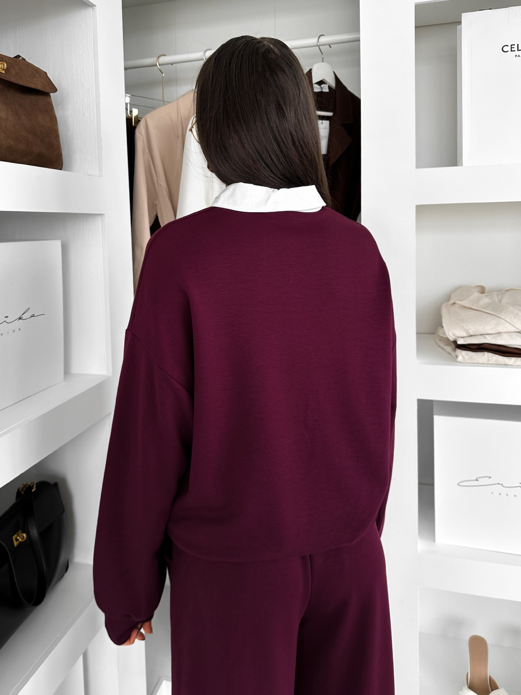 Vínová tepláková štýlová súprava FIDELIA s golierom