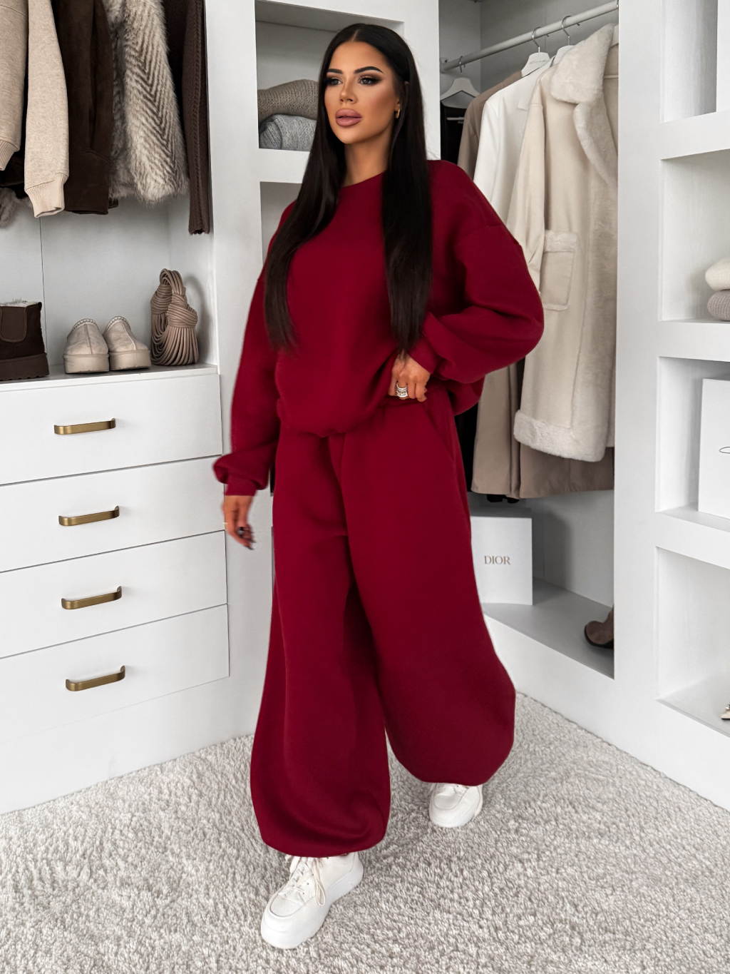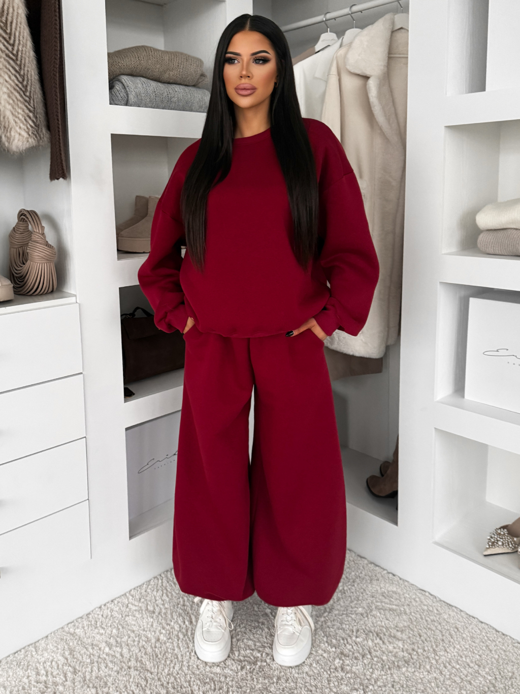 Bordové bavlnené zateplené tepláky TAVELYS