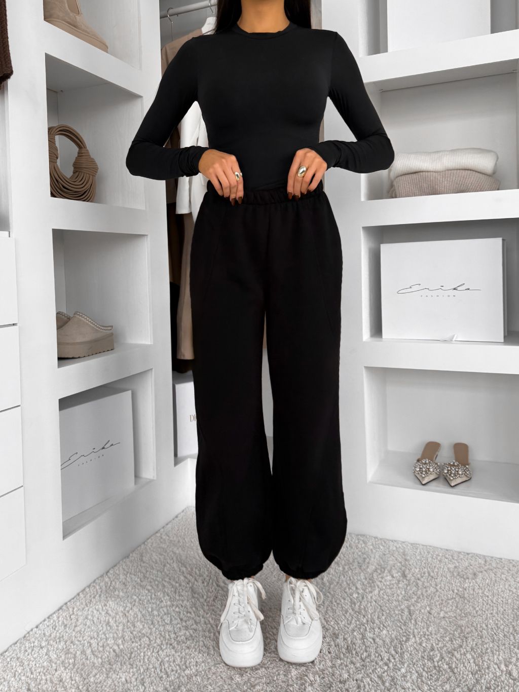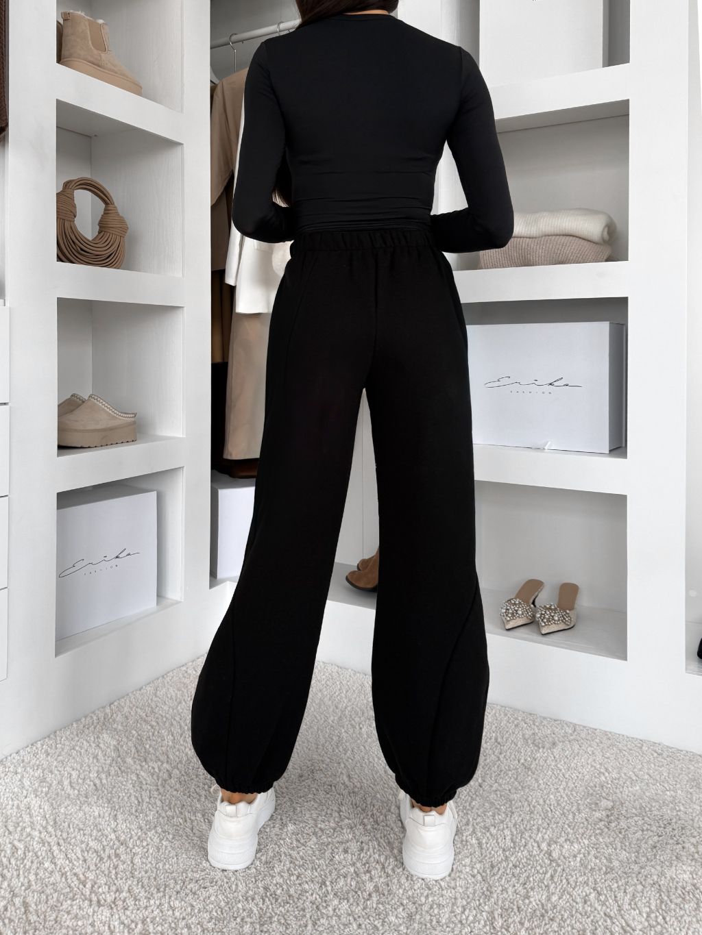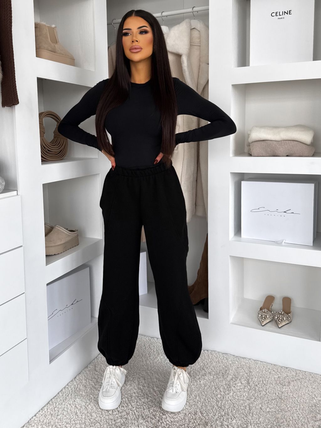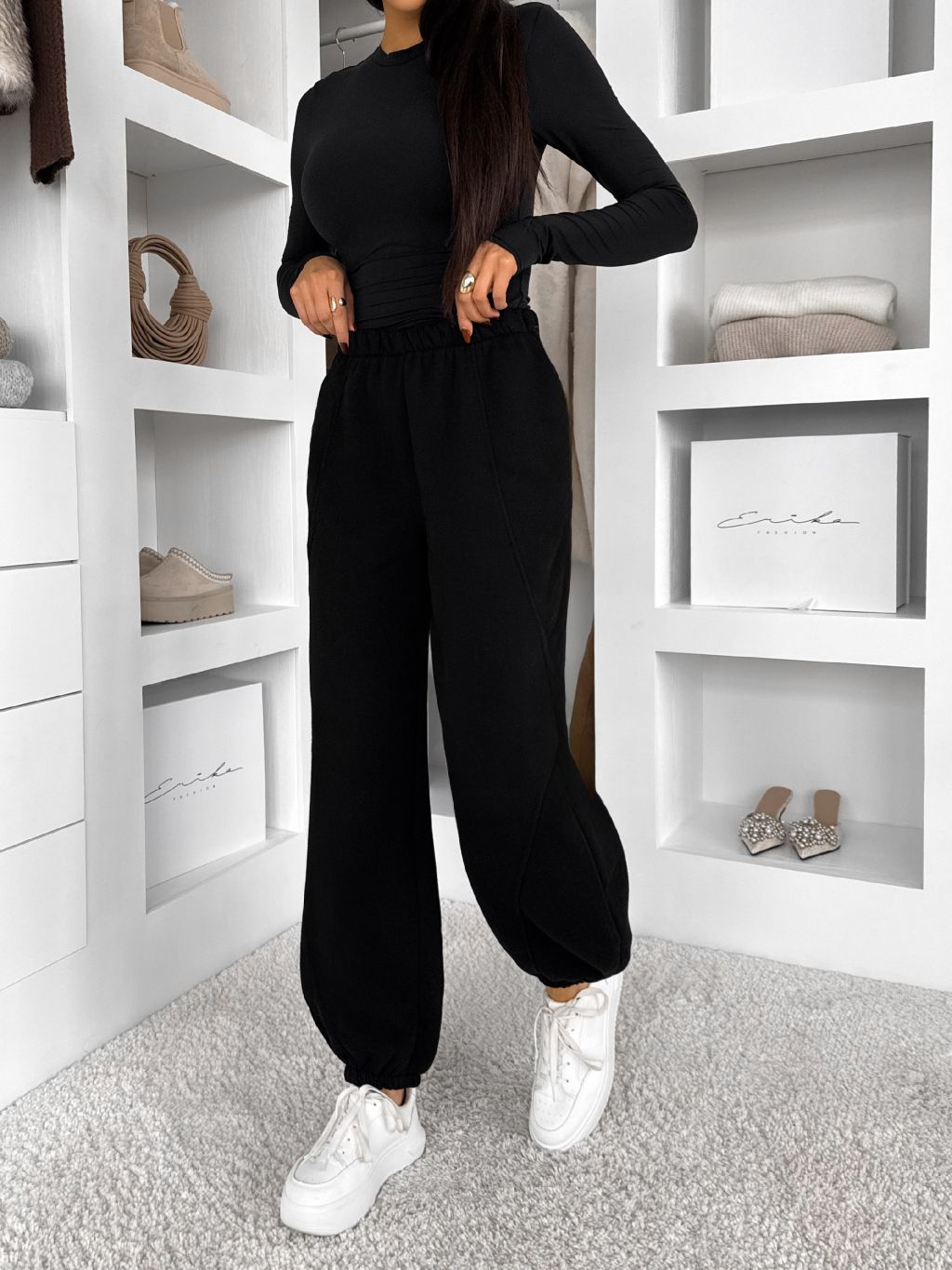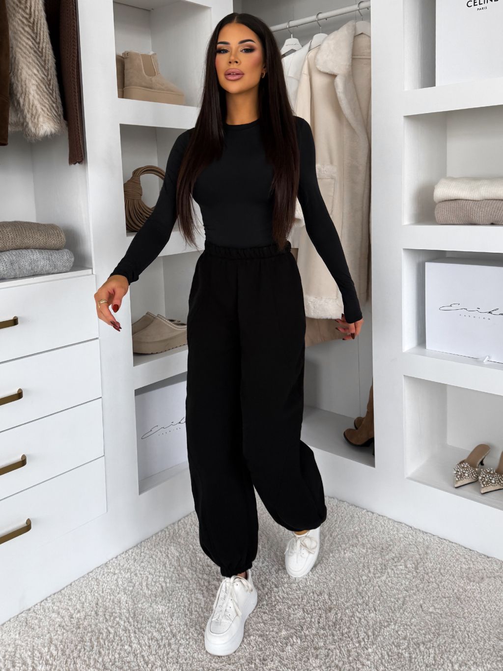Čierne bavlnené jogger dlhé tepláky MISTY