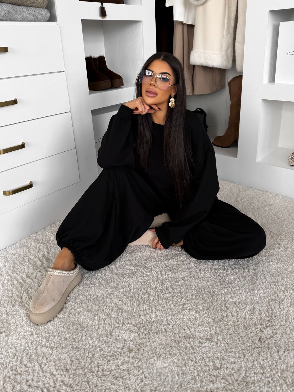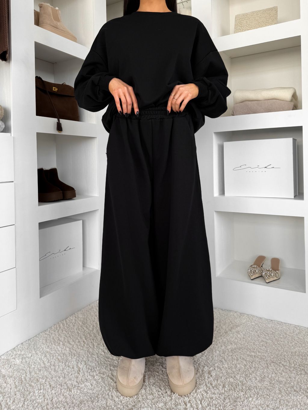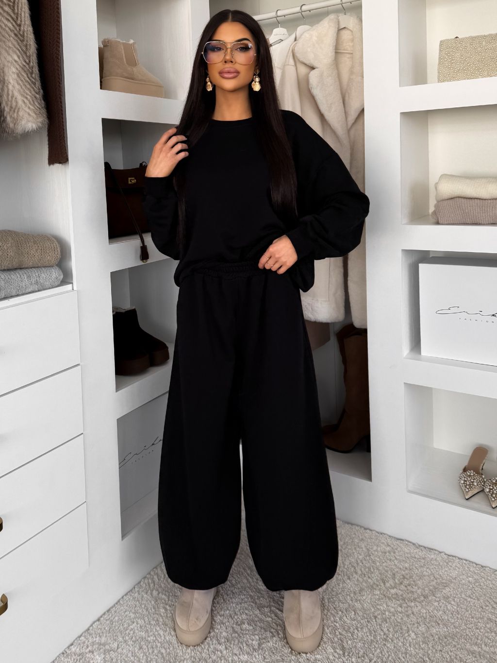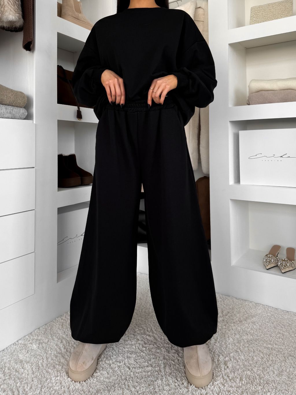 Čierne bavlnené široké tepláky TAVELYS