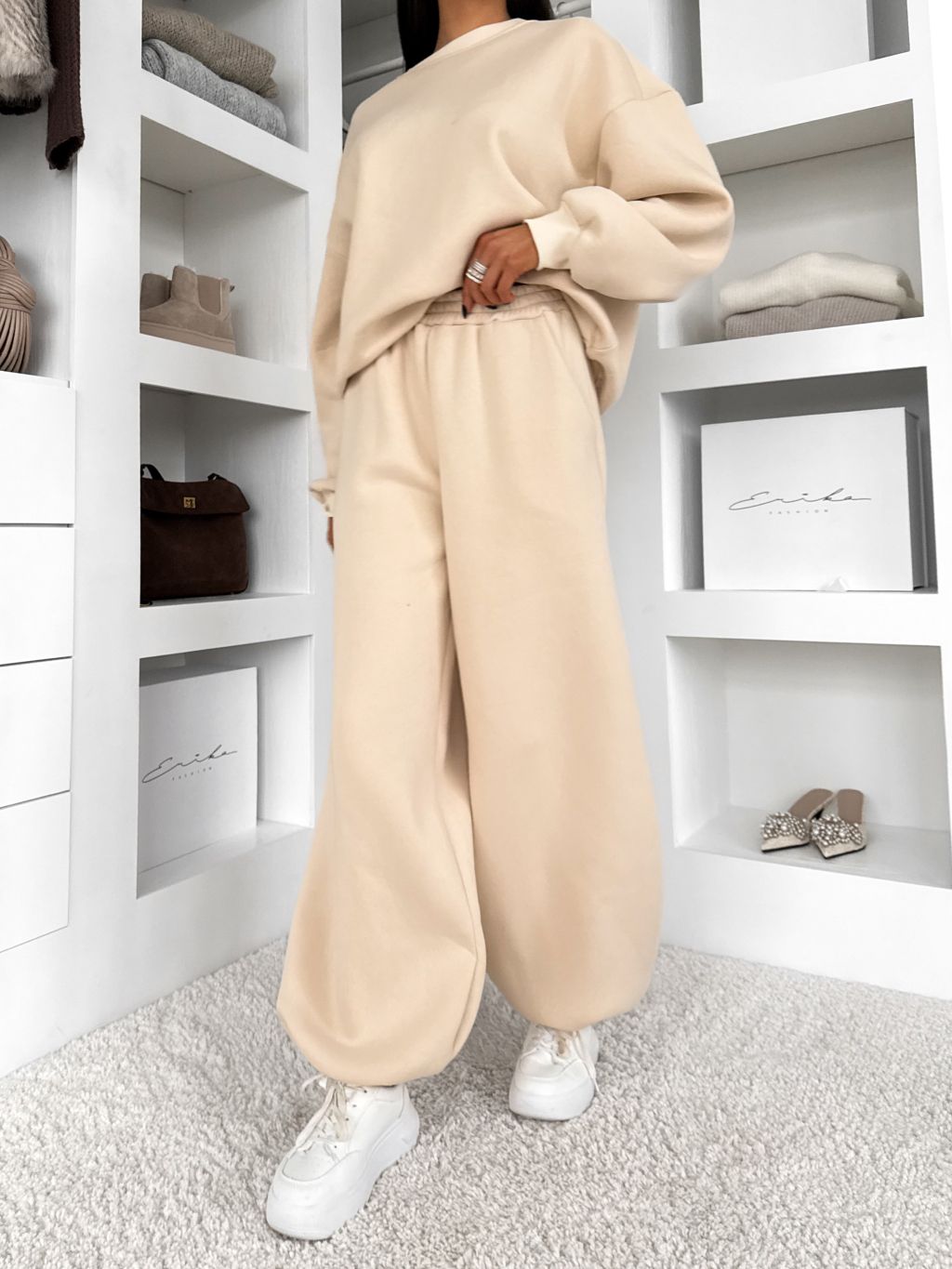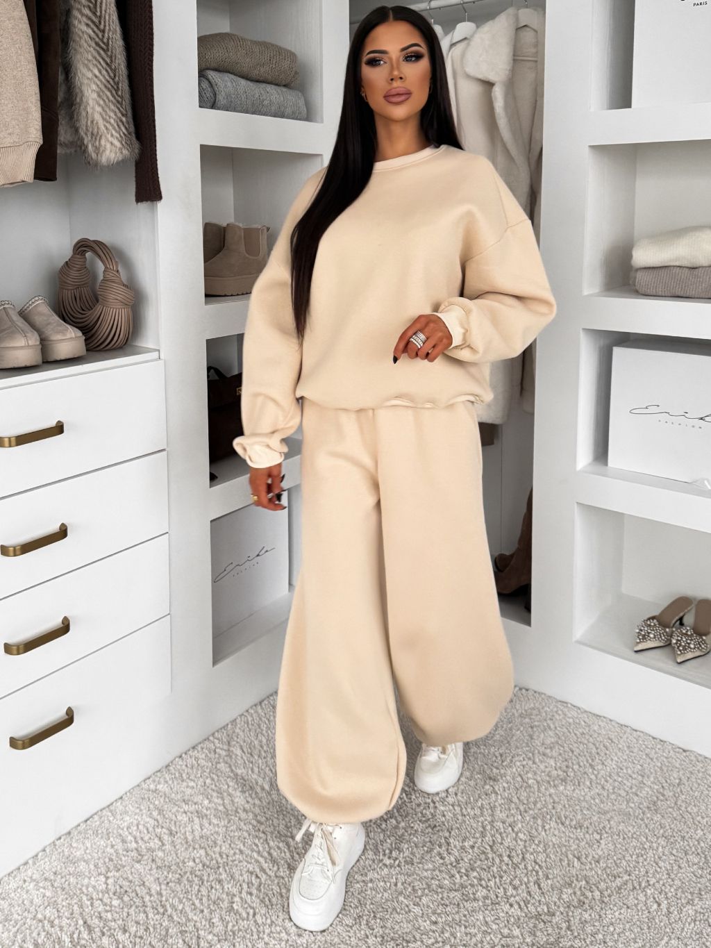 Krémová bavlnené zateplené tepláky TAVELYS