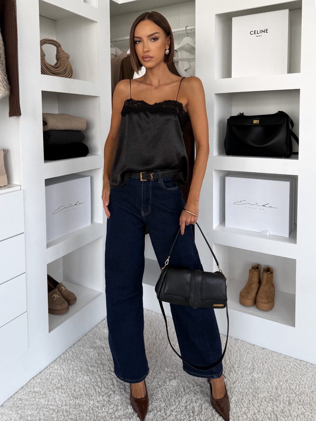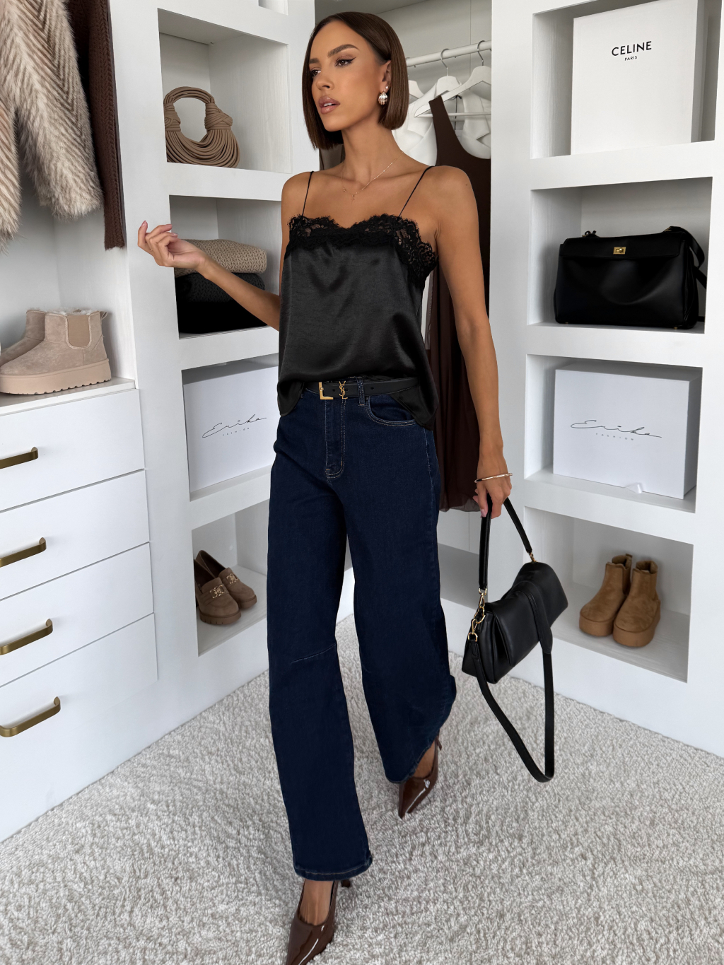 Čierne saténové elegantné tielko WEXTON s čipkou