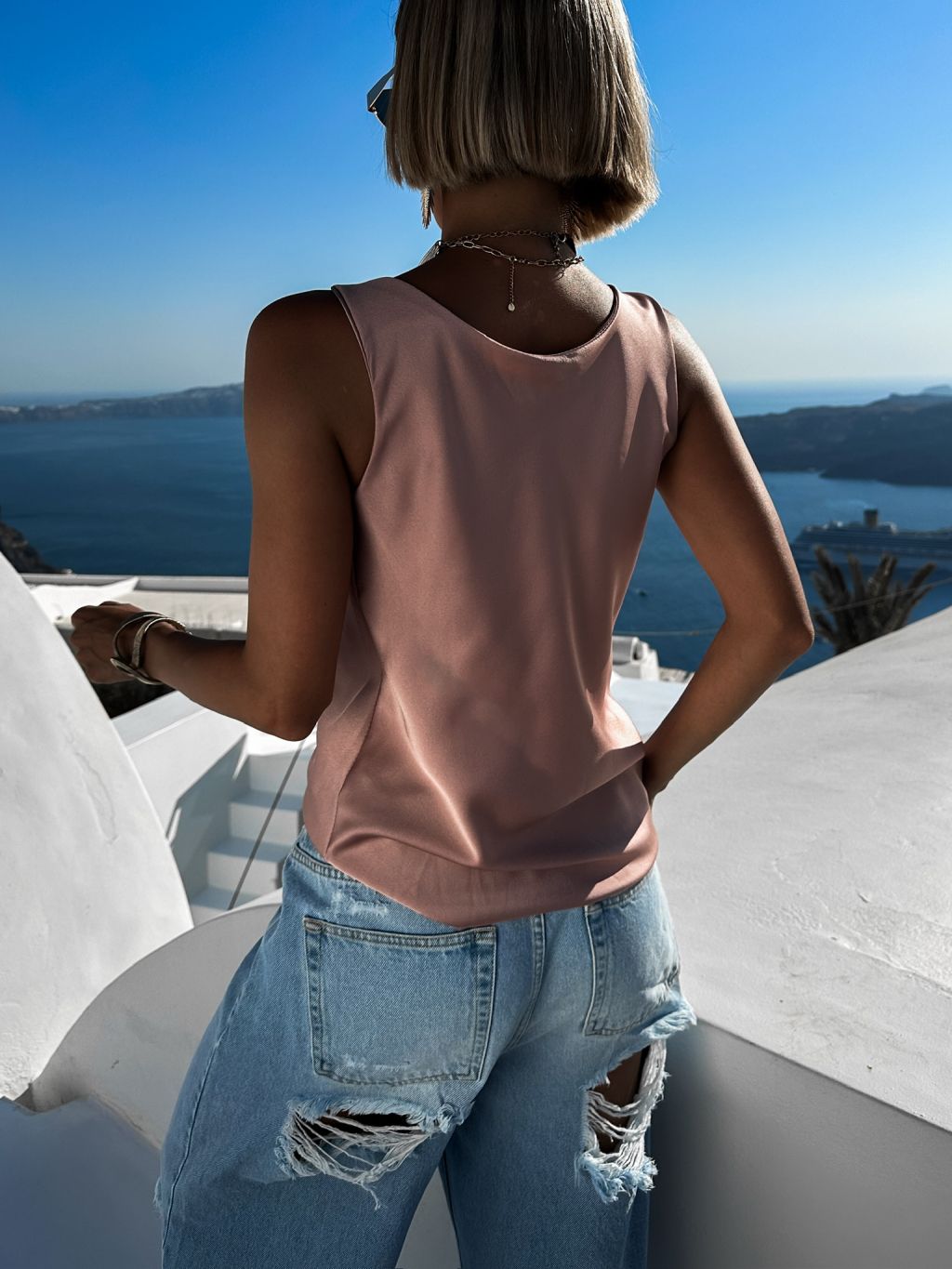 Staroružové elegantné saténové tielko CLAYTON