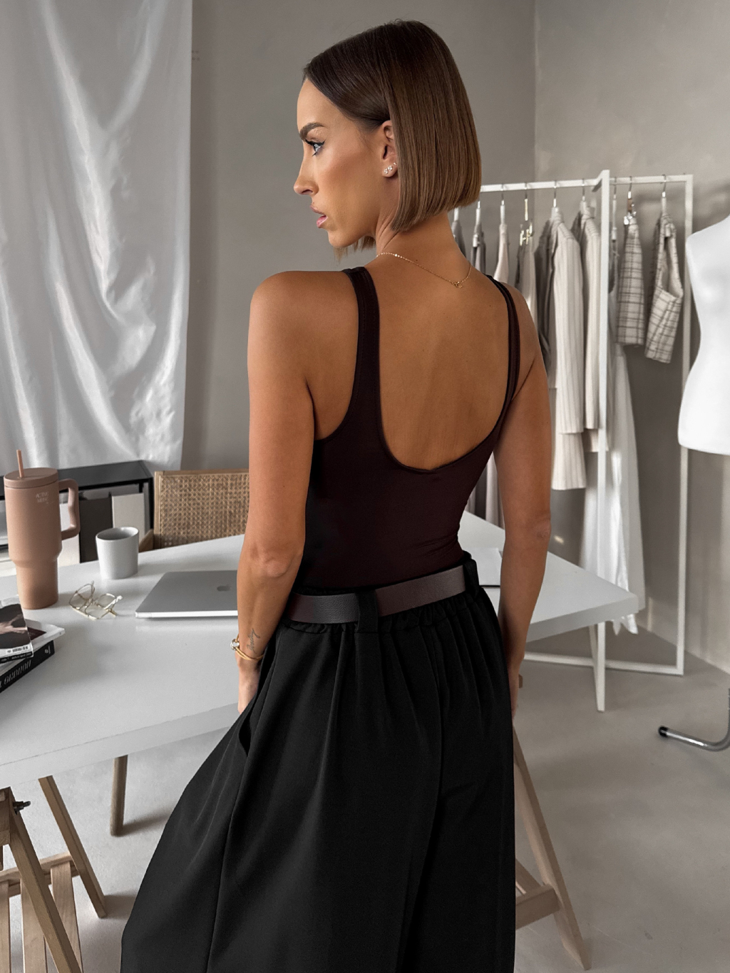 Tmavo hnedé elastické basic body ORELIAbs výstrihom