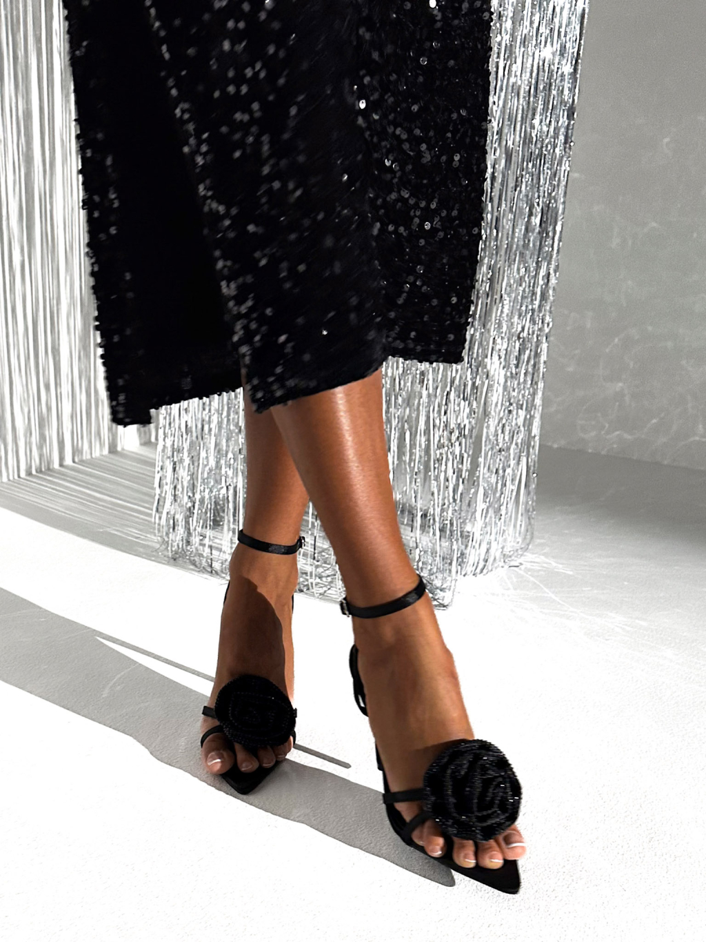 Čierne elegantné topánky na podpätku AETOS s ružou