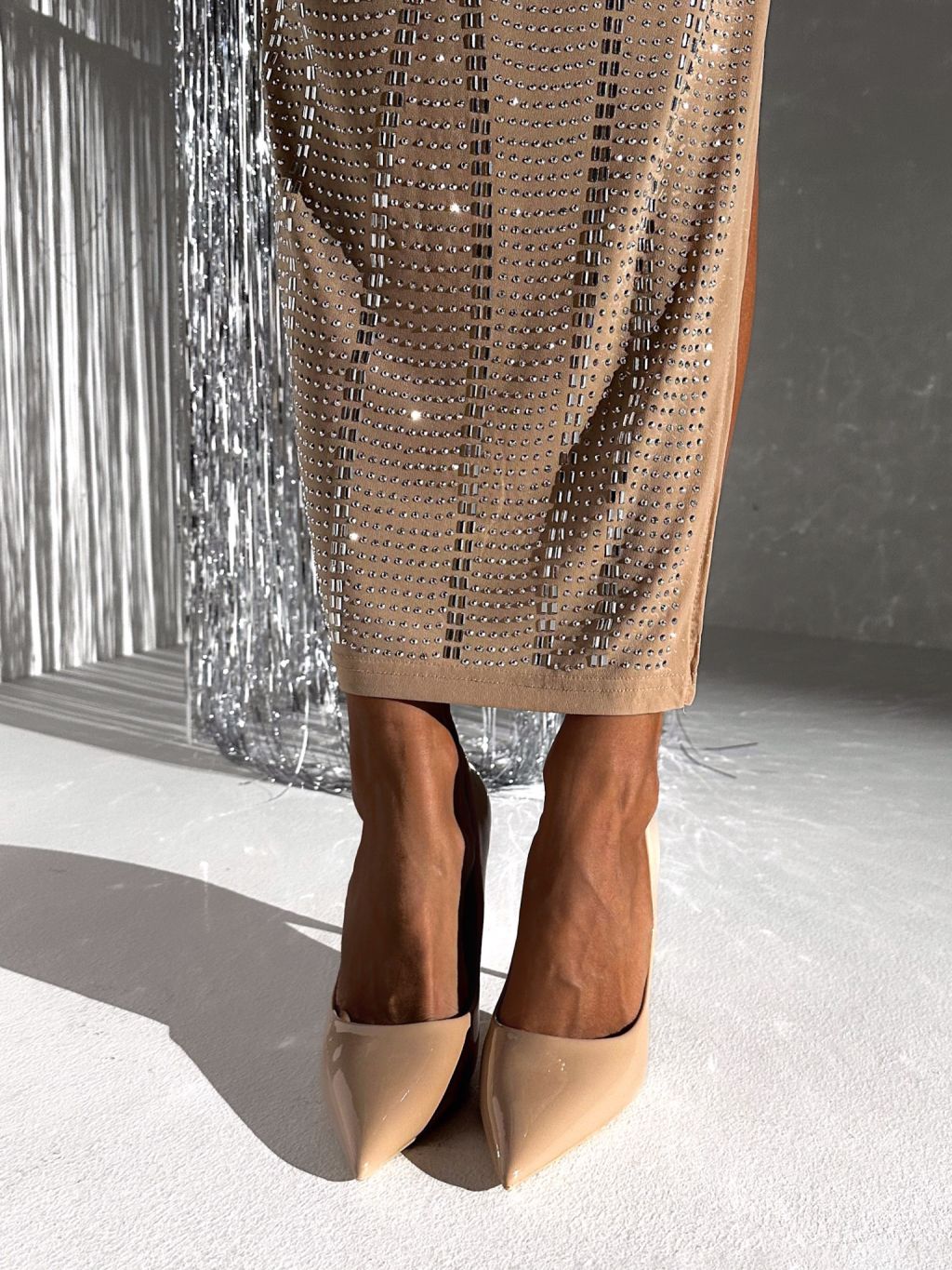 Nude lesklé lodičky na podpätku RHIANON
