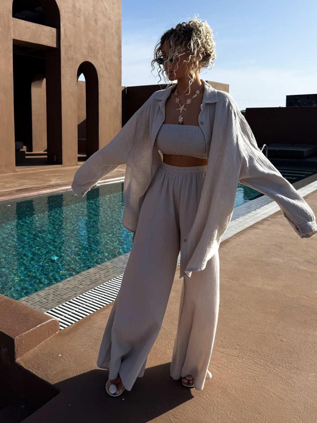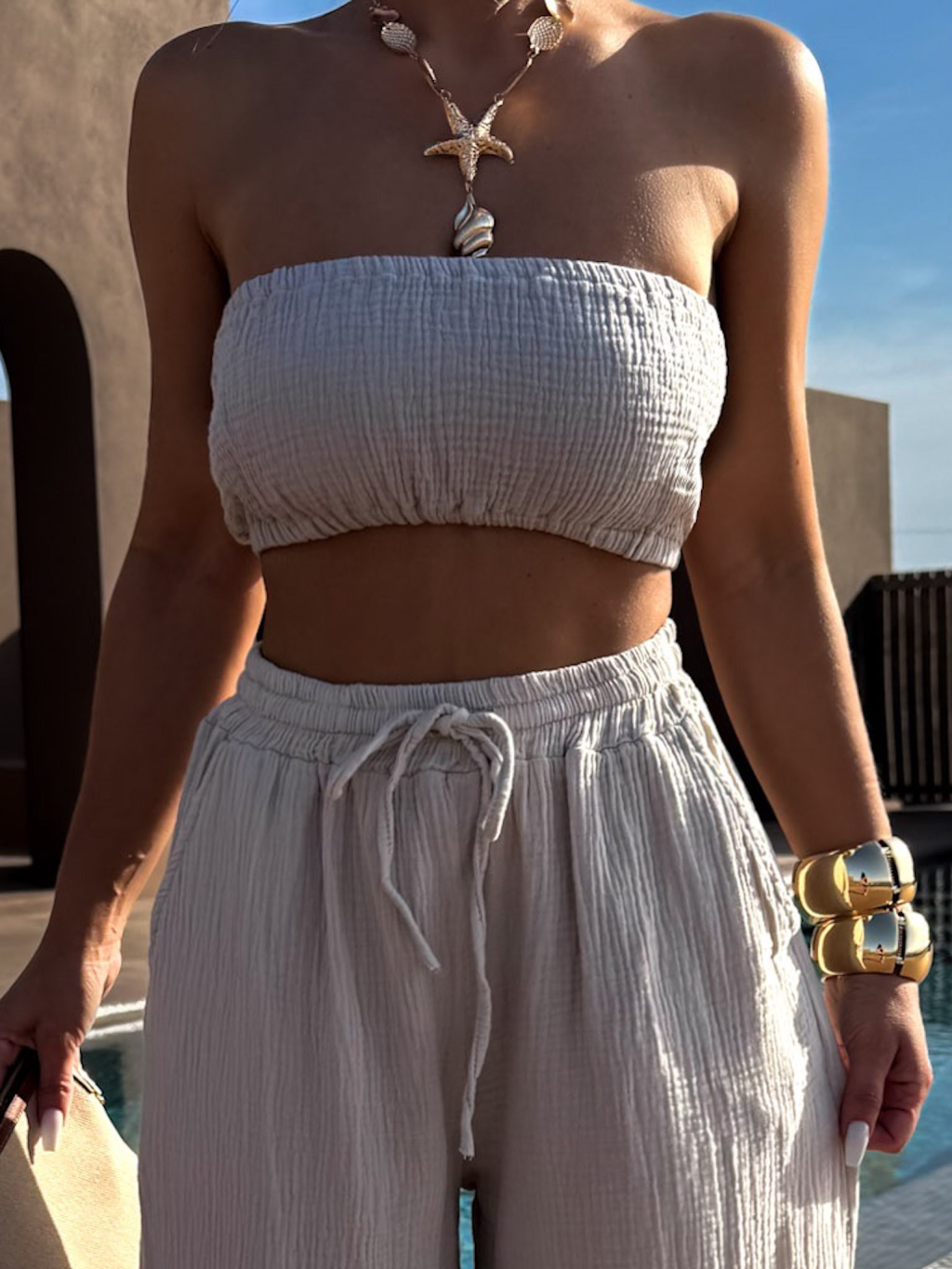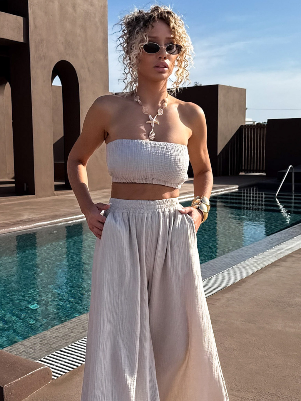 Béžový mušelínový crop top BALEEN pás cez prsia