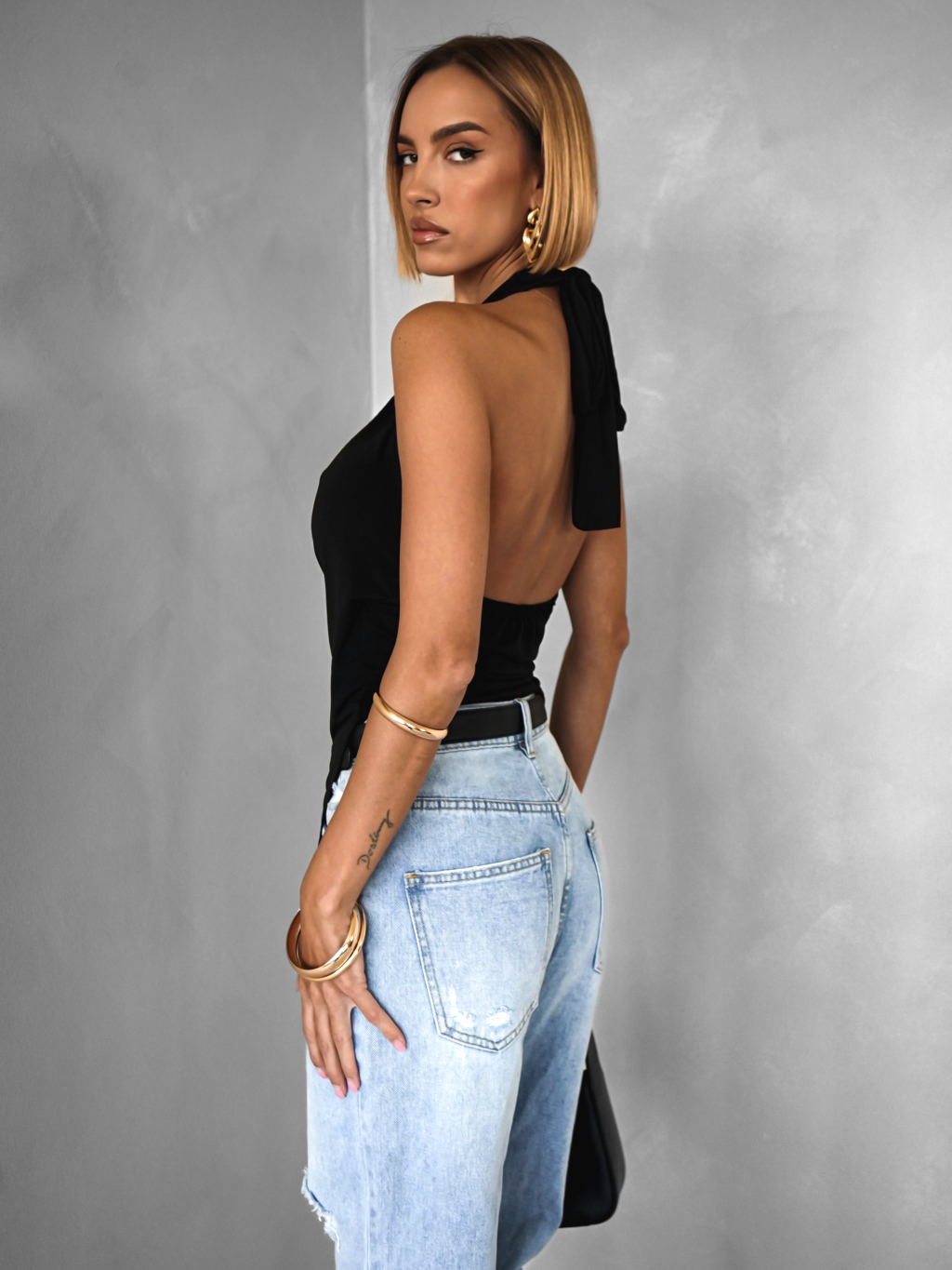 Čierny sexy top GELBER s výstrihom