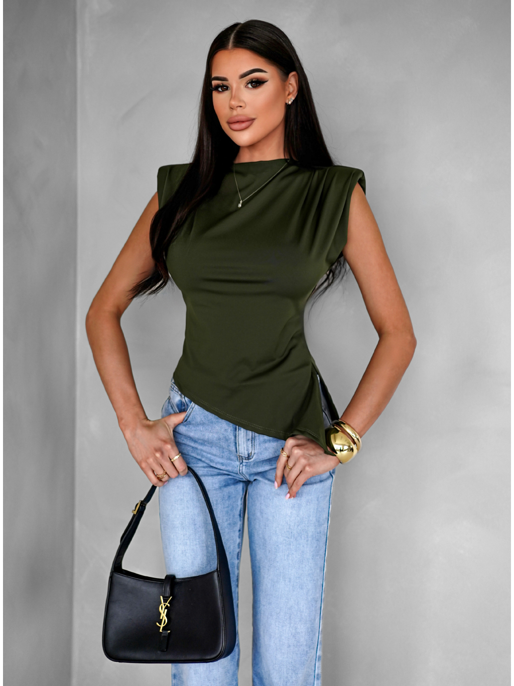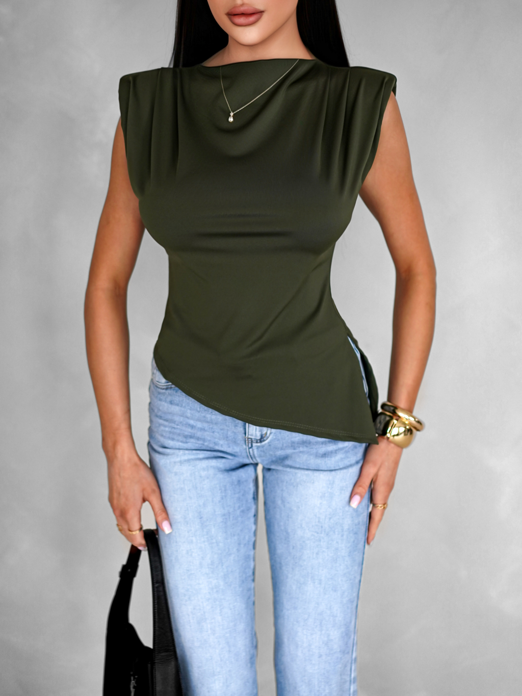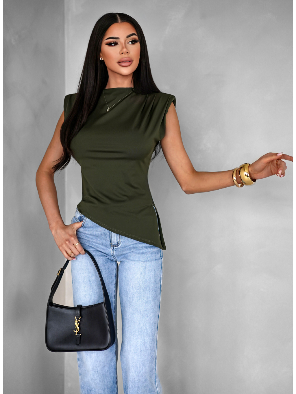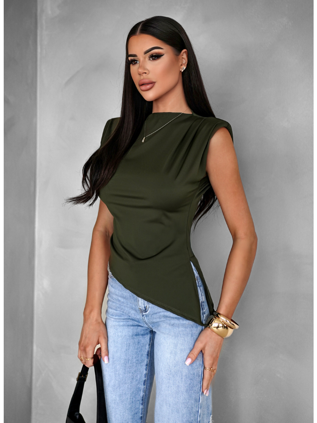 Kaki elegantný basic top FAUSKELA